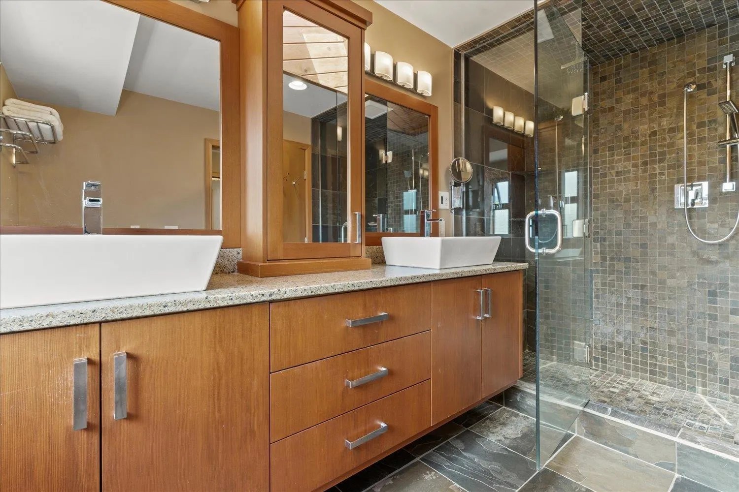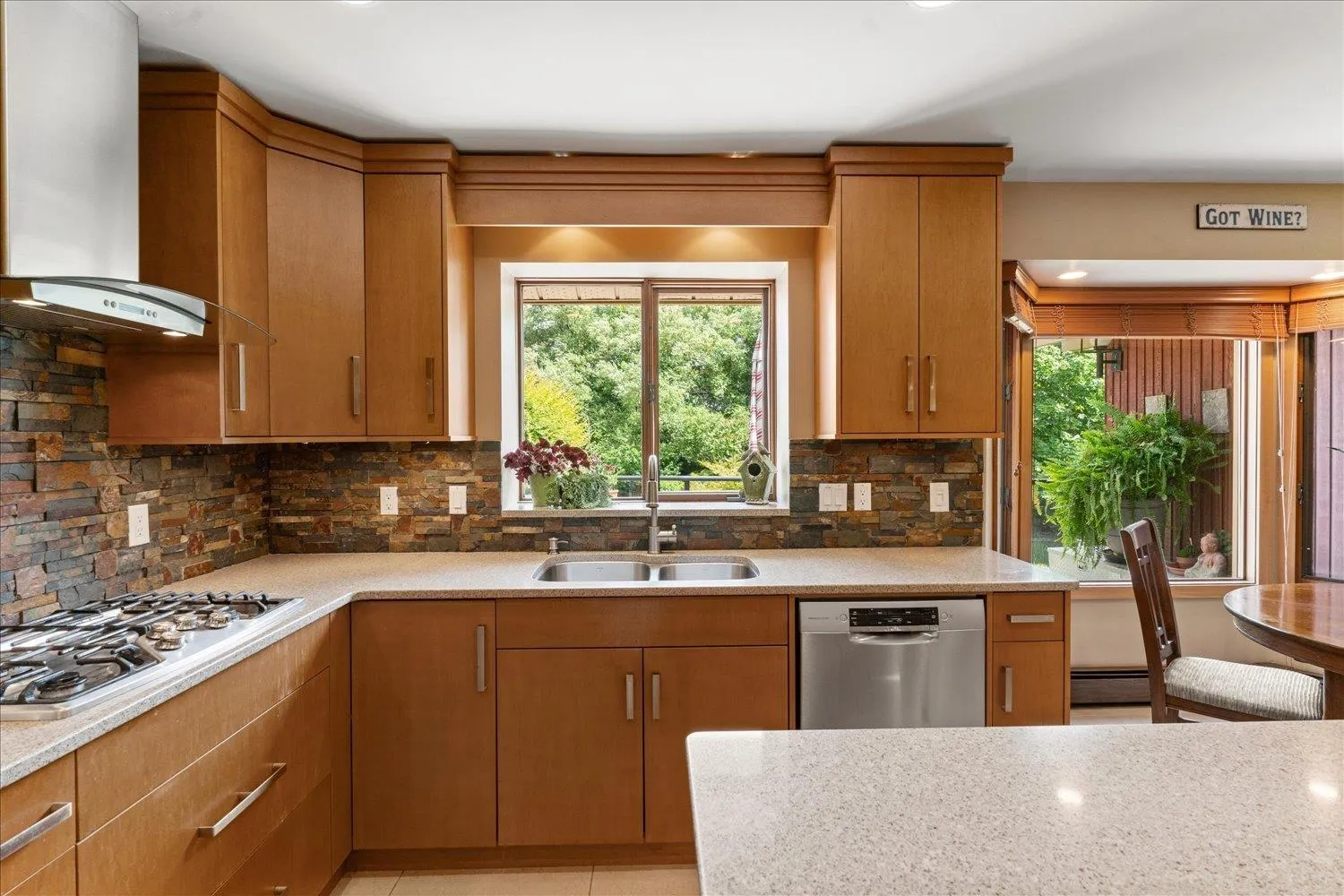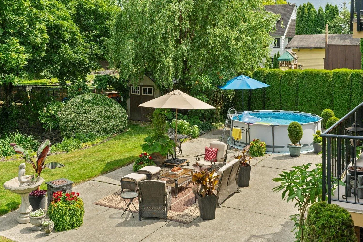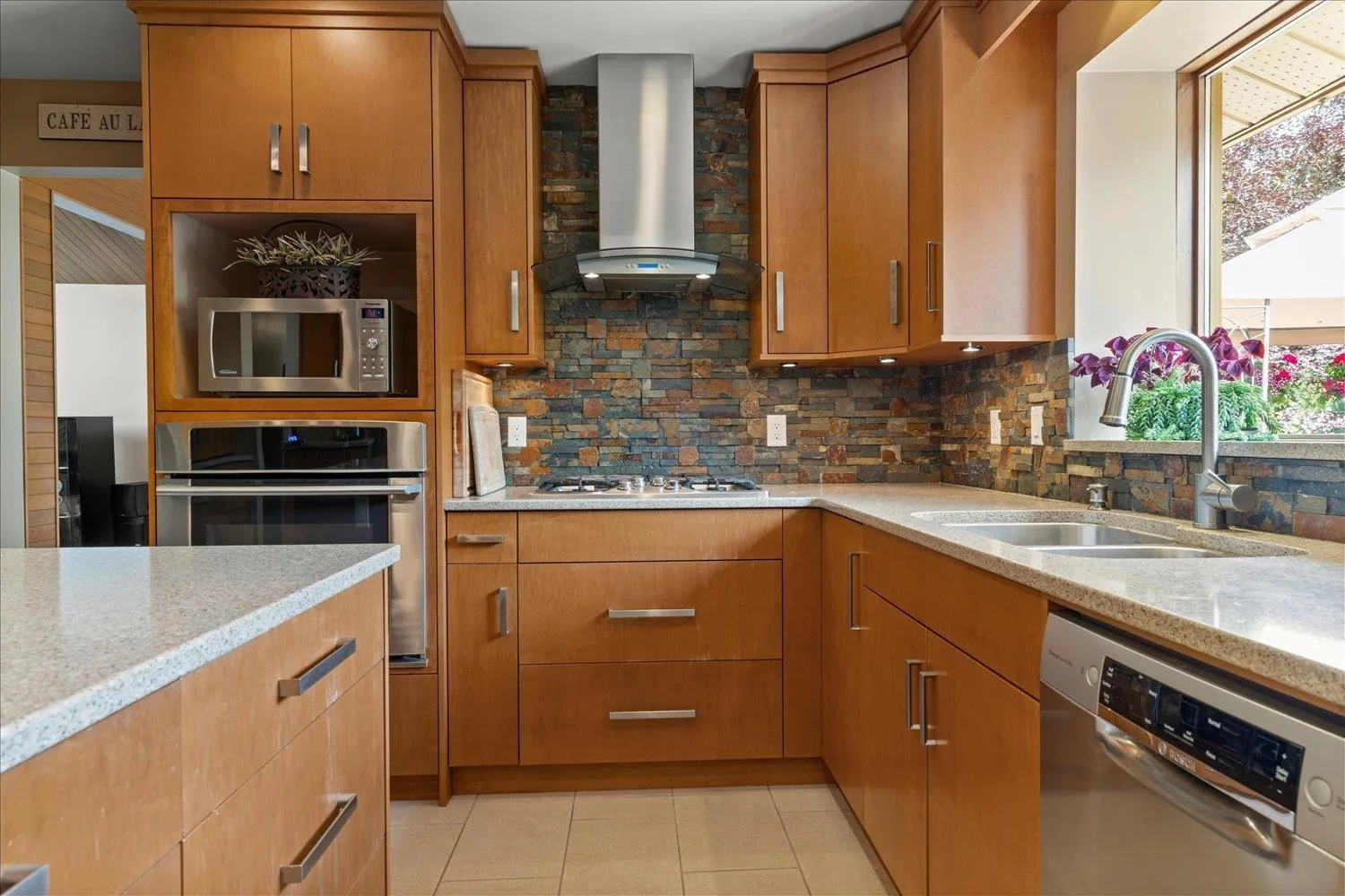 A rare gem! This custom mid-century modern home stands out with its distinctive character and high-quality finishes. From the moment you enter, you'll be greeted by a stunning rock wall water feature, vaulted cedar ceilings, and beautiful views of the meticulously landscaped garden. A truly unique property that blends timeless design with natural elegance. As you explore this spacious 4 level home, you'll discover rich teak hardwood floors, a custom kitchen, heated tile flooring, and a primary ensuite featuring a slate walk-in shower. Multiple decks and patios invite you to enjoy the serene gardens, complete with a picturesque creek and pond. Centrally located in a family friendly cul-de-sac, with easy access to shopping, schools, parks, trails, golf and the highway. (id:27476)