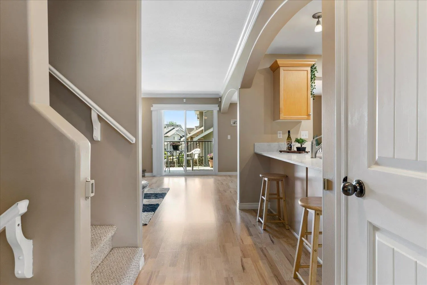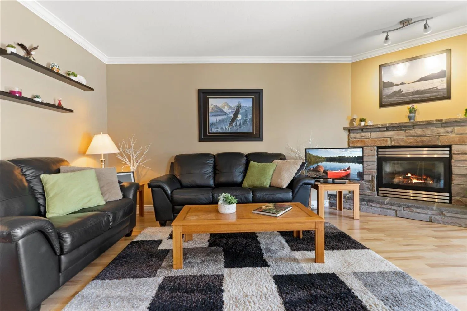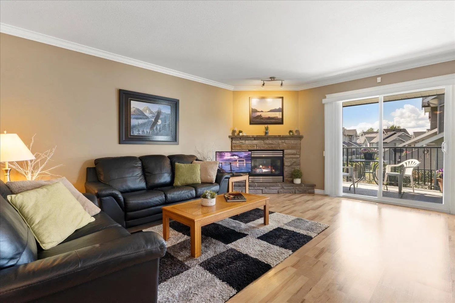 TOWNHOME WITH UNBEATABLE PARKING! This large townhome with sought-after road frontage, and one of the best spots in the complex. The two car garage is paired with an extra long & double wide driveway. Nearly 2,000 sq. ft. of living space with 3 bedrooms upstairs, a large rec room below, and potential to convert to 5 bedrooms. Features include central A/C, cozy gas fireplace in the living room, central vacuum, Breakfast bar, a full pantry, and gas BBQ hookup on the covered patio. Fully fenced backyard with privacy and outdoor space. Located in desirable area of Promontory, walking distance to the amazing Jinkerson Park and trails plus with easy access to Hwy 1 via Prest Road. Pet-friendly complex (up to 3 pets allowed).This is the one you've been waiting for! Low Monthly Strata fees (id:27476)