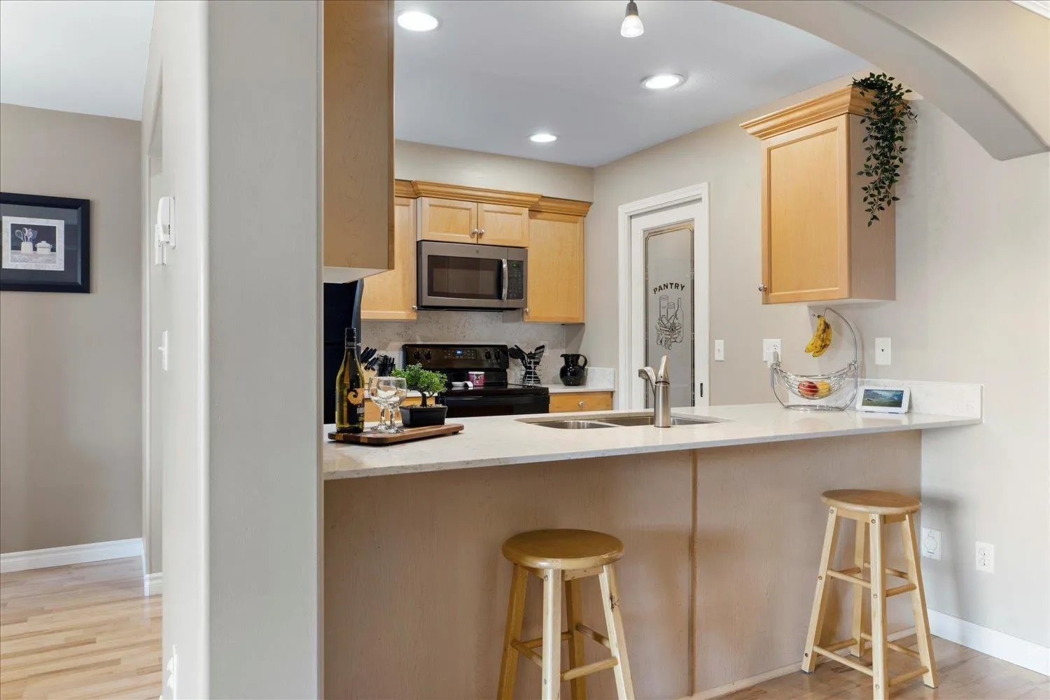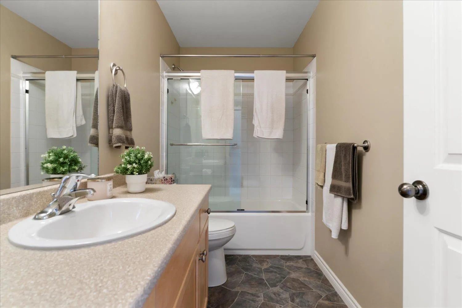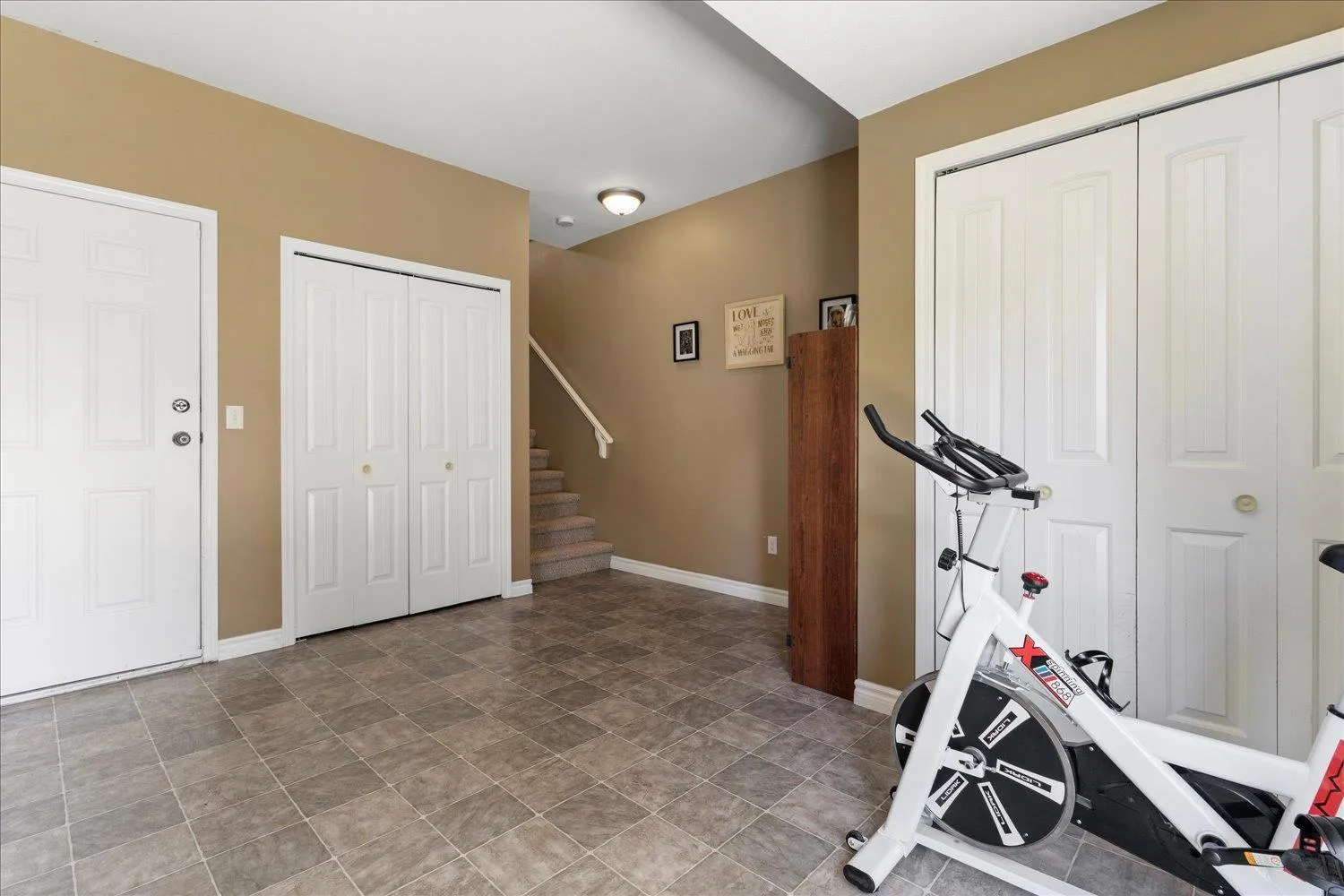TOWNHOME WITH UNBEATABLE PARKING! This large townhome with sought-after road frontage, and one of the best spots in the complex. The two car garage is paired with an extra long & double wide driveway. Nearly 2,000 sq. ft. of living space with 3 bedrooms upstairs, a large rec room below, and potential to convert to 5 bedrooms. Features include central A/C, cozy gas fireplace in the living room, central vacuum, Breakfast bar, a full pantry, and gas BBQ hookup on the covered patio. Fully fenced backyard with privacy and outdoor space. Located in desirable area of Promontory, walking distance to the amazing Jinkerson Park and trails plus with easy access to Hwy 1 via Prest Road. Pet-friendly complex (up to 3 pets allowed).This is the one you've been waiting for! Low Monthly Strata fees (id:27476)
