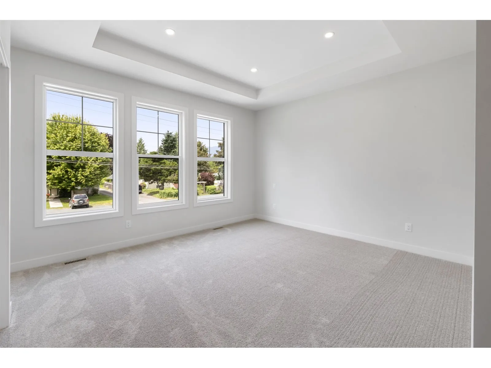Brand new Basement entry home with a large covered deck viewing Mount Cheam, built by a reputable local builder. Great offering with a nice sized lot (generous back yard) in an amazing location on the Chilliwack side. Awesome floor plan with ample square footage. 4 bedrooms, 2 bathrooms on the main floor. Generous sized master bedroom with walk in closet and ensuite. Large driveway for vehicle parking. Basement includes 2 bedrooms, a large recreation room with a covered deck. (roughed in to easily accommodate a spacious 2 bedroom unauthorized suite) A quality built home with fine finishings, stunning kitchen, gas BBQ outlet, triple pane windows, Heat pump, on a quiet road with great access to the highway and amenities. (id:27476)