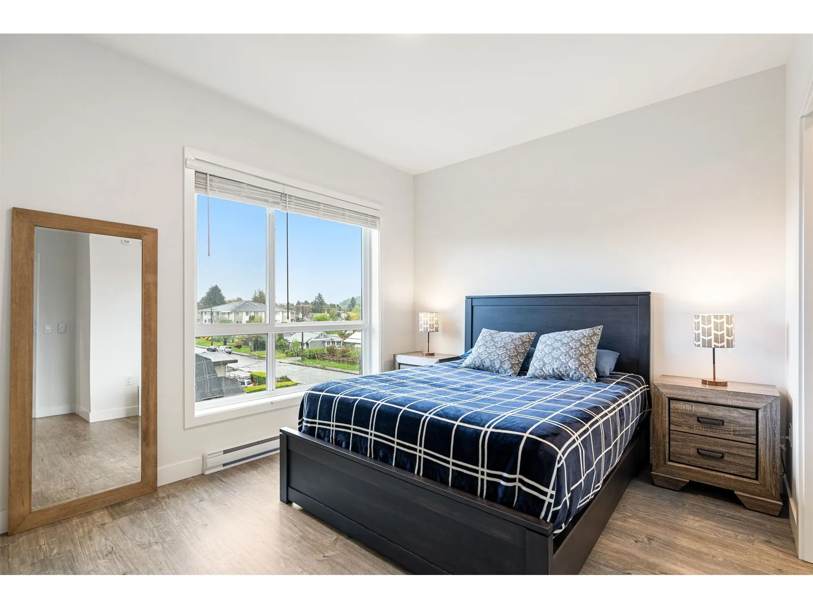 One of the best floor plans "The Robson" has to offer with a fully furnished 2-bed, 2-bath, 2 large parking stalls and a large storage locker corner unit in Chilliwack's historic area minutes away from the new Downtown Chilliwack. This bright, corner space boasts modern finishes, including a gourmet kitchen with stainless steel appliances and quartz countertops. The master suite features a walk-through closet to an ensuite bathroom. Enjoy easy access to public transport and nearby amenities, making it perfect for families. (id:27476)