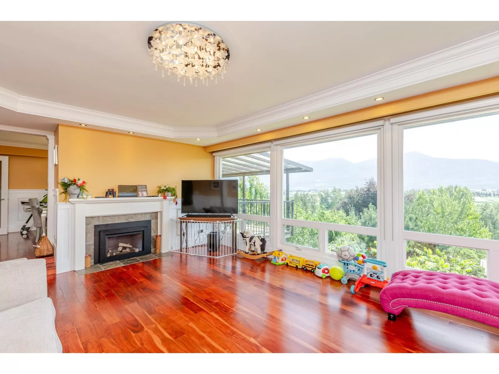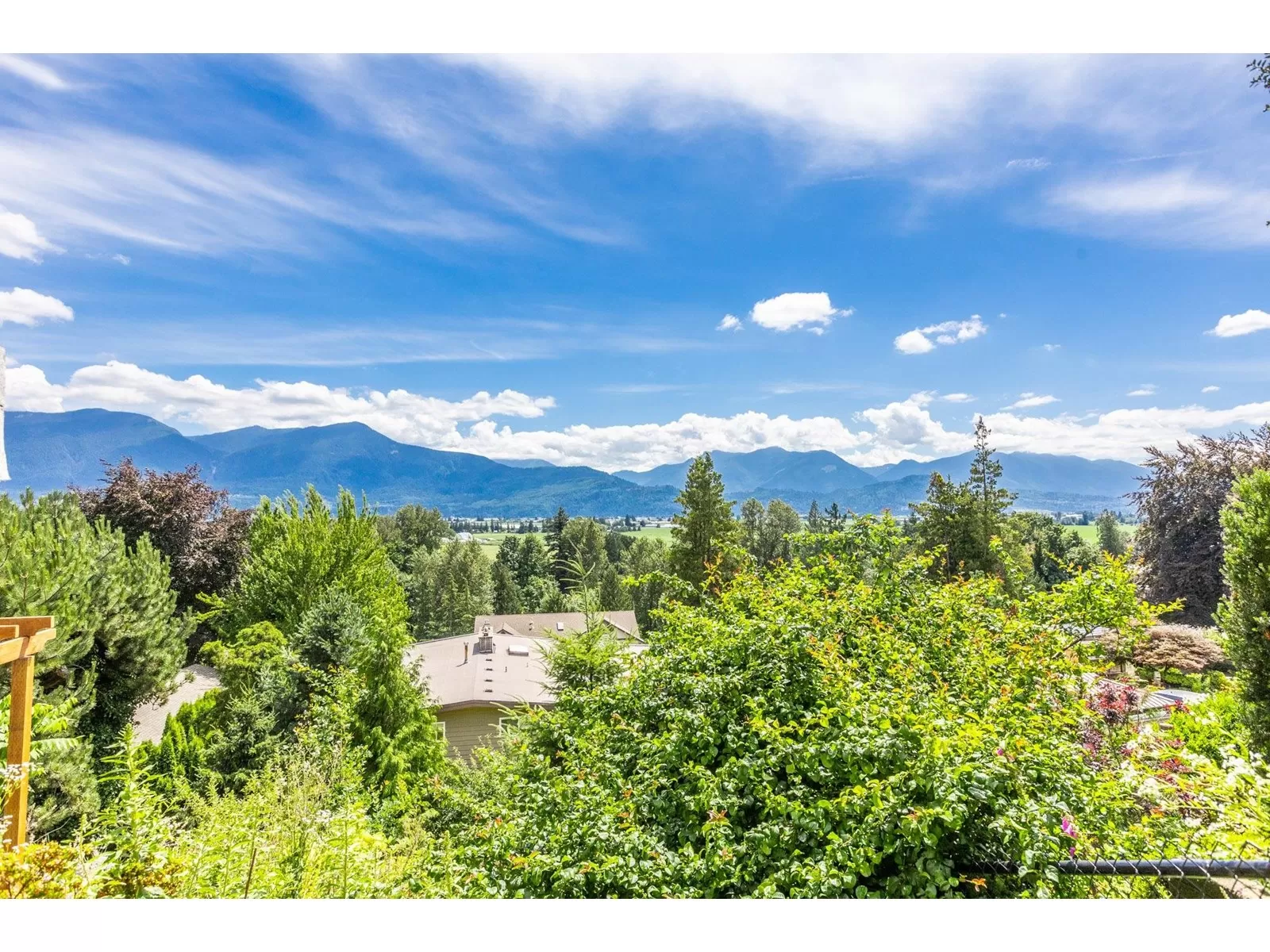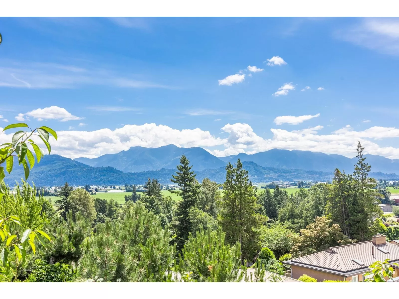 Rarely available 3216 sqft 5bed/5bath custom home with 0.25 acre view lot on Little Mountain. Located on a quiet cul-de-sac a very private and secure area called the Mt. Willion Estate. Home features open concept living area with a panoramic southern view over farm fields & Cascade Mountains. Large covered sundecks on Main and Below level for ultimate entertainment experience. Beautifully renovated interior with tray celling on main floor and beamed celling in the below level. Home features new furnace, new water system, new plumbing, S/S appliances, hot water on demand, new fence, security system and so much more. Perfect set up for family living and guests stay over! Large open front house area with RV/boat parking and double garage. Suite potential! Home is a must see! (id:27476)