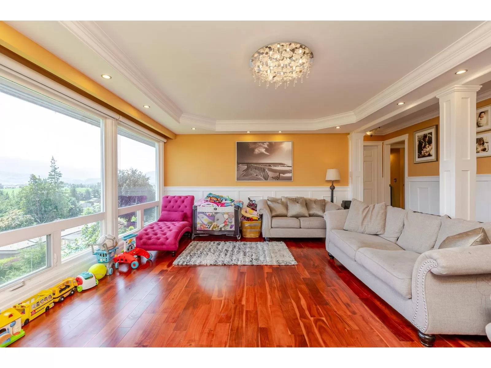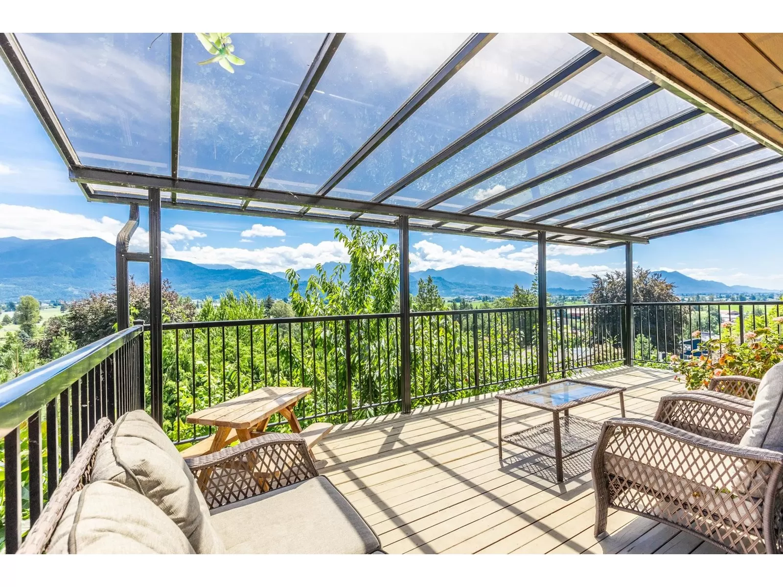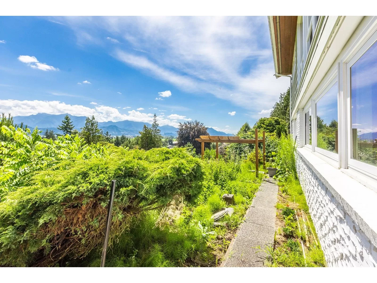 Rarely available 3216 sqft 5bed/5bath custom home with 0.25 acre view lot on Little Mountain. Located on a quiet cul-de-sac a very private and secure area called the Mt. Willion Estate. Home features open concept living area with a panoramic southern view over farm fields & Cascade Mountains. Large covered sundecks on Main and Below level for ultimate entertainment experience. Beautifully renovated interior with tray celling on main floor and beamed celling in the below level. Home features new furnace, new water system, new plumbing, S/S appliances, hot water on demand, new fence, security system and so much more. Perfect set up for family living and guests stay over! Large open front house area with RV/boat parking and double garage. Suite potential! Home is a must see! (id:27476)