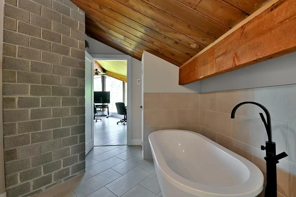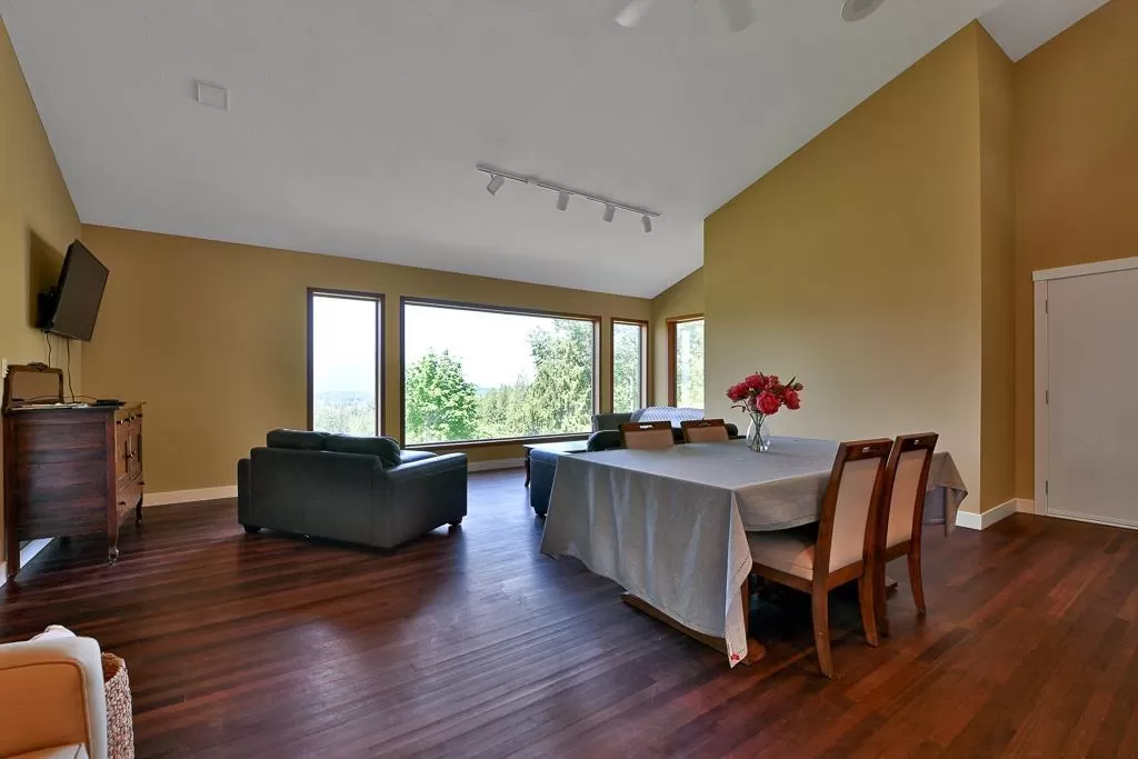 Discover this serene sanctuary nestled on a private, nearly 17-acre wooded lot featuring a Duplex style home. Side 1 has been beautifully updated, boasting oversized corner windows, a chef's kitchen, 3 bedrooms, 3 bathrooms, and a luxurious primary suite. The walkout basement could be easily converted to a suite, for an additional income source. Side 2 is equally impressive with updates including hardwood floors, a large bedroom with ensuite, plus a den/solarium and separate laundry, which is currently an operating Airbnb. Additionally there is potential to build a coach house, or start fresh and build your dream home on the flat build site. Large shop, spectacular views, and just 10 minutes out of town, close to hiking trails, golf, quick highway access and much more! Viewing by appt only (id:27476)