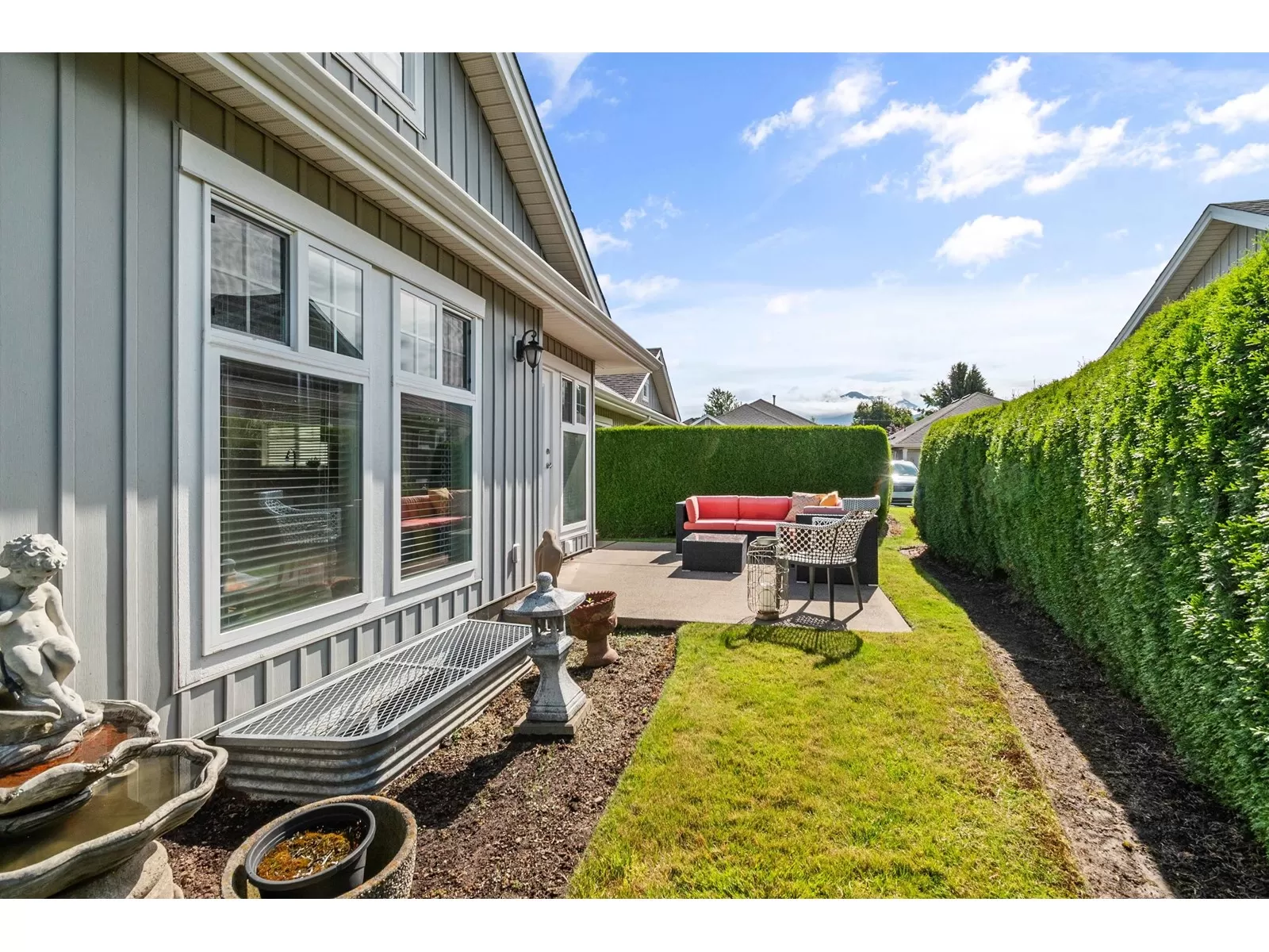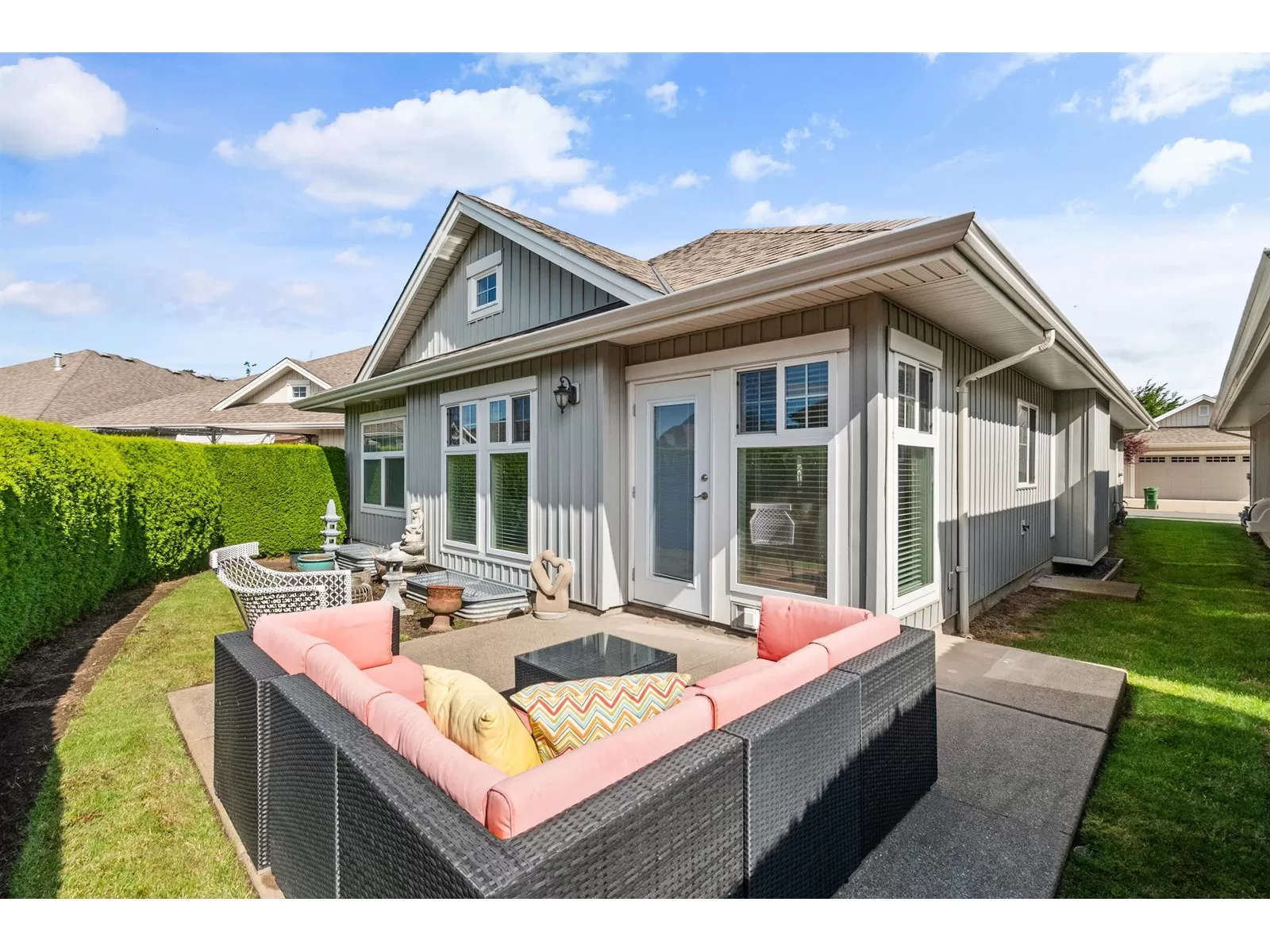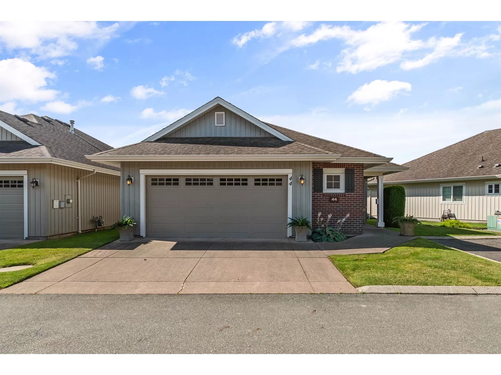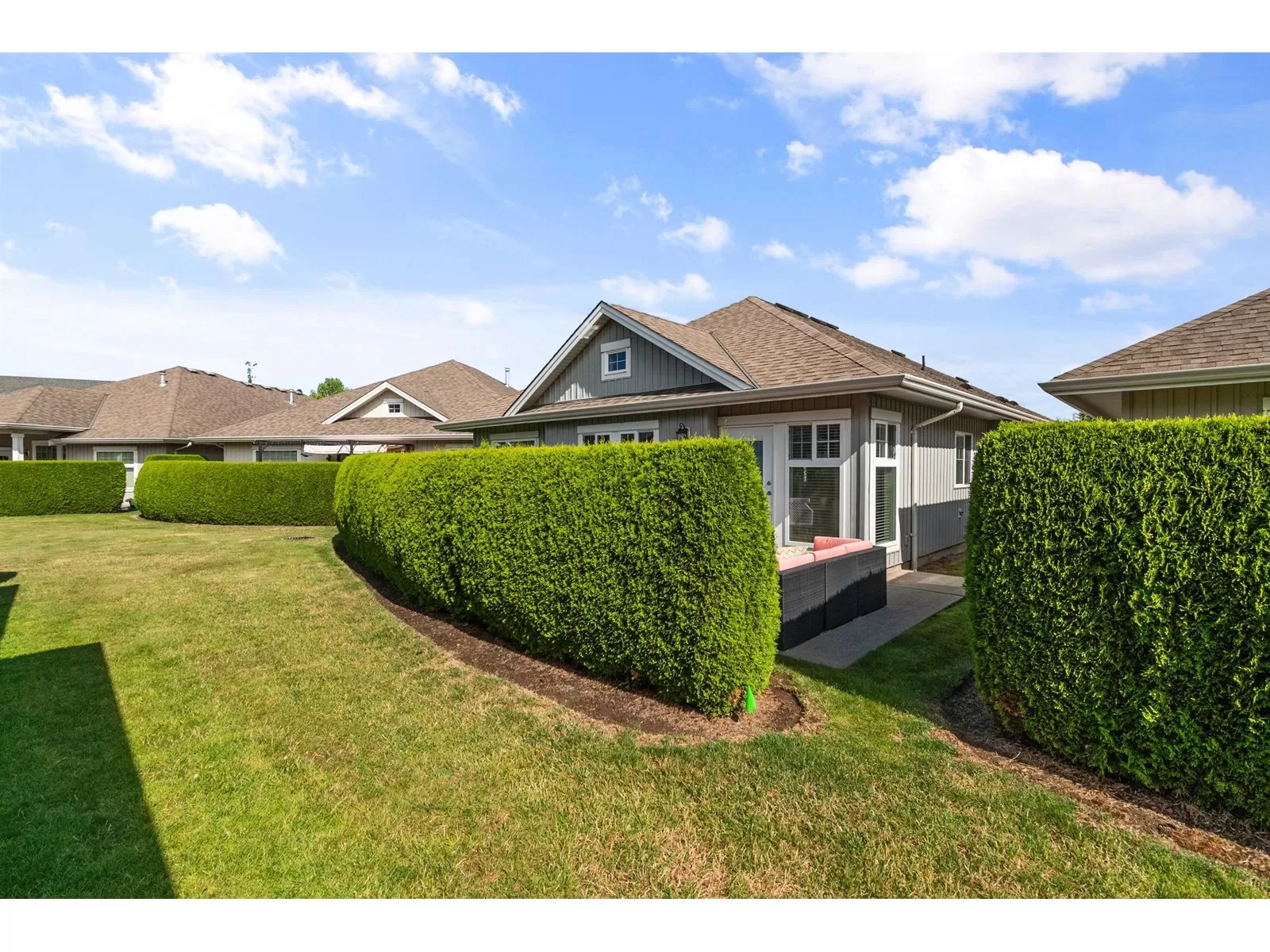Welcome to Stevenson Villas, gated 55+ community in the heart of Sardis. This well-kept 2Bed + Den, 3 Bath Rancher w/full bsmt offers a smart layout & rare combo of space, style & privacy. Cozy den (w gas FP) just off entry; perfect for office or flex. The main living area feat vaulted ceilings, dark wood flrs & welcoming family rm w/gas FP & custom built-ins. The kitchen has maple cabs, granite counters & SS appls, flowing into a bright eat-in area. The formal dining rm is a rare find in this complex. The primary suite located on the main flr. Downstairs, the finished bsmt incl lrg rec rm (w/FP), 2nd bdrm, full bath & unfin storage space, workshop, gym or more Bdrms. Enjoy a private yard backing greenspace. The oversized dbl garage incls a workspace. Strata $408.45/mo, 1 pet ok. (id:27476)