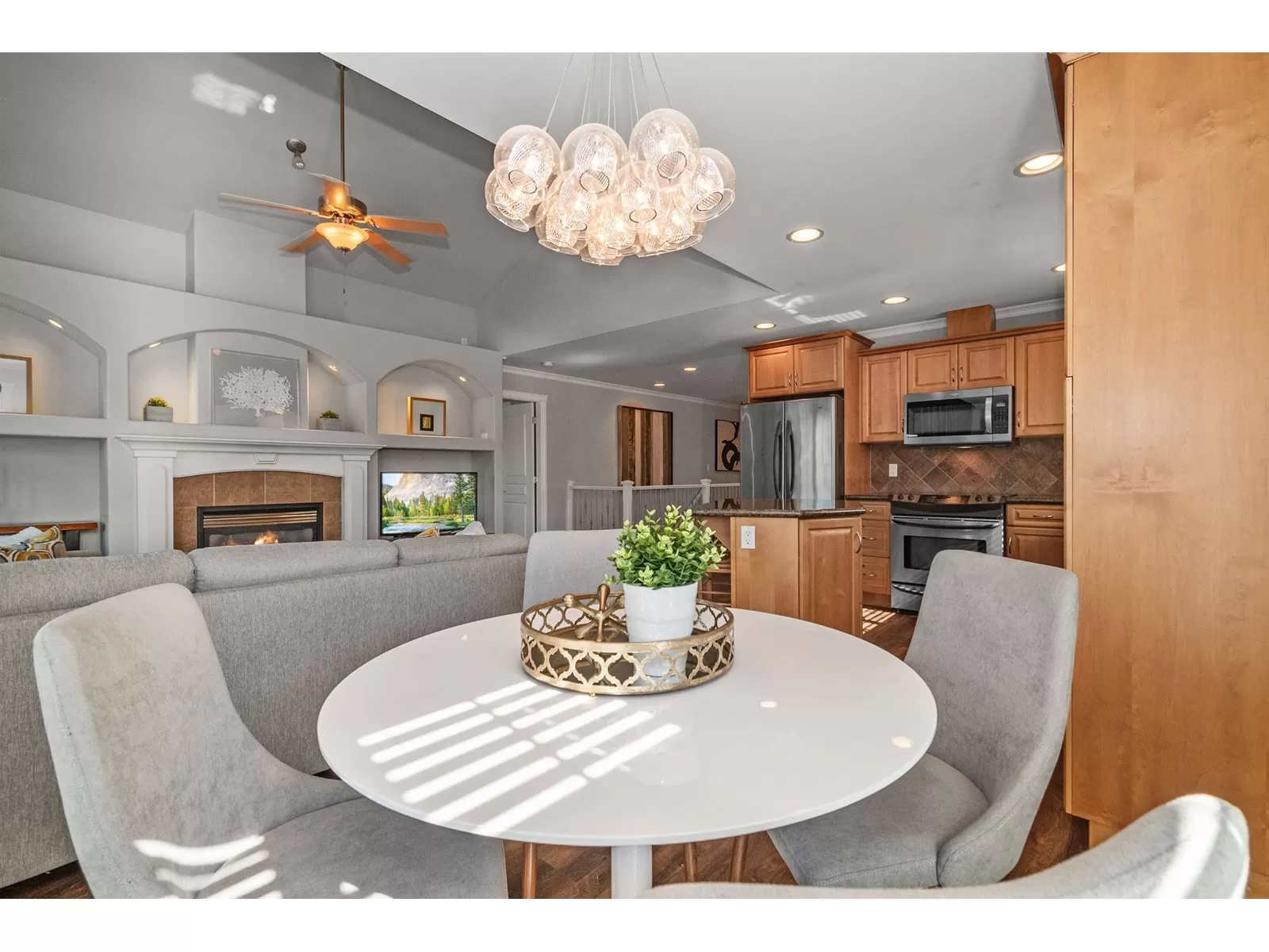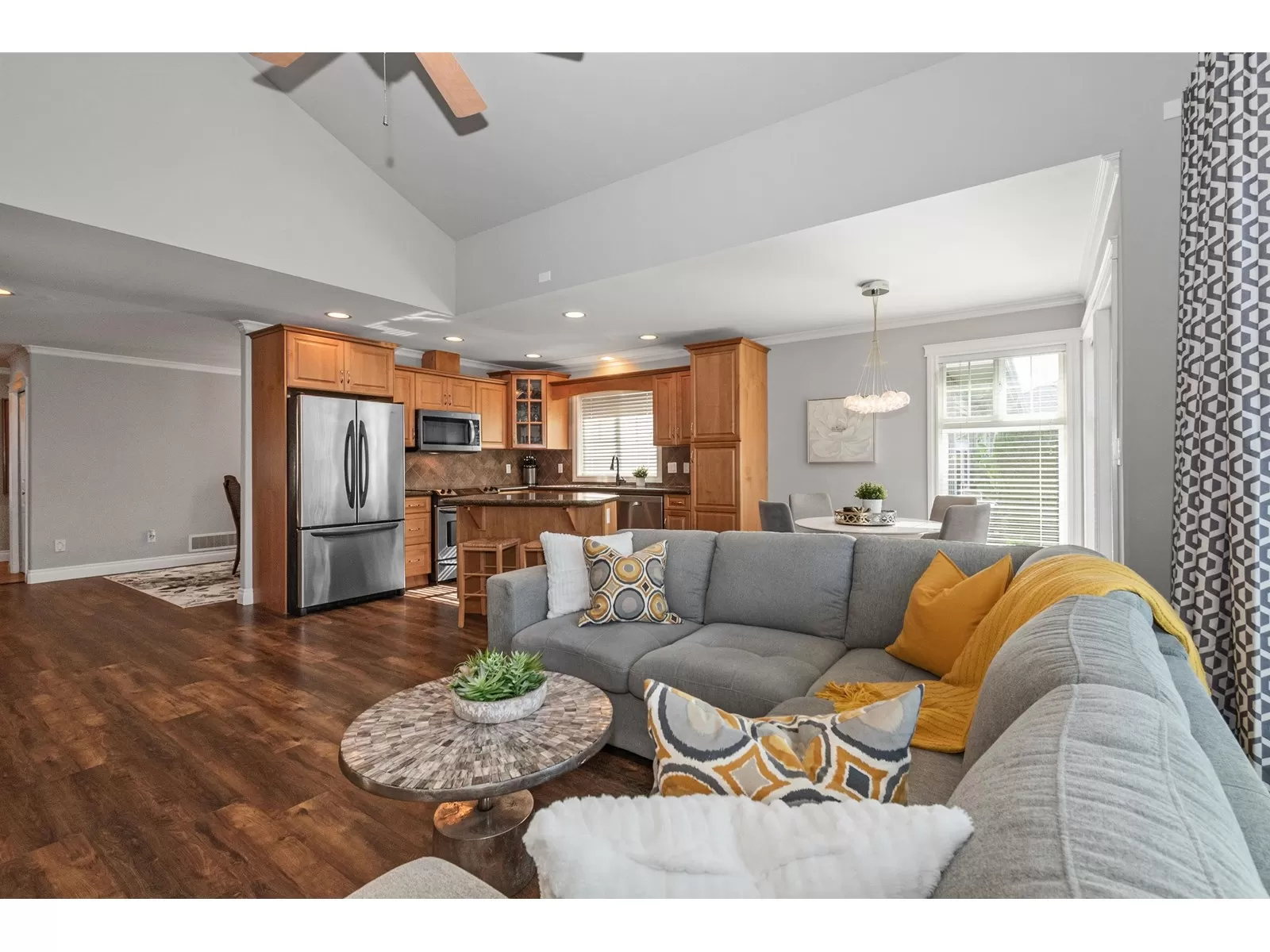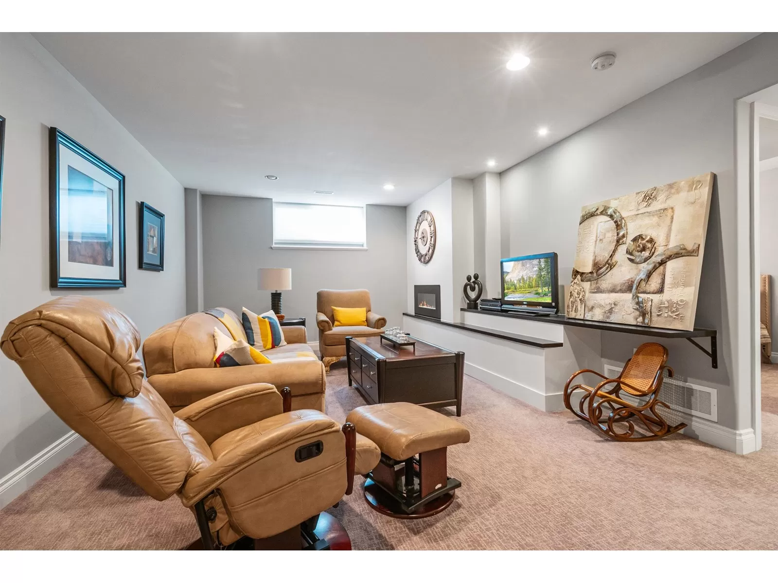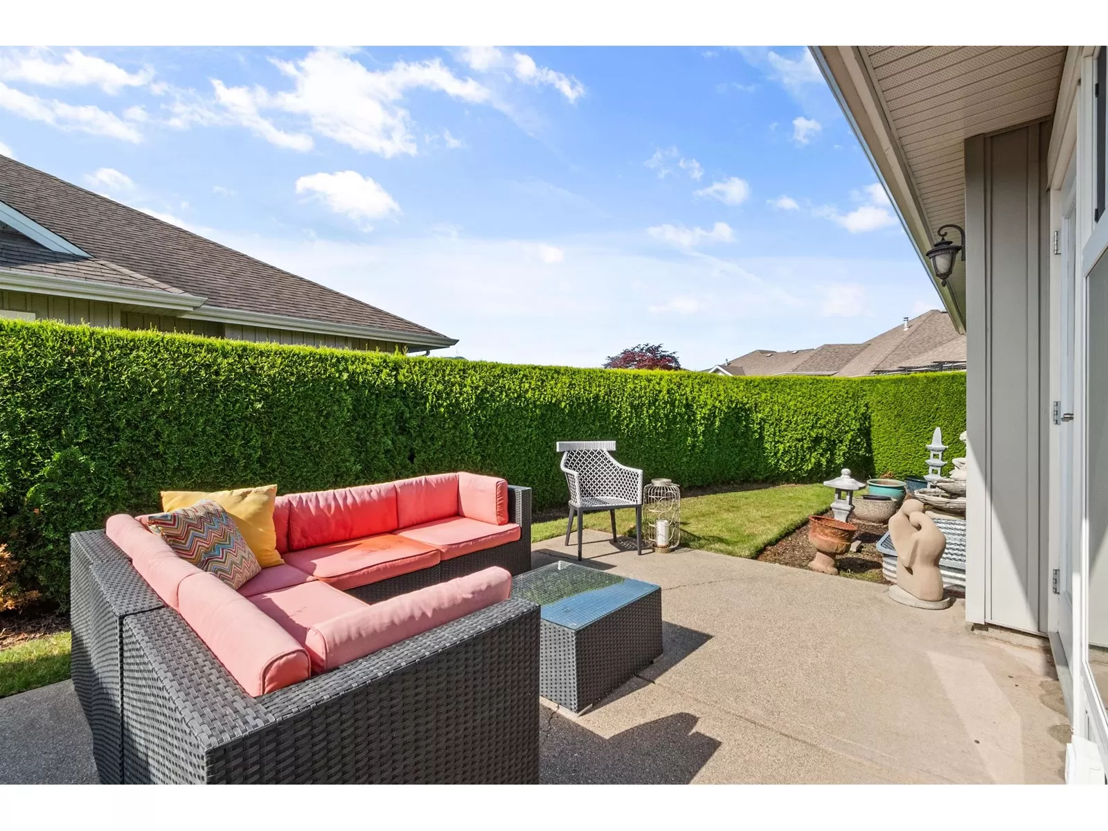 Welcome to Stevenson Villas, gated 55+ community in the heart of Sardis. This well-kept 2Bed + Den, 3 Bath Rancher w/full bsmt offers a smart layout & rare combo of space, style & privacy. Cozy den (w gas FP) just off entry; perfect for office or flex. The main living area feat vaulted ceilings, dark wood flrs & welcoming family rm w/gas FP & custom built-ins. The kitchen has maple cabs, granite counters & SS appls, flowing into a bright eat-in area. The formal dining rm is a rare find in this complex. The primary suite located on the main flr. Downstairs, the finished bsmt incl lrg rec rm (w/FP), 2nd bdrm, full bath & unfin storage space, workshop, gym or more Bdrms. Enjoy a private yard backing greenspace. The oversized dbl garage incls a workspace. Strata $408.45/mo, 1 pet ok. (id:27476)