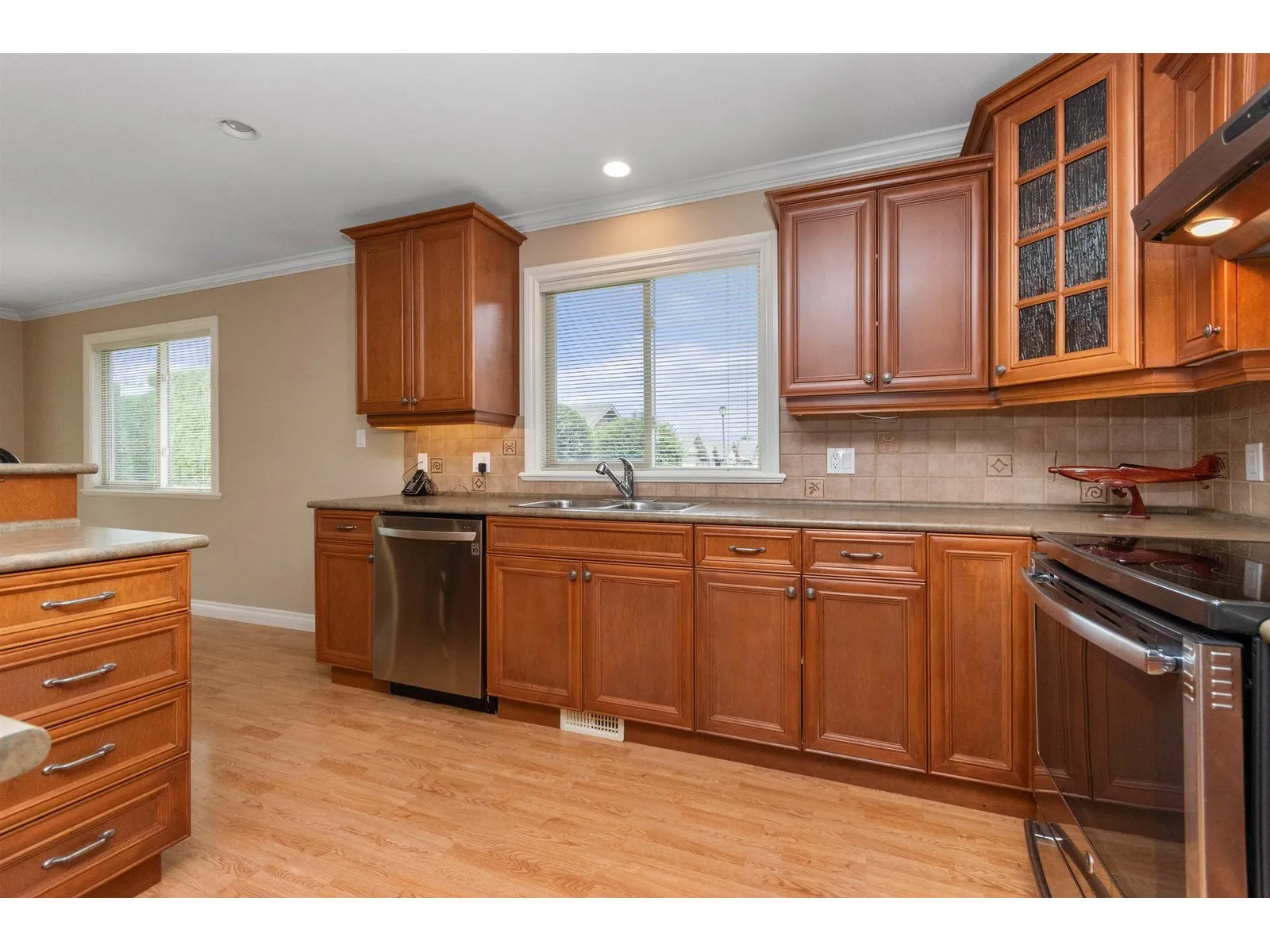 Located in a secure gated community, this beautifully maintained detached rancher features a larger floor plan with an open-concept kitchen, oversized island, and a spacious living and dining area. The primary bedroom includes a three-piece ensuite and walk-in closet, while the second bedroom is bright and generously sized. A custom office/den offers built-in cabinetry and a functional workspace . Enjoy outdoor living with a private covered patio and a powered awning for extra shade. The double garage provides ample storage, and the driveway fits a full-size truck. Ideally situated near the clubhouse, this home offers comfort, convenience, and a great community atmosphere. (id:27476)