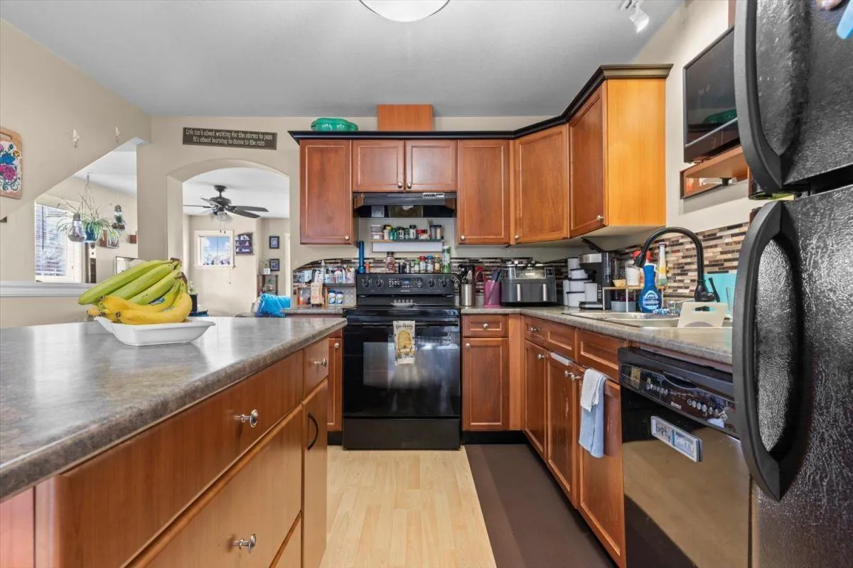 PLSE see movie. Welcome to the Gables. You will fall in love with this small townhome community. Offered here is a 3bdrm, 2bath inside unit over 1870sqft. The lower level offers a large foyer with storage, 2 car garage, a rec room and roughed in bathroom . Up to the main floor you will find an open concept plan where the living room flows into the kitchen and dining room seamlessly and out to your covered patio. The upper floor offers 3 good sized bdrms, a full size laundry room, the main bathroom and the master suite which has another full bathroom. The back yard is fully fenced for the family and pets. All this located walking distance to schools, shopping, parks, and the hospital. (id:27476)