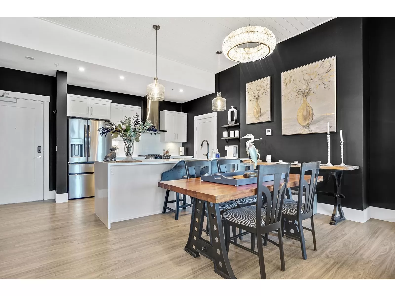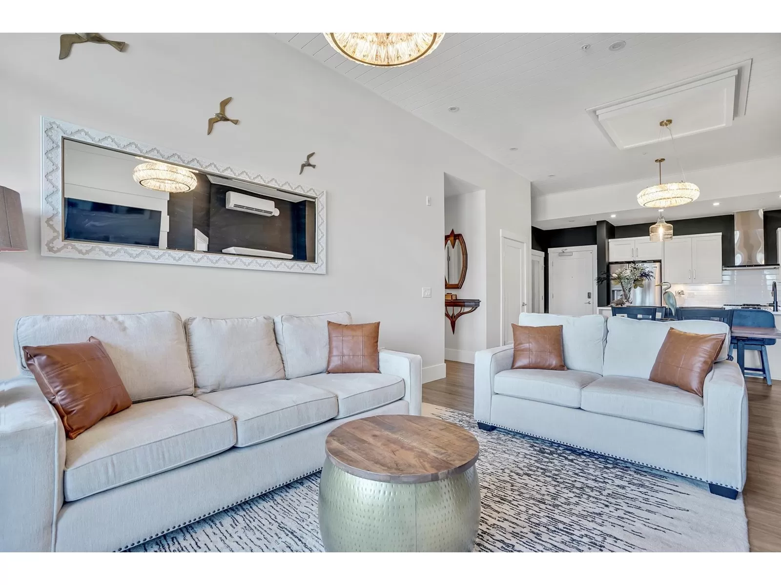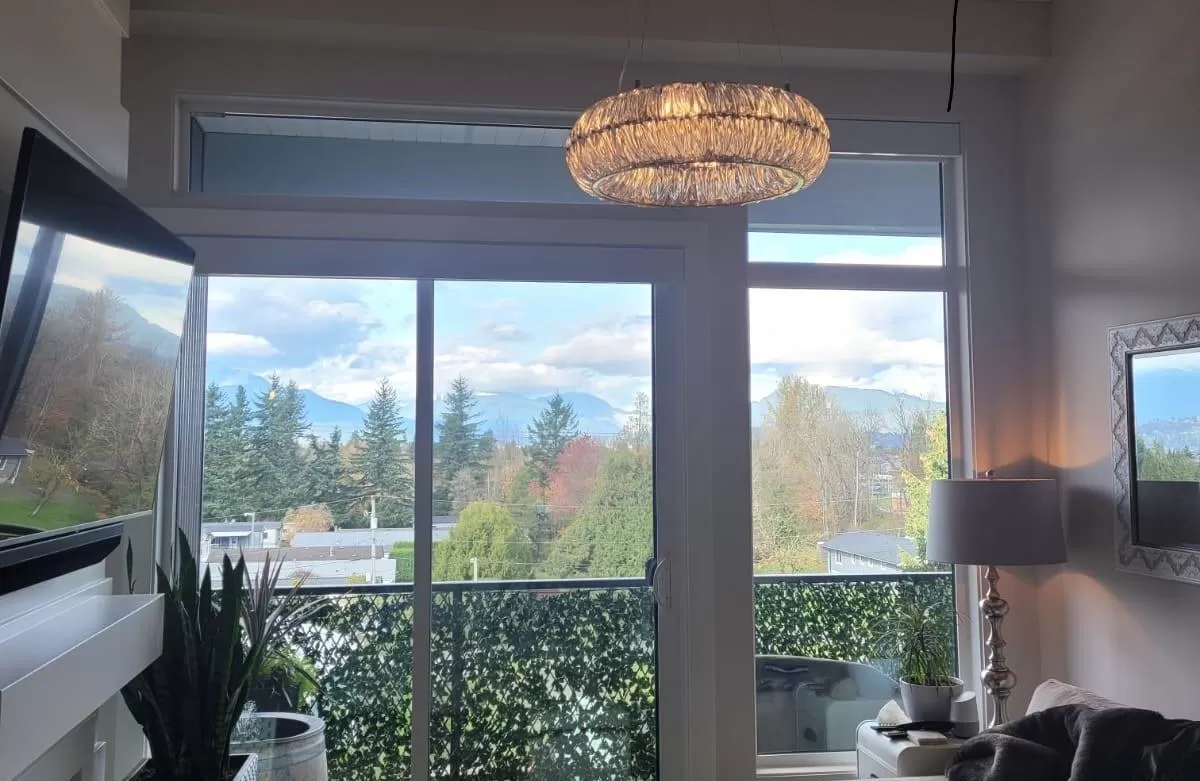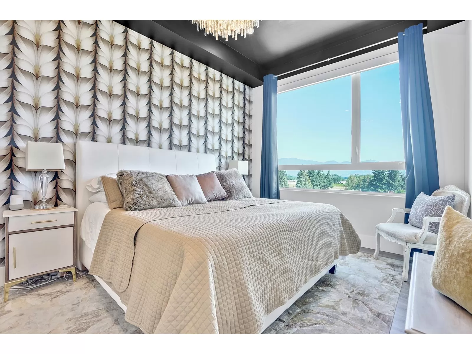 Welcome to refined living in this professionally designed 2-bed, 2-bath + den sub-penthouse, perfect for your next chapter. Thoughtful touches include crystal chandeliers, 11-ft ceilings, a warm, elegant colour palette, and an upgraded kitchen with custom pantry. Enjoy a walk-in closet that feels like a dressing room, a serene primary bedroom, power blinds on all windows, heat pump/AC, & stunning mountain views. With a secure EV charger dedicated to your parking spot, a vibrant community room and rooftop terrace with gas fire pits & BBQ, this move-in-ready home offers connection, comfort and ease in the heart of Sardis. Bike room, scooter charging, pet area, guest suite... Did we mention the stunning views and that we are on the quiet side of the building? Call your REALTOR today. (id:27476)