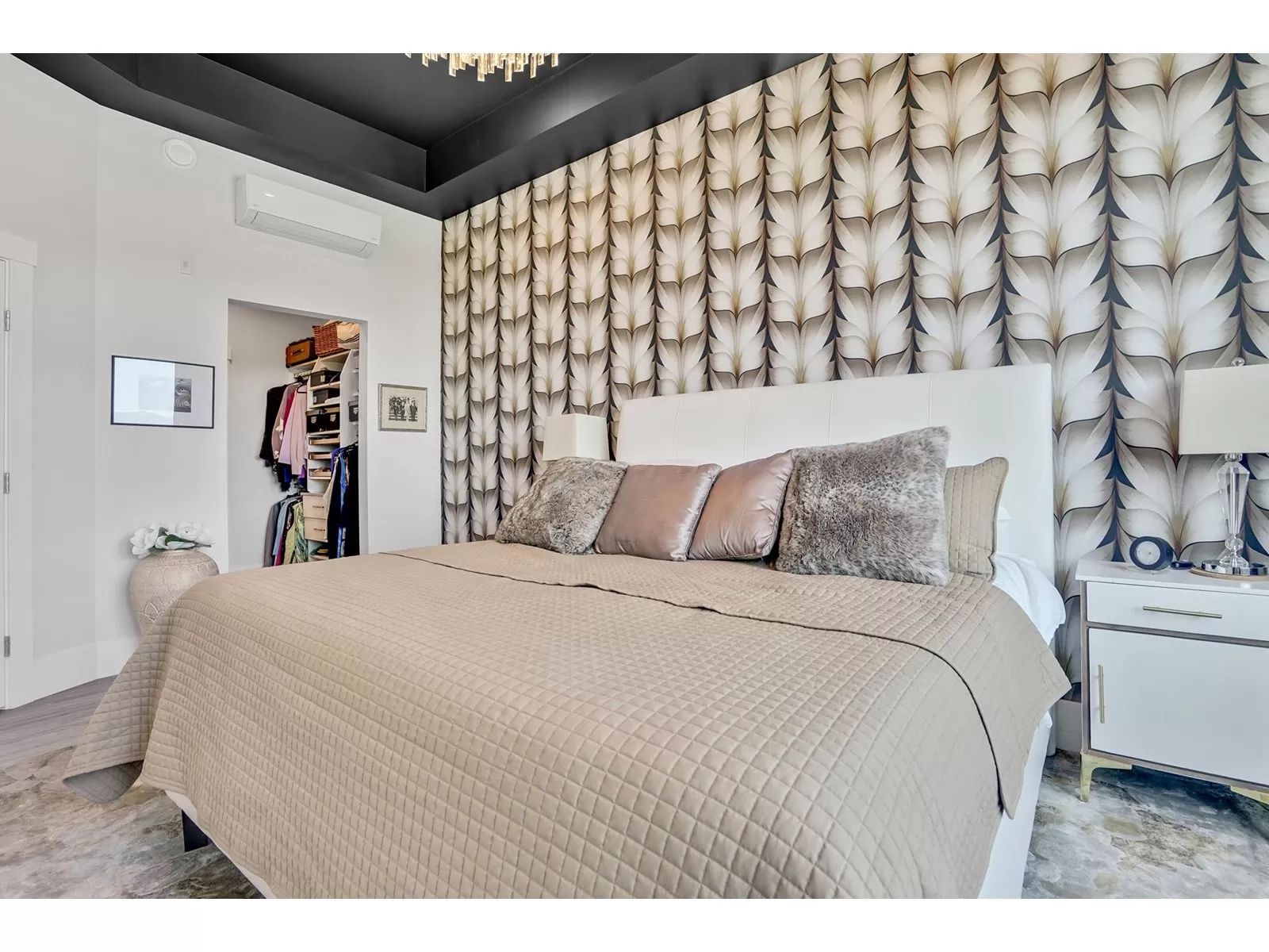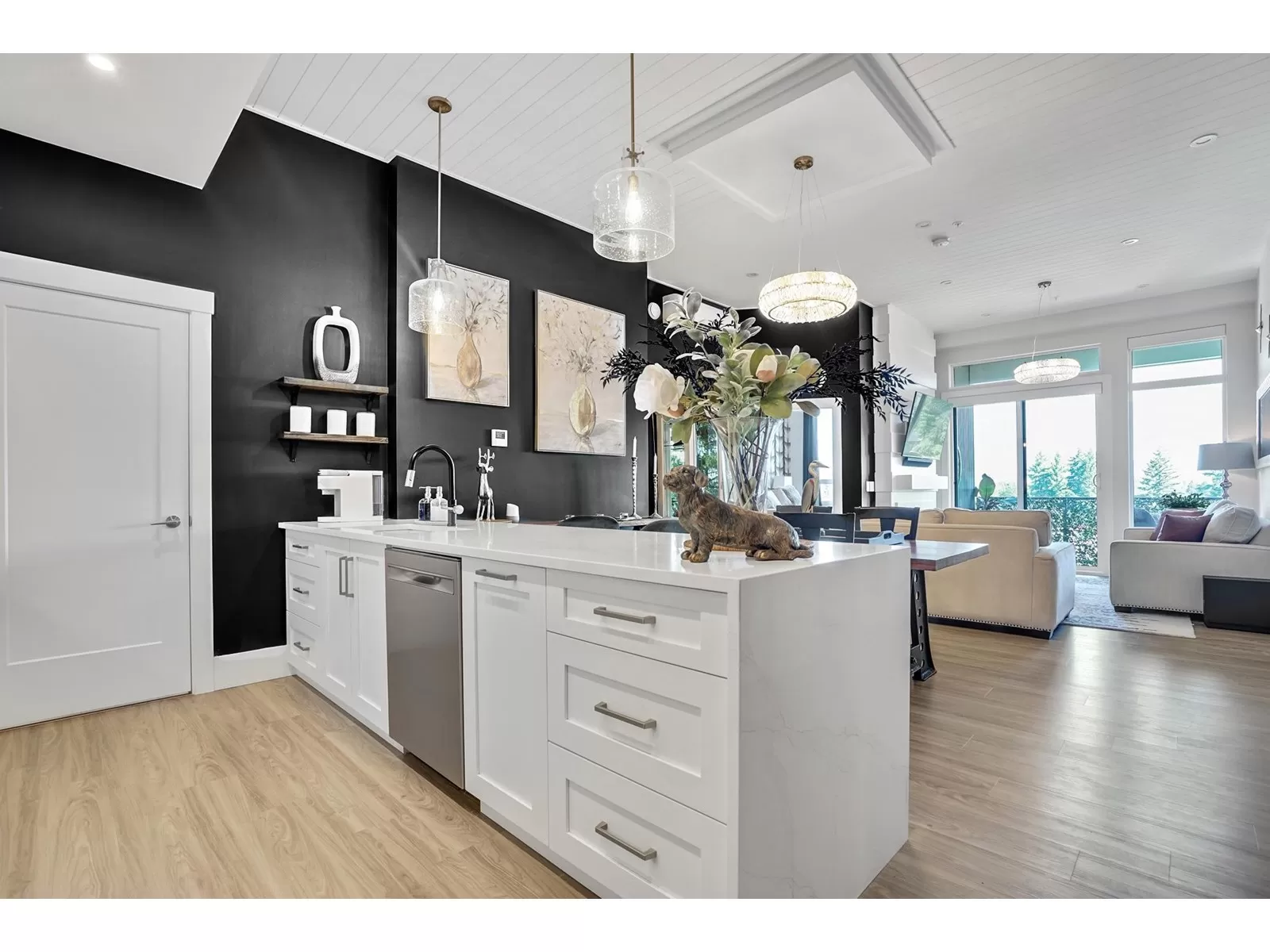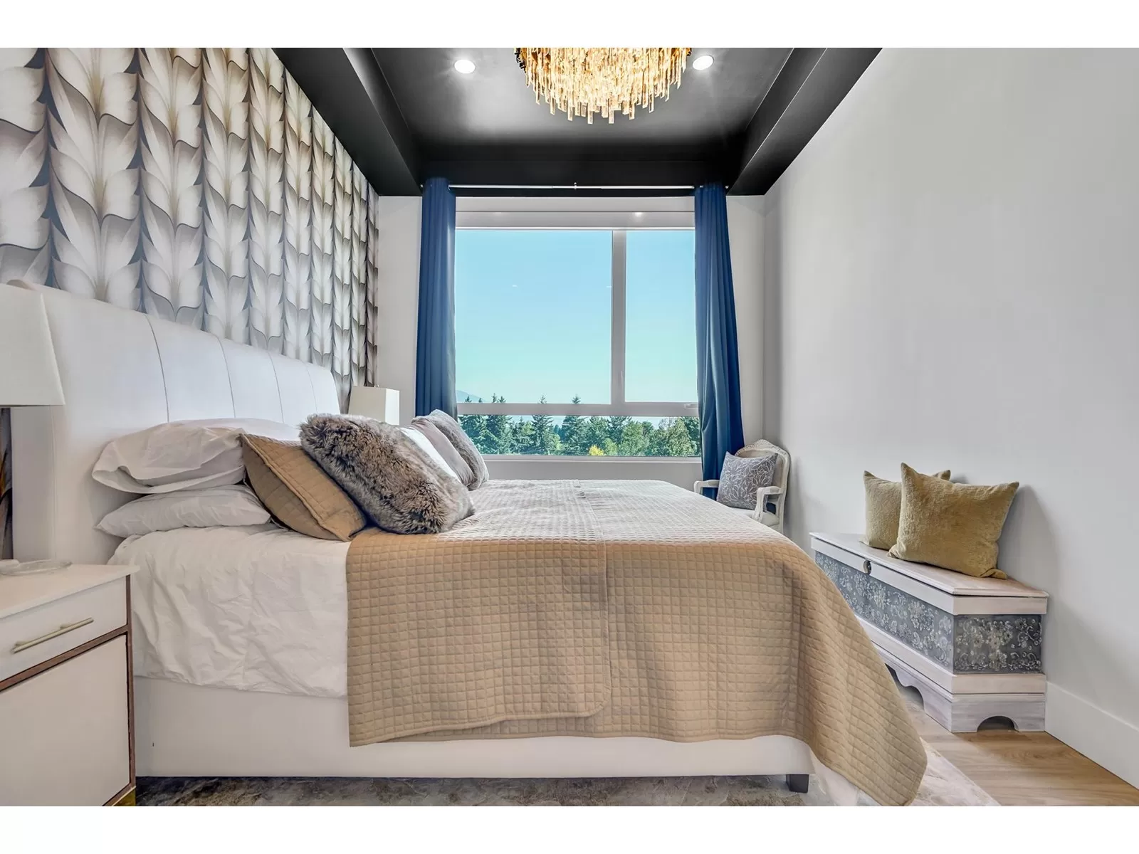 Welcome to refined living in this professionally designed 2-bed, 2-bath + den sub-penthouse, perfect for your next chapter. Thoughtful touches include crystal chandeliers, 11-ft ceilings, a warm, elegant colour palette, and an upgraded kitchen with custom pantry. Enjoy a walk-in closet that feels like a dressing room, a serene primary bedroom, power blinds on all windows, heat pump/AC, & stunning mountain views. With a secure EV charger dedicated to your parking spot, a vibrant community room and rooftop terrace with gas fire pits & BBQ, this move-in-ready home offers connection, comfort and ease in the heart of Sardis. Bike room, scooter charging, pet area, guest suite... Did we mention the stunning views and that we are on the quiet side of the building? Call your REALTOR today. (id:27476)