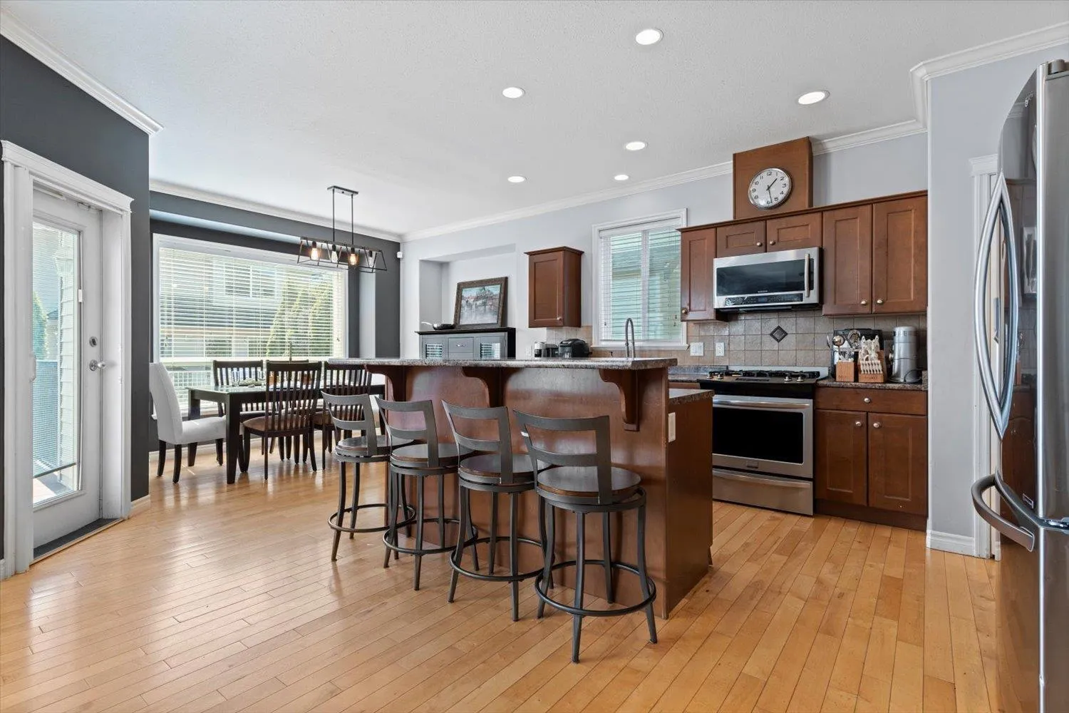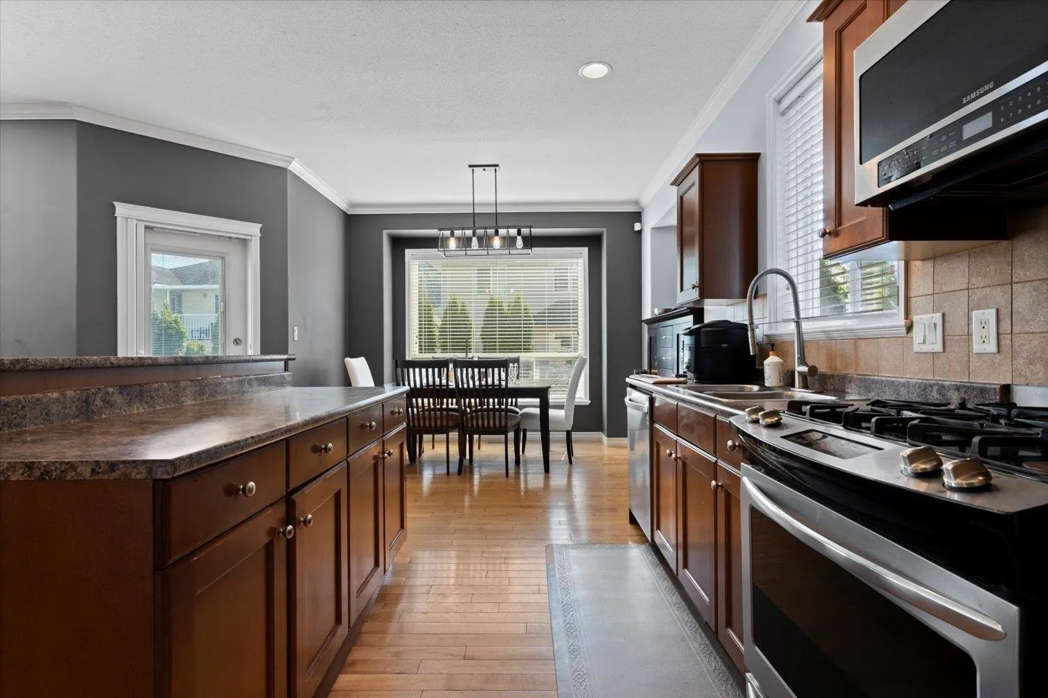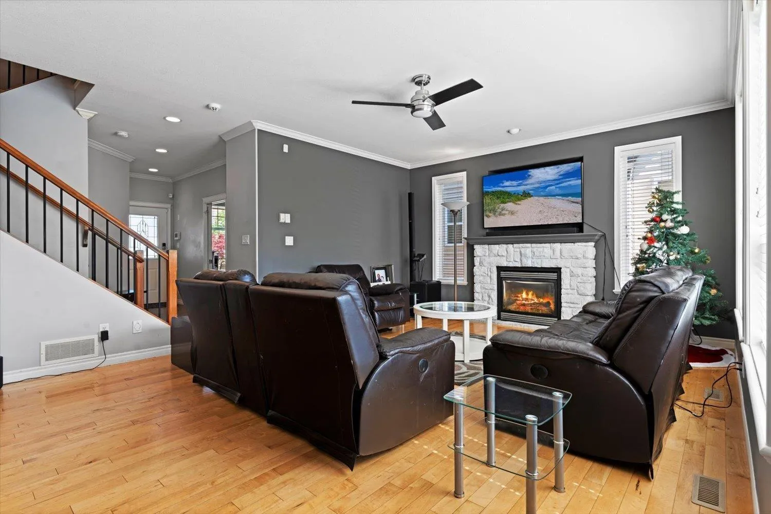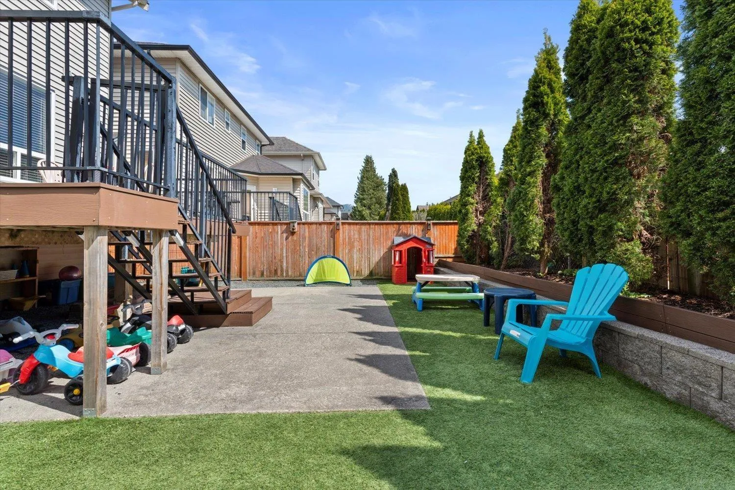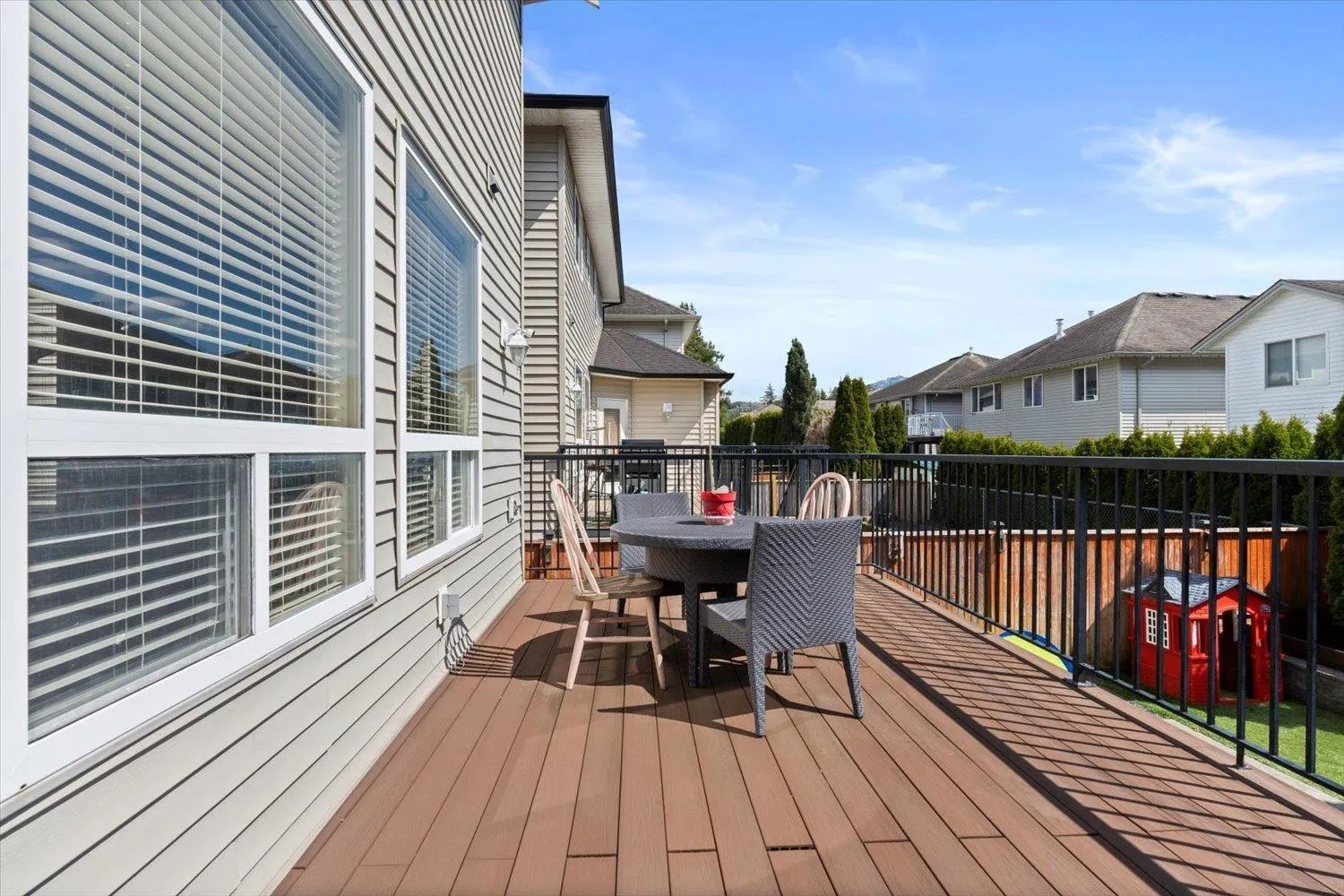 Welcome to this well-maintained 5-bed, 4-bath Sardis home"-perfect for families! Just 2 blocks from the Vedder River and minutes from top schools, parks, shopping, and Cultus Lake. The open-concept main floor features a modern kitchen with updated stainless steel appliances, a large eating bar, hardwood floors, a cozy gas fireplace, and a den/office. Step outside to a fully fenced, manicured yard with an expanded patio and stunning southern mountain views. Upstairs offers 3 spacious bedrooms, including a master with ensuite and soaker tub; one bedroom can be converted back into 2. The finished basement includes a 2 bedroom suite with separate access and laundry. Located in a quiet bareland strata! * PREC - Personal Real Estate Corporation (id:27476)