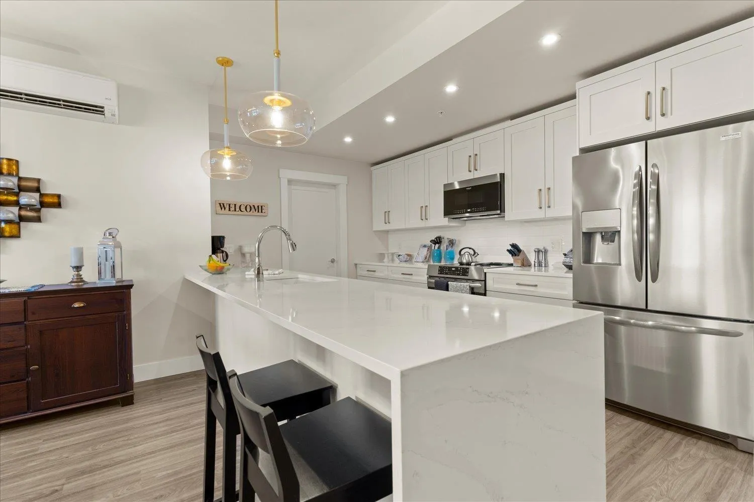 Sophisticated two bed, two bath + den Condo w/ bright open floor plan, lovely deck with unobstructed mountain views. One of the few units that offer 2 SECURE UNDERGROUND PARKING STALLS & 2 STORAGE LOCKERS. Adult luxury living, age 45+, built with the retiree lifestyle in mind offering a luxurious contemporary design and modern amenities for an upscale living experience. This inside unit comes fully upgraded with wide plank vinyl flooring, Silestone quartz counter tops, quality white cabinetry, full upgraded appliance package, A/C, electric fireplace. Clubhouse with roof top patio, outdoor kitchen, fire tables, 2 guest suites and walking distance to grocery shopping, banks, and more!. * PREC - Personal Real Estate Corporation (id:27476)