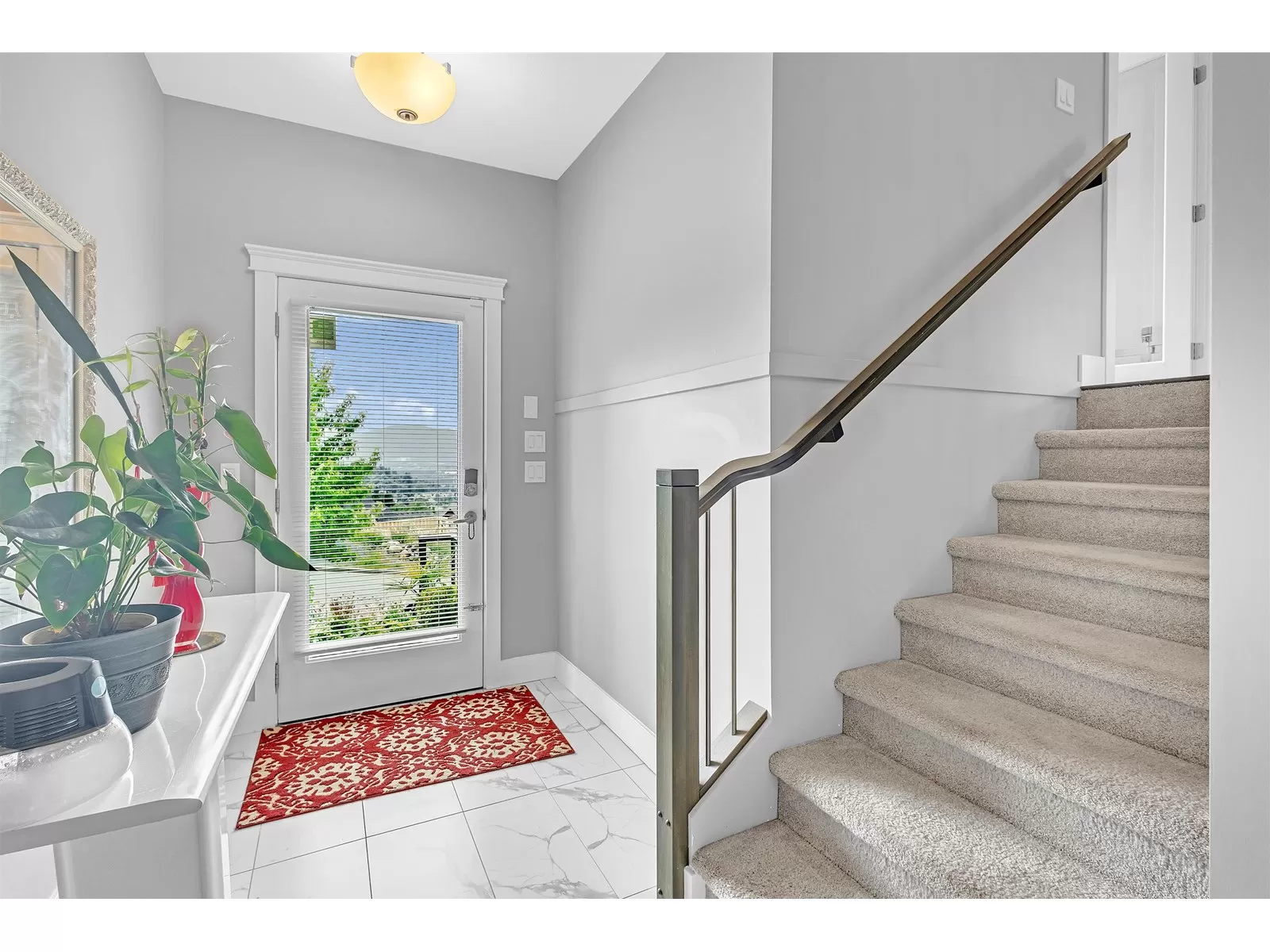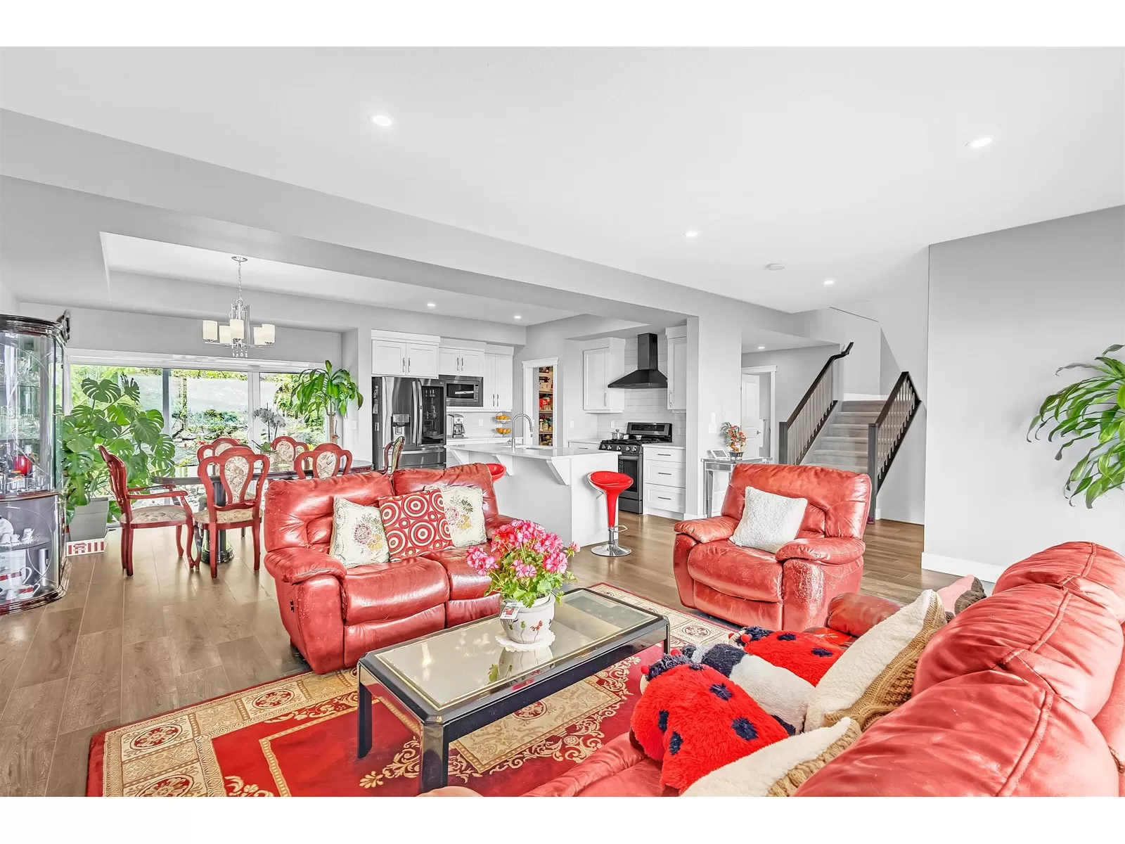 Mountain + Valley Views! Welcome to The Summit, a stunning West Coast Contemporary home by Domae Homes. Enjoy an open-concept layout with sleek quartz counters, stainless appliances with Insta View Fridge & gas range, walk-in pantry, and large island. Dining area opens to a private backyard backing onto a tranquil greenbelt, offering nature at your doorstep.The living room features soaring windows & double patio doors to a covered deck with breathtaking valley views.Main floor includes a den, powder room, & laundry.Upstairs:4 spacious bedrooms including a luxe primary with 2 walk-in closets, spa-like ensuite, & private deck, overlooking the valley & the beautiful sunset.Downstairs: Includes a large family room & a nice office. Central A/C makes this home at its highest level of comfort. (id:27476)