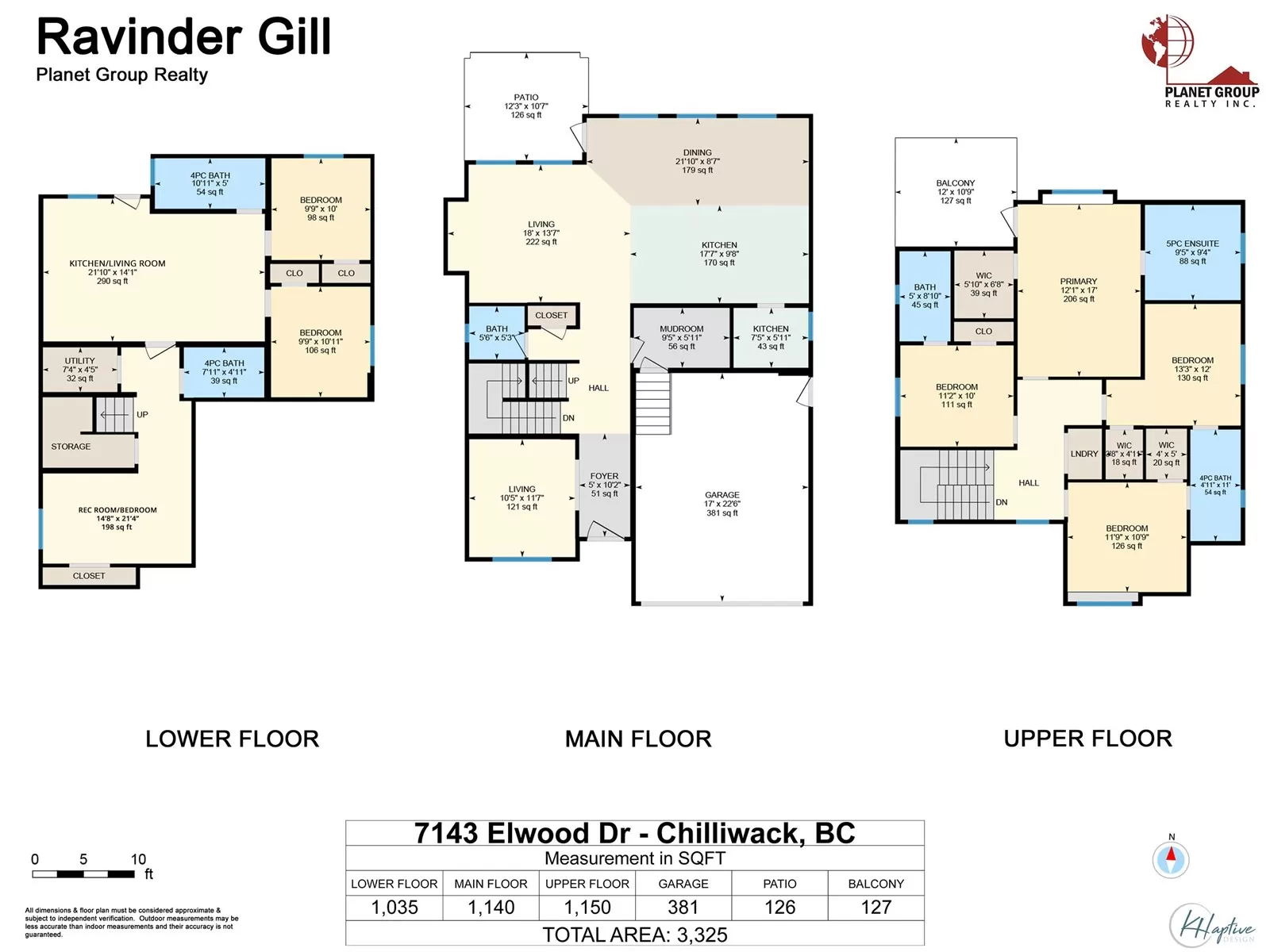 Welcome to this beautiful newly built home by Sindhi Custom Homes in the heart of Sardis. This home offers over 3,300sf of living space with 6 bedrooms and 6 bath while sitting on an approx 4,000sf rectangular lot. Main floor features an open concept floor plan with a den/office off the main entrance, gourmet kitchen, quartz counters throughout, prep kitchen, fam rm, dining, mudroom, and a 2pc bath. Upstairs offers a generous sized master suite with it's own 5pc ensuite, walk in closet, and additional 3 bedrooms+2 full bath. Downstairs offers a LEGAL 2 bed suite w/ a private entrance, making it perfect for extended family or as a mortgage helper along with a bonus den. This home is located just minutes from all your shopping needs, bus routes, HWY1, schools, and parks. (id:27476)