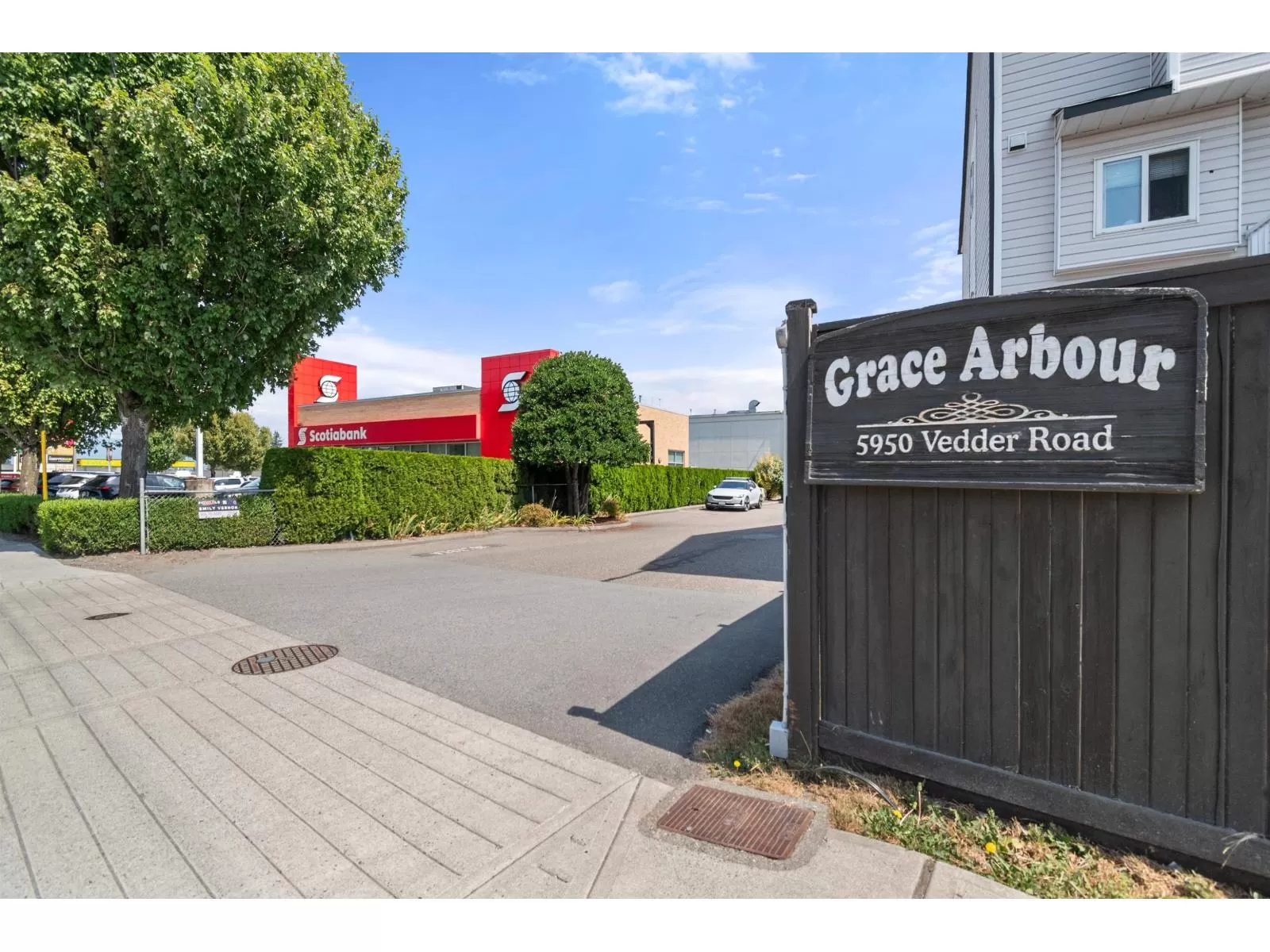 Superb location! Minutes from shopping, recreation, transit, schools, parks, and amenities. This 3-story townhouse features an attached garage, 3-level, add'l parking, and a fenced yard. The expansive LR showcases a gas fireplace, and the kitchen balcony provides views of the mountains and city. The 2021 renovations included updated kitchen cabinets, quartz countertops, new backsplash, flooring, stainless steel appliances, new lighting, updated bathrooms, customized closet, and a spacious walk-in closet in Primary BR. A rare opportunity to own a well loved and well maintained Sardis townhouse at Grace Arbour, ideal for families or investors seeking a turn-key property. Schedule a showing to experience its excellence. Roof replacement levy is being paid with 4 months left. (id:27476)