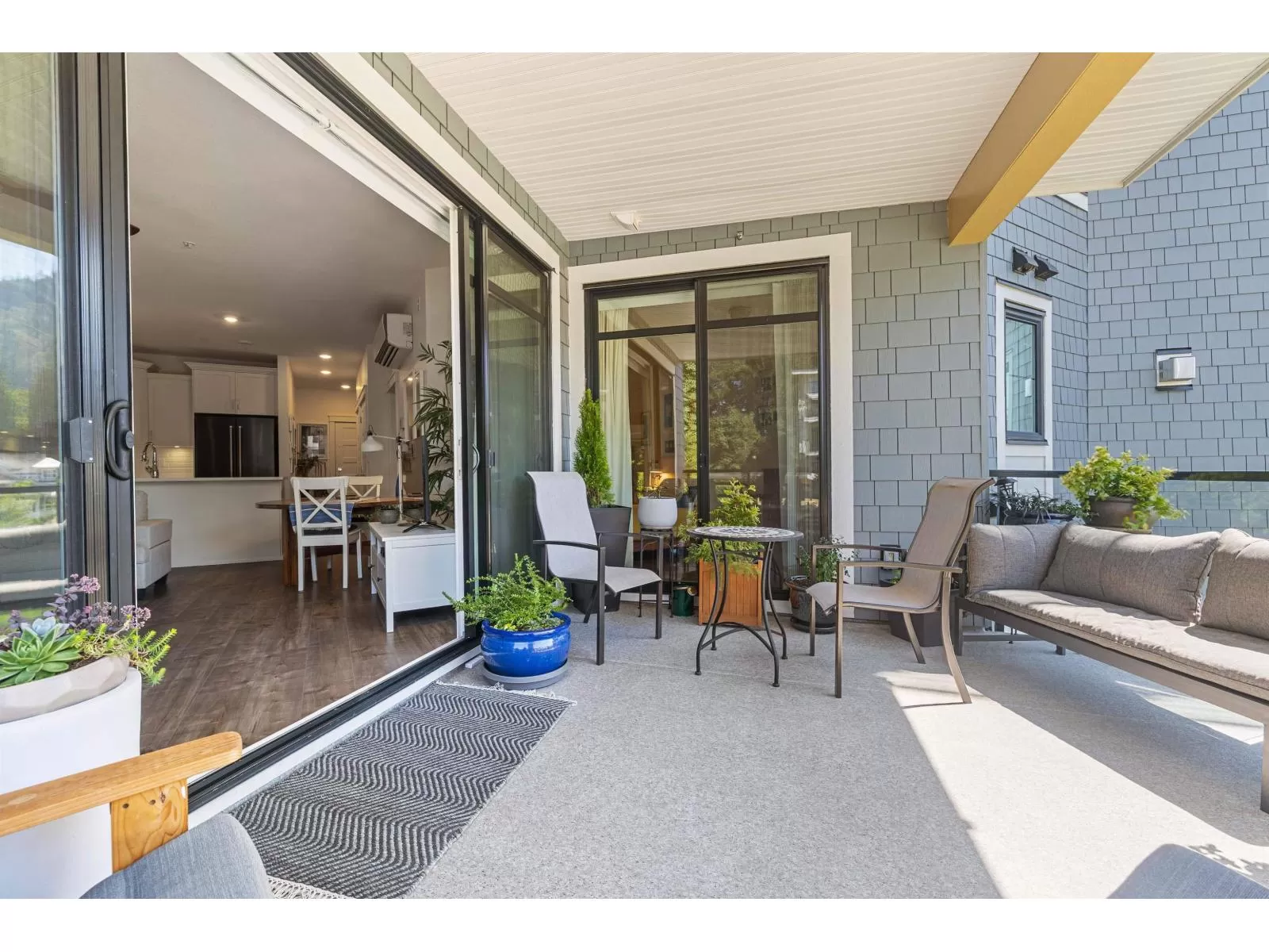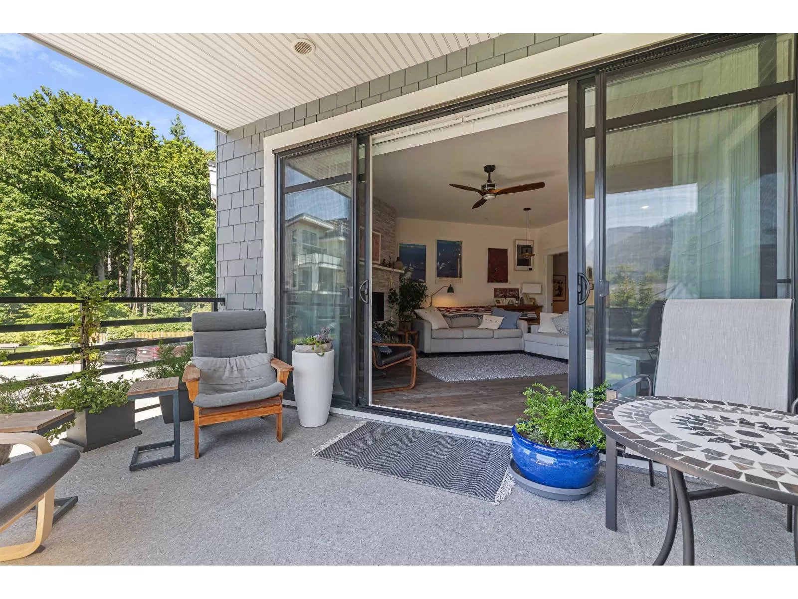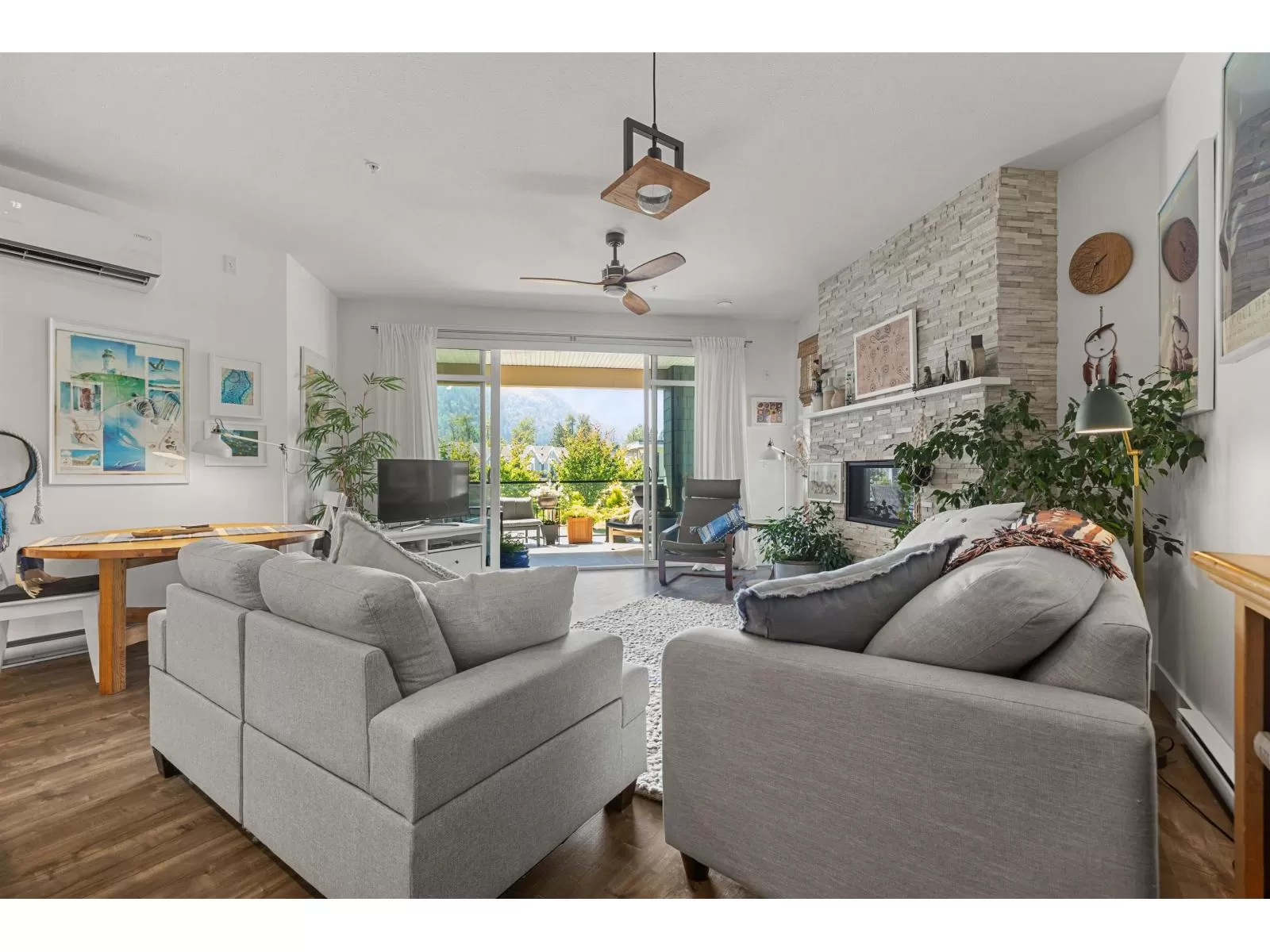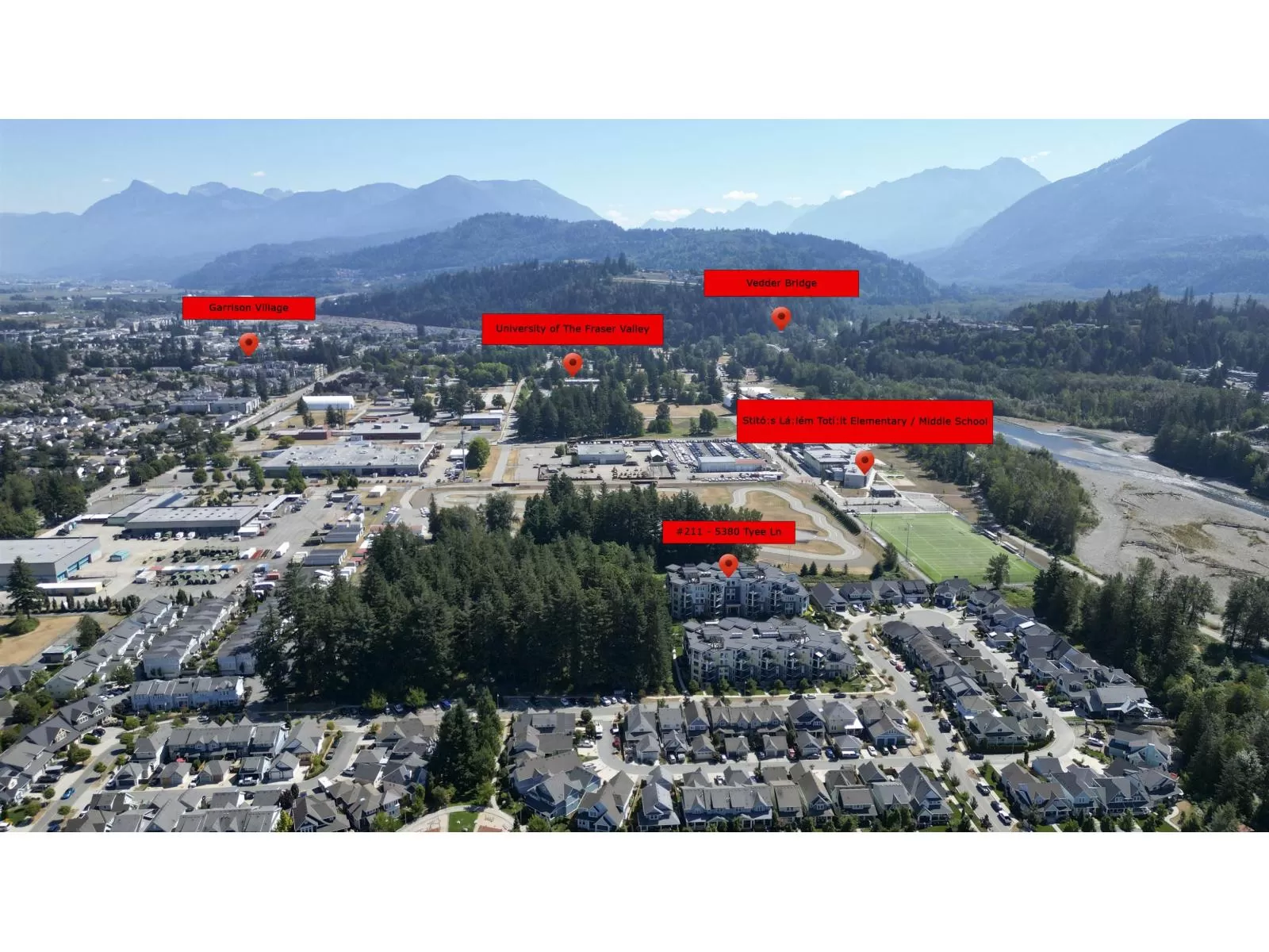 Flooded w/natural light, southern exposure, gorgeous oversized deck highlighting the sweeping views & a short 3 min walk to the Vedder River, you do not want to miss this stunning 1 bed, 1.5 bath & DEN condo w/1,082 sq ft in the coveted Rivers Edge neighborhood. Stunning finishes, airy feel, full laundry room, expansive kitchen, quartz countertops, black Kitchen Aid s/s appliances, gas stove, A/C, gas f/p, dining area & spacious living room taking advantage of the views. Enjoy easy living in this prime neighborhood where you can enjoy evening walks plus proximity to Garrison for shopping, restaurants & groceries. Pet friendly w/no size restrictions for dogs, low monthly strata fee, secured underground parking, visitor parking & storage locker; make this stunning condo your new home! (id:27476)