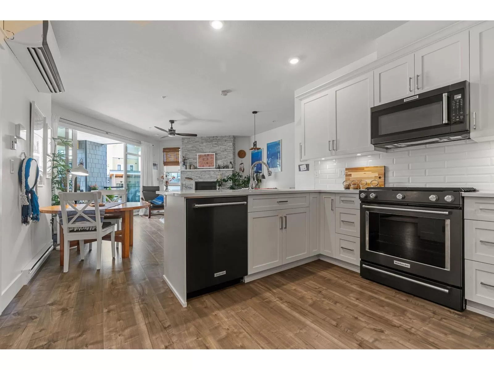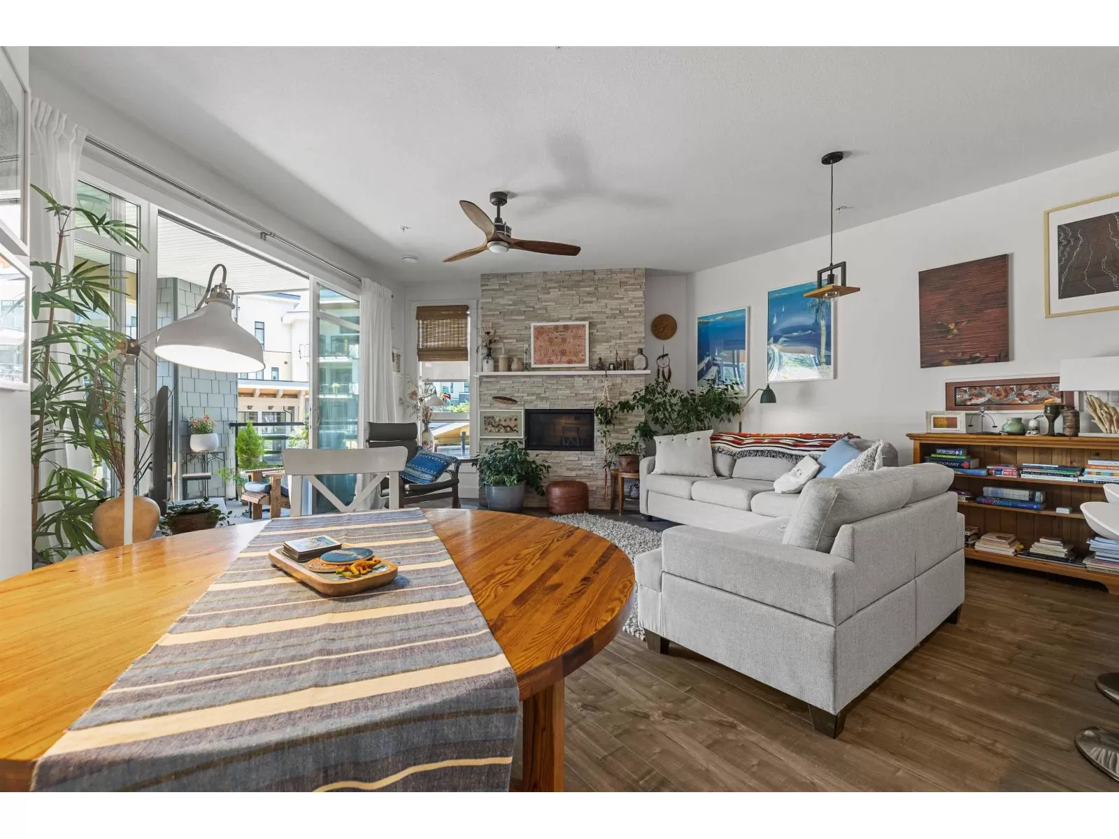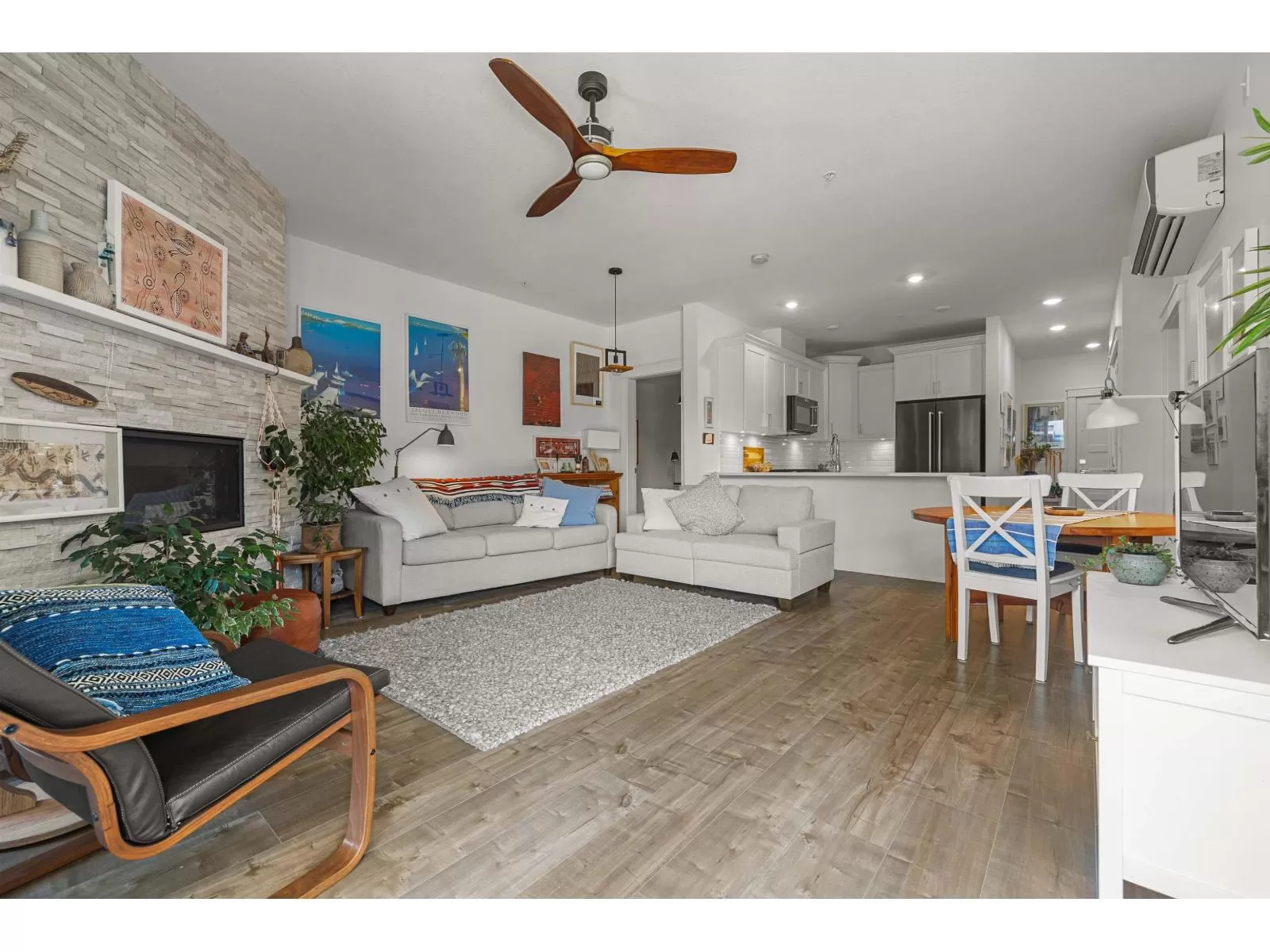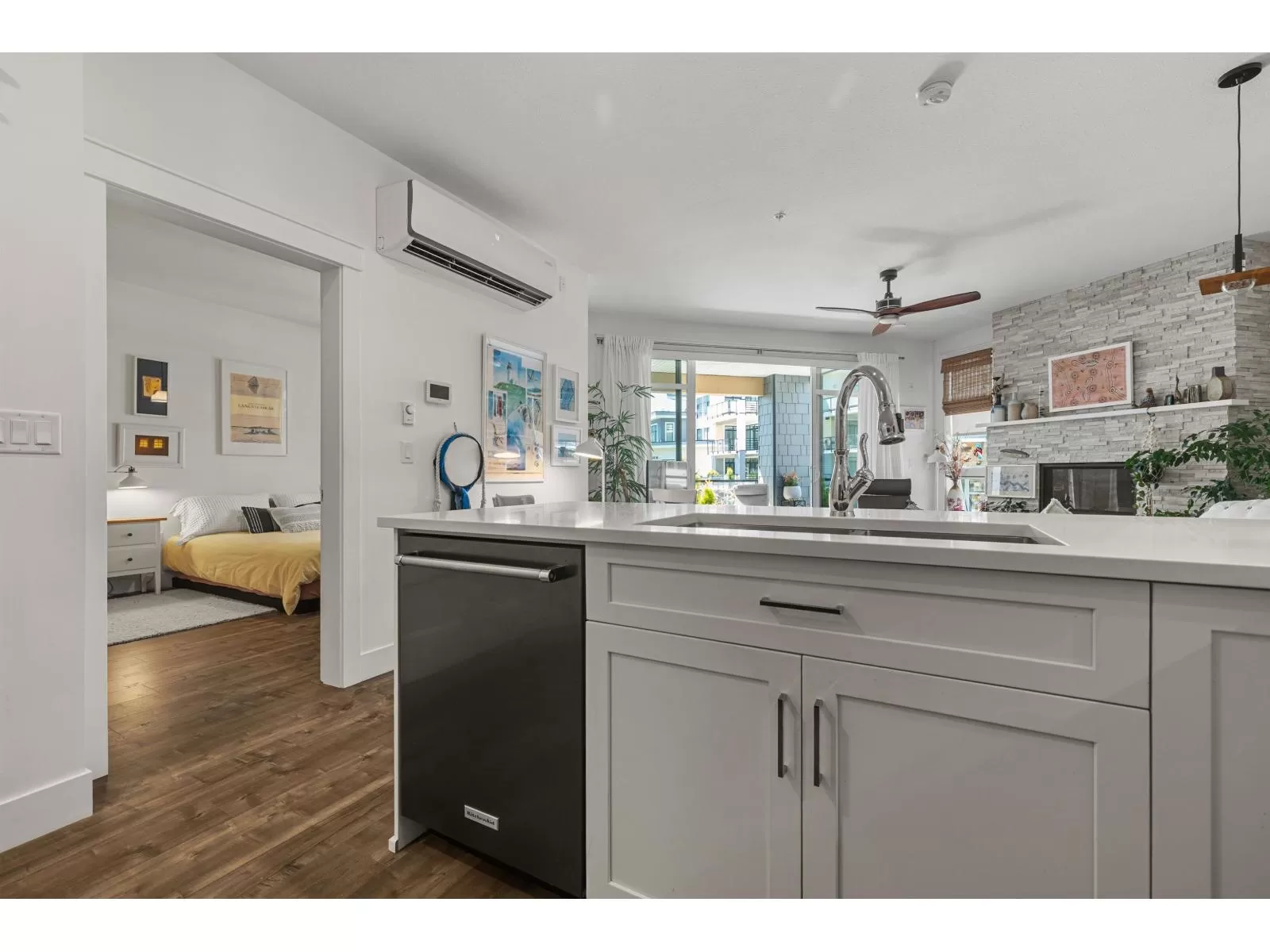 Flooded w/natural light, southern exposure, gorgeous oversized deck highlighting the sweeping views & a short 3 min walk to the Vedder River, you do not want to miss this stunning 1 bed, 1.5 bath & DEN condo w/1,082 sq ft in the coveted Rivers Edge neighborhood. Stunning finishes, airy feel, full laundry room, expansive kitchen, quartz countertops, black Kitchen Aid s/s appliances, gas stove, A/C, gas f/p, dining area & spacious living room taking advantage of the views. Enjoy easy living in this prime neighborhood where you can enjoy evening walks plus proximity to Garrison for shopping, restaurants & groceries. Pet friendly w/no size restrictions for dogs, low monthly strata fee, secured underground parking, visitor parking & storage locker; make this stunning condo your new home! (id:27476)