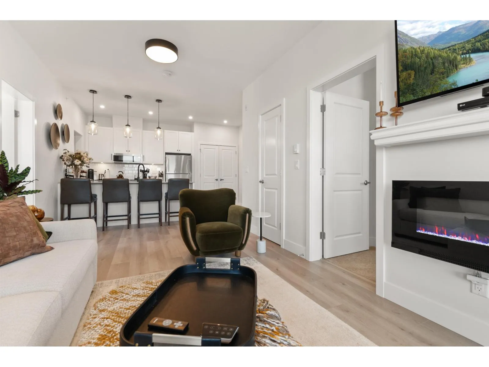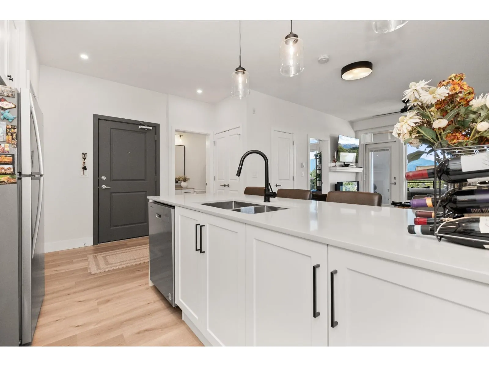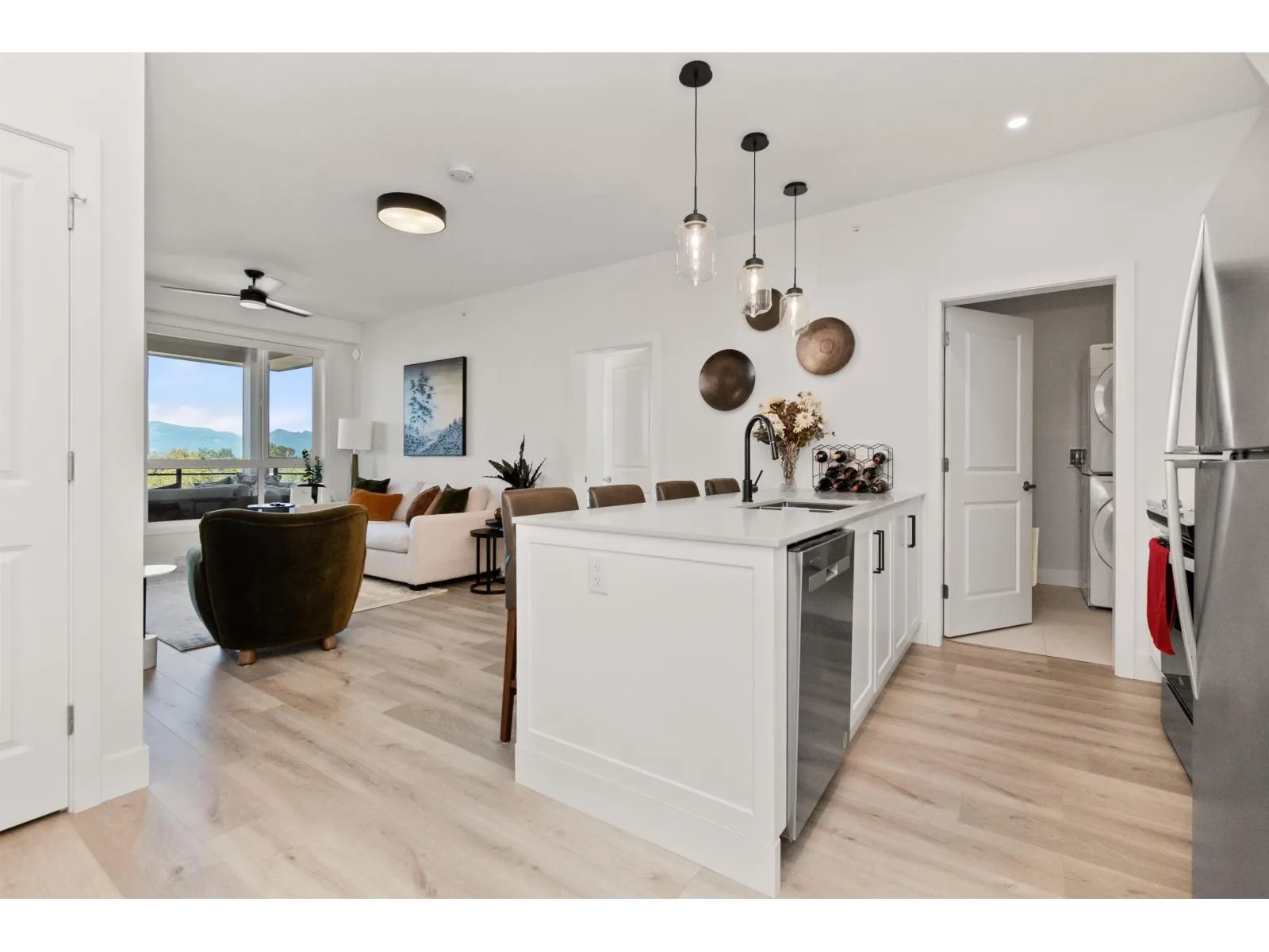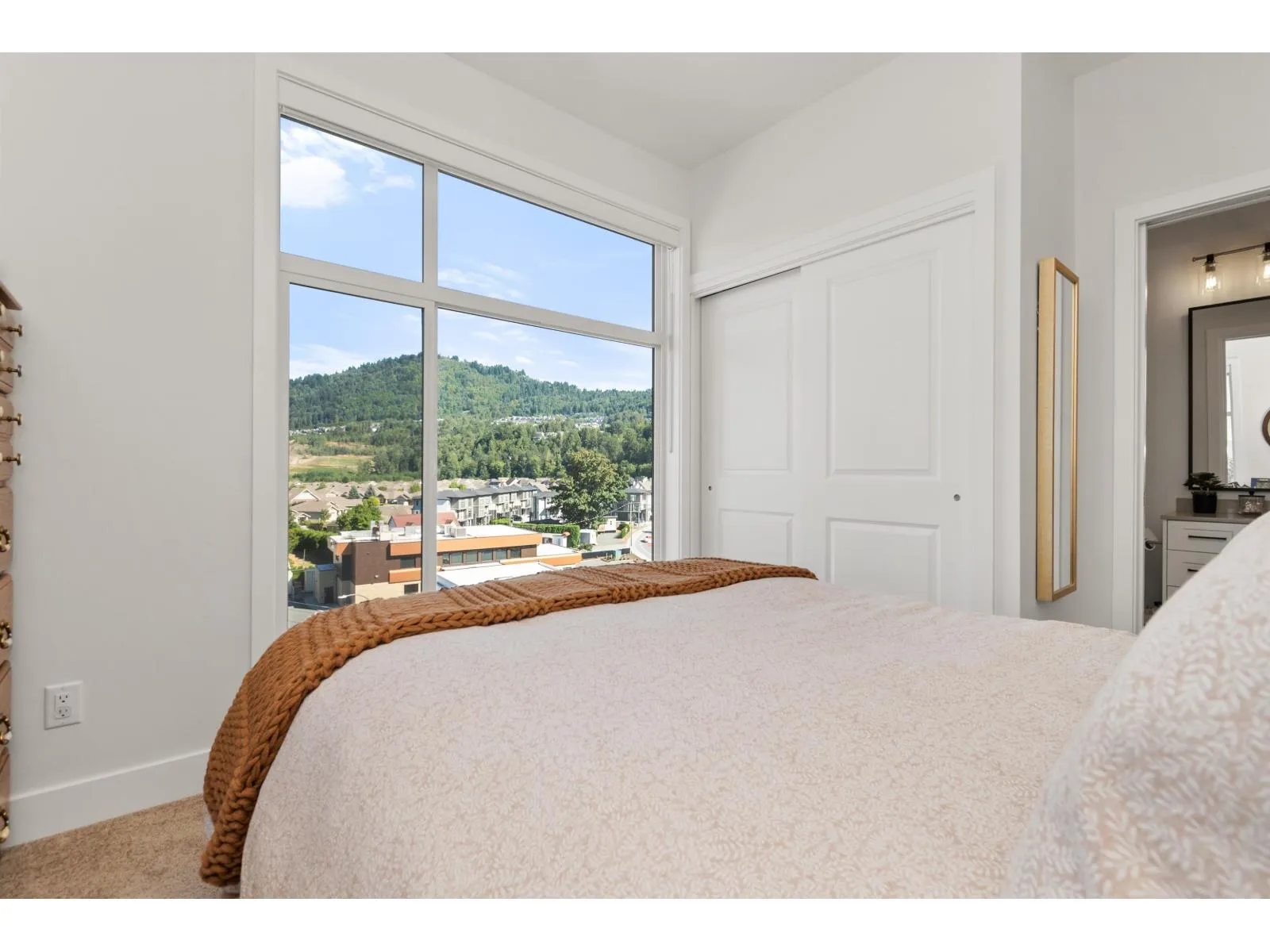 Experience luxurious living in this stunning 1 year old top-floor corner penthouse condo in "The Yearling" at the Ironhorse development. This 2-bedroom, 2-bathroom home boasts high ceilings and an expansive private covered deck with breathtaking mountain views. Modern amenities include stainless steel appliances, stylish tile and laminate flooring, quartz countertops, and an open, airy layout. Enjoy the convenience of 1 underground parking stall and a spacious storage locker. Located in the desirable Sardis area, close to shopping, schools, and parks for kids. Don't miss this incredible opportunity to own a beautiful, move-in-ready penthouse. 2 pets allowed. Dogs or Cats. No Size Restriction. * PREC - Personal Real Estate Corporation (id:27476)