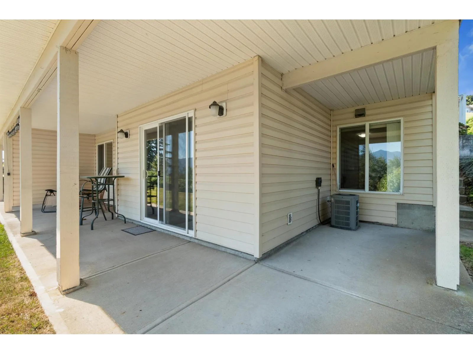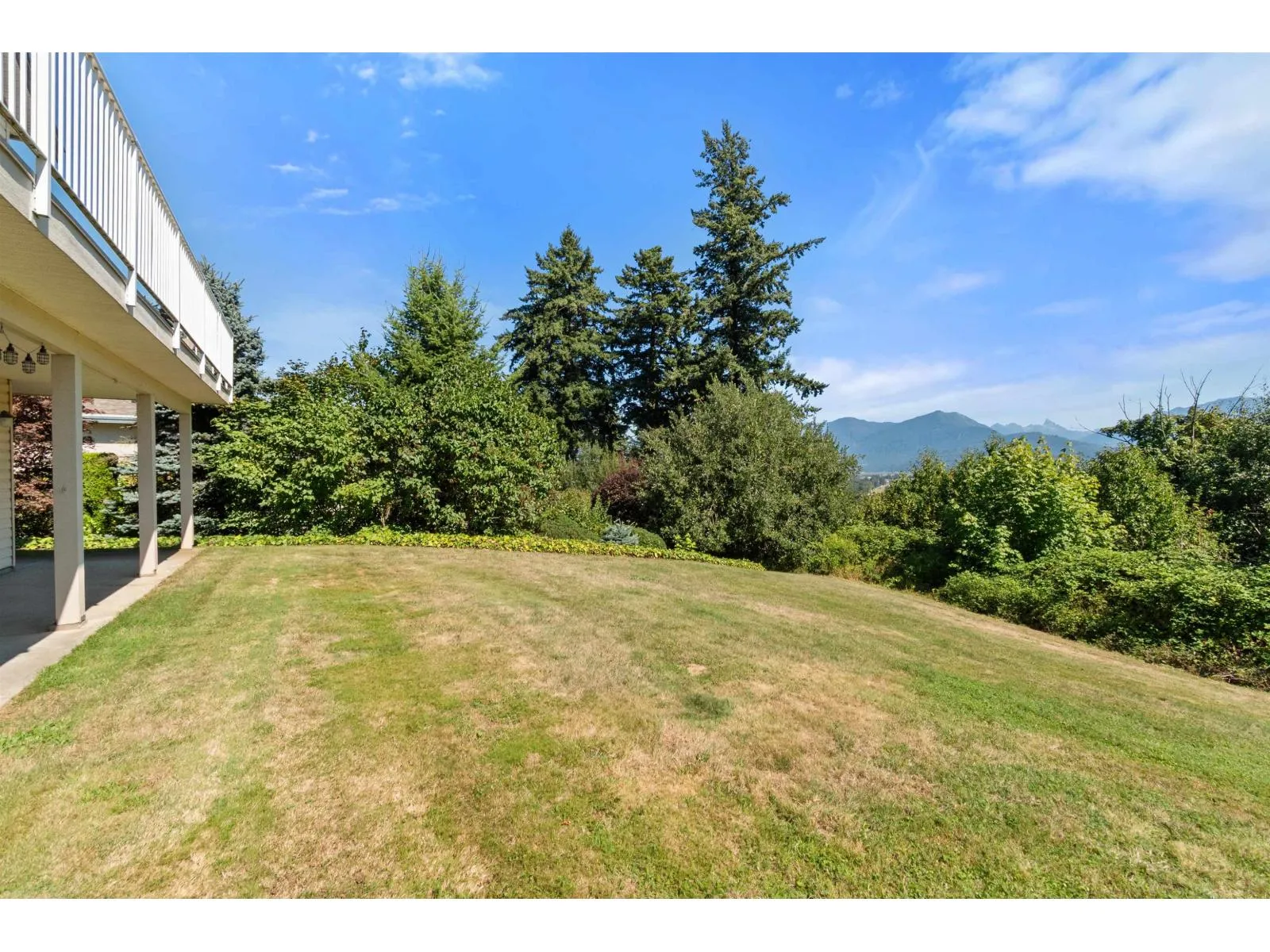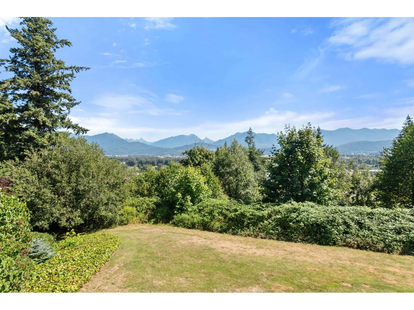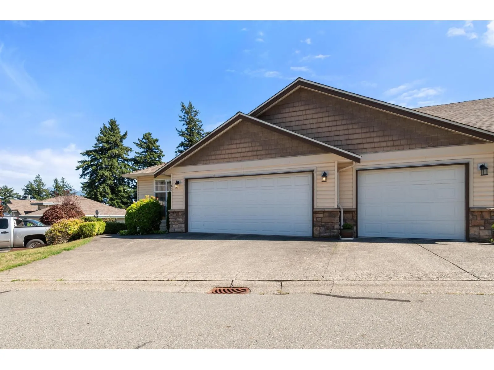 Unparalleled valley views, backing onto treed greenspace, and it is an end unit! This 3-bedroom rancher with a walk-out basement is in one of the best locations on Chilliwack Mountain. Bright and welcoming with large windows, a level entry main floor, well-appointed kitchen that flows into the eating area and south-facing living room with 11' ceilings and stunning views. The main floor also includes a spacious primary bedroom with 3-piece ensuite, plus a second bedroom/den. Downstairs offers a large rec room, third bedroom and bath, plus a finished bunker under the garage, ideal for hobby room or workshop. Enjoy two private decks with unobstructed views, a double garage, and no neighbor's behind. A rare opportunity in a peaceful, sought-after setting! RV parking is available! (id:27476)