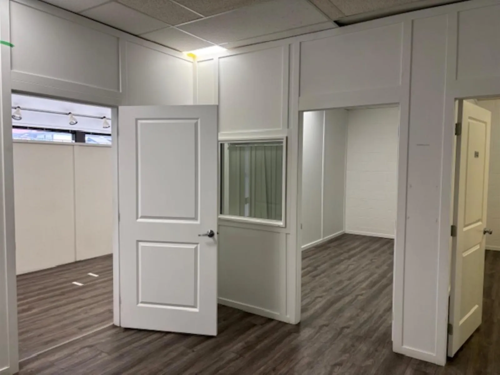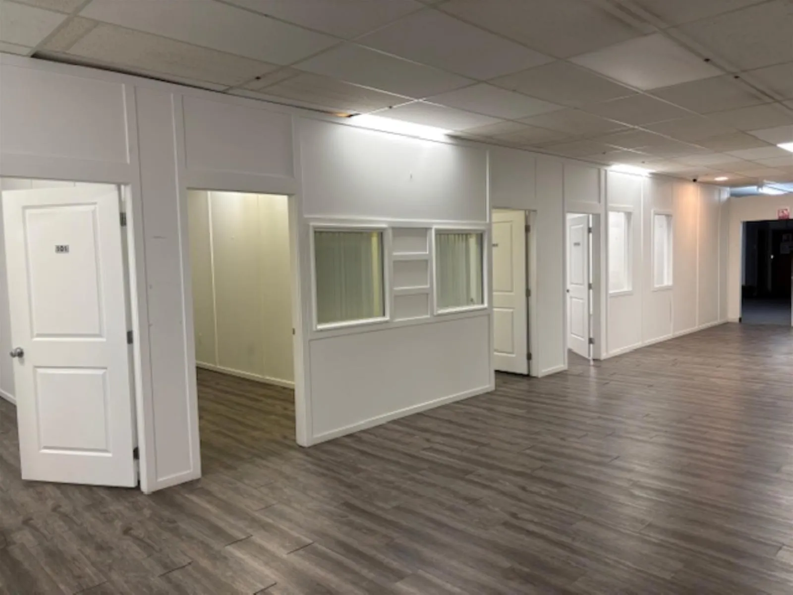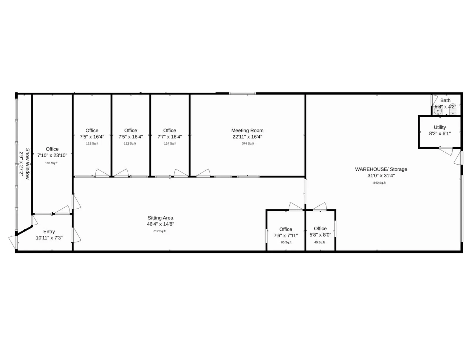 Fully improved unit, demised into six offices, a reception/sitting area, and 840 sq. ft. of warehouse space. Commercially zoned building permitting a wide range of uses, including: Sale of antiques and second-hand goods, gifts and souvenirs, groceries, and pharmacy items; hardware; sale or service of appliances and household furnishings; adult entertainment facility; Return-It depot; Financial institution; Indoor recreation facility; Medical clinic; Office use; Pawnbroker; Payday loan store; Printing and publishing. (id:27476)