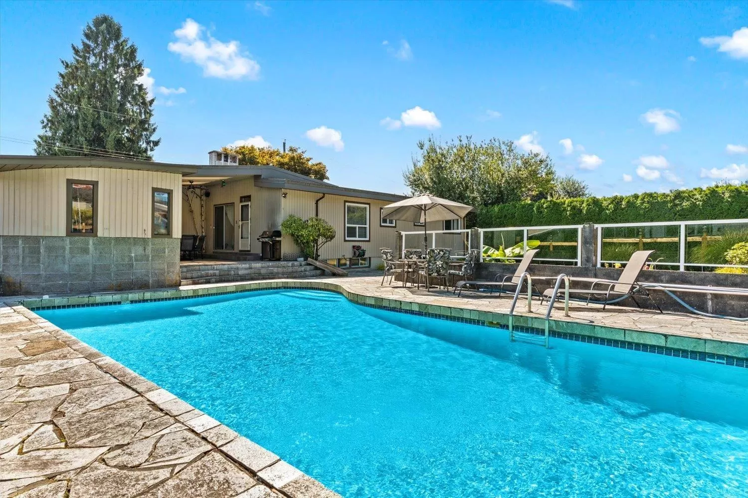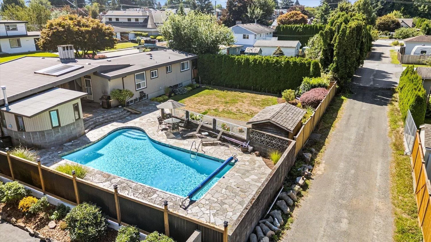 CUSTOM blend of upgrades & HISTORIC CHARM make this 4-bed, 2-bath rancher w/ finished basement a rare find! Welcome inside & discover a bright main floor featuring vaulted ceilings in the living room. UPDATED KITCHEN features quartz counters, quality cabinetry, S/S appliances,w/ eating nook separate from the dining room. The main floor offers 3 generously sized bedrooms & a beautifully renovated bathroom.The basement offers versatility w/ a large family room, spacious rec room, a 4th bedroom & 2nd bath. The standout feature of the lower level is the brick wall sourced from the old post office. Live the good life, hosting family & friends on this large 11,108 sqft lot w/ BEAUTIFUL INGROUND POOL plus a lovely grassy area! Lane access, RV parking & walking distance to all levels of schools! (id:27476)