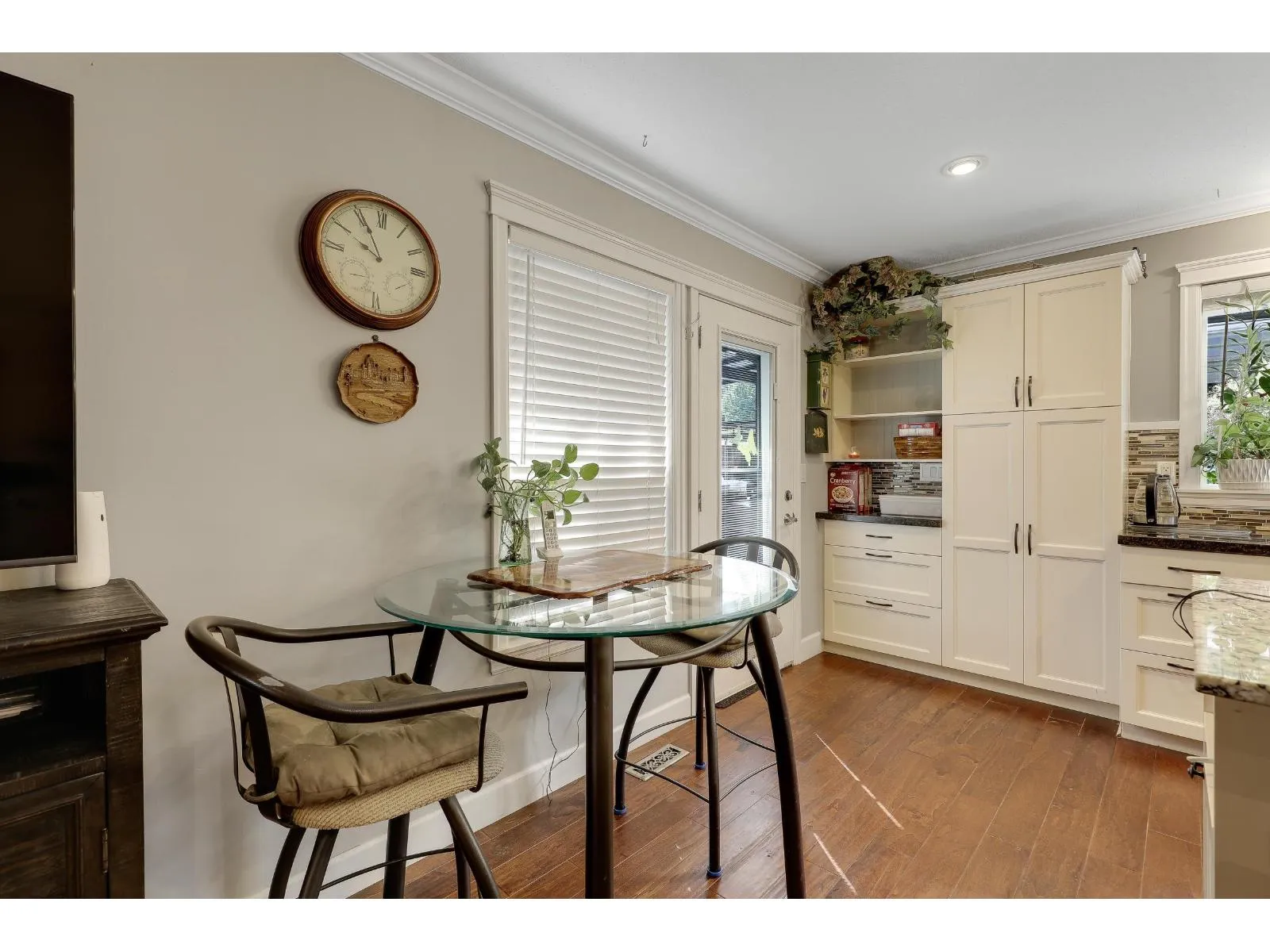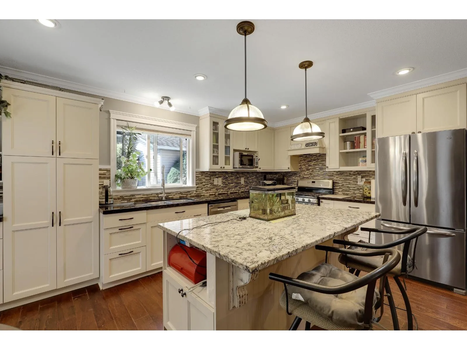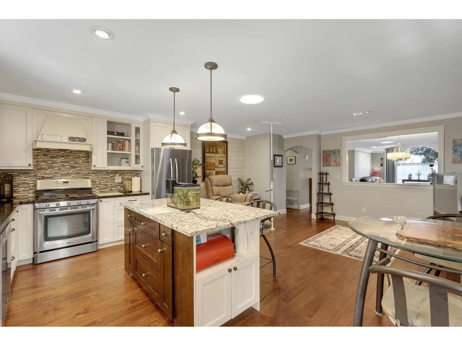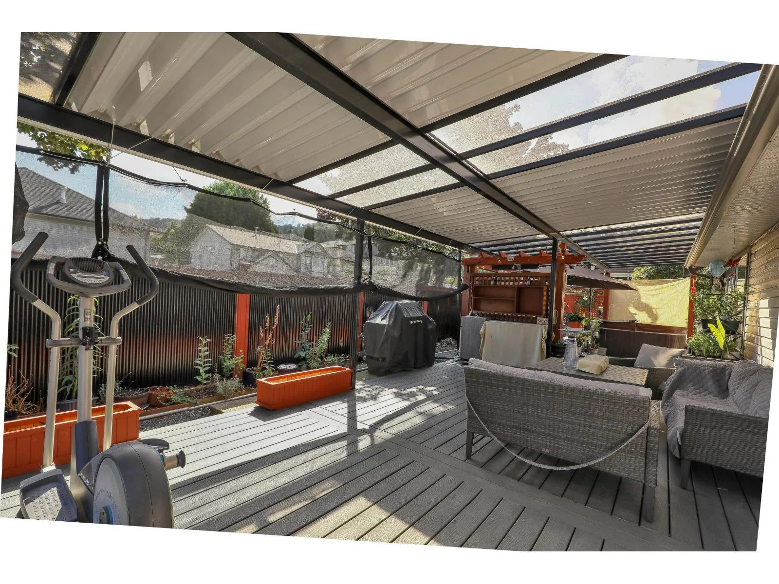 RENOVATED Ranch-style house on freehold 8,320 sq ft lot with RV PARKING back access & oversize detached workshop. Extensive upgrades in perfect layout for relax or kids to play: designer kitchen cabinets, granite counters, engineered hardwood flooring, "Ësafe step' walk-in tub in bathroom, new water pipes; PRIVATE BACK YARD: new metal fence + new METAL roof in year 2024 w/transferable warranty; a massive covered patio, full "Duradeck" surrounds and a hot tub, garden beds beside an oversize detached workshop-for hobbies, storage, or mortgage helper. The zoning allows 2nd kitchen (existing plumbing, a separate entrance available). This home has great flexibility and can easily be converted to accommodate an extra bedroom, as well as be wheelchair accessible both indoors and out. (id:27476)