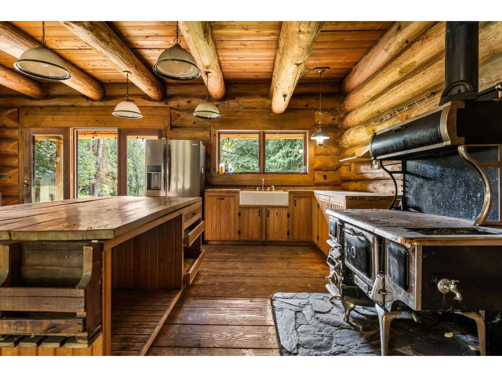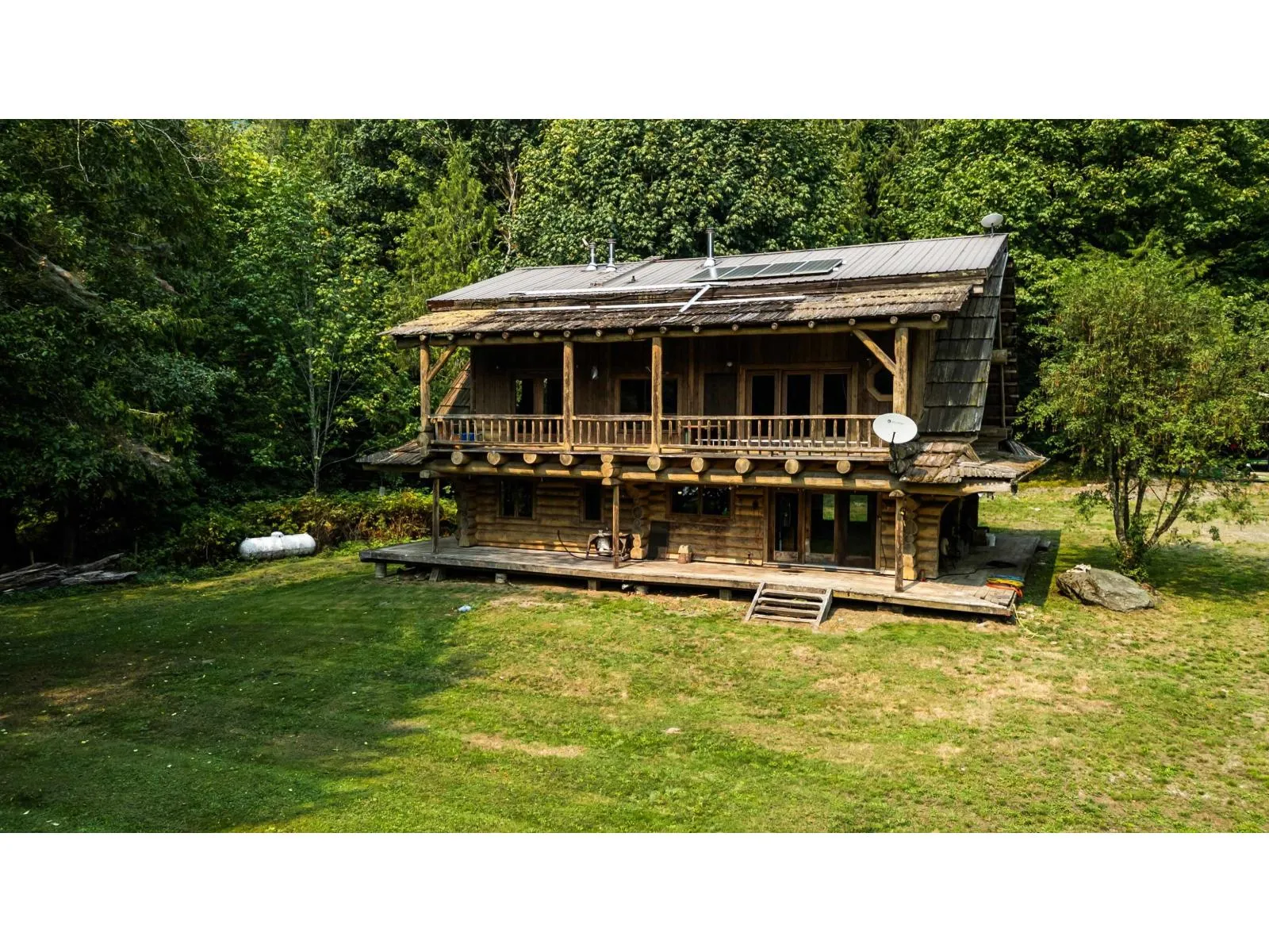 ONE of a KIND PROPERTY! 76 Acres Located up Chilliwack Lk road across the river from Fish hatchery. Custom Built log home built in 2000 is 2333sqft, Main floor open concept kitchen, living room and dining room w/ ceilings open to above. Laundry & bed w/ full bath Up has 3 more beds, primary suite w/ ensuite large deck looking over pastures to the river and stunning mountain views! Multipul Out buildings to include barns, 7 Small rustic cabins, C-can Structure w/ 20' trusses for dry parking. The large pastures in the front are fenced and ready for animals. The large pastures in the front are fenced and ready for animals. The property is gated and very private. Hydro is supplied by your own upgraded Hydro Electric dam with Generator and new batteries. Call Today!! (id:27476)