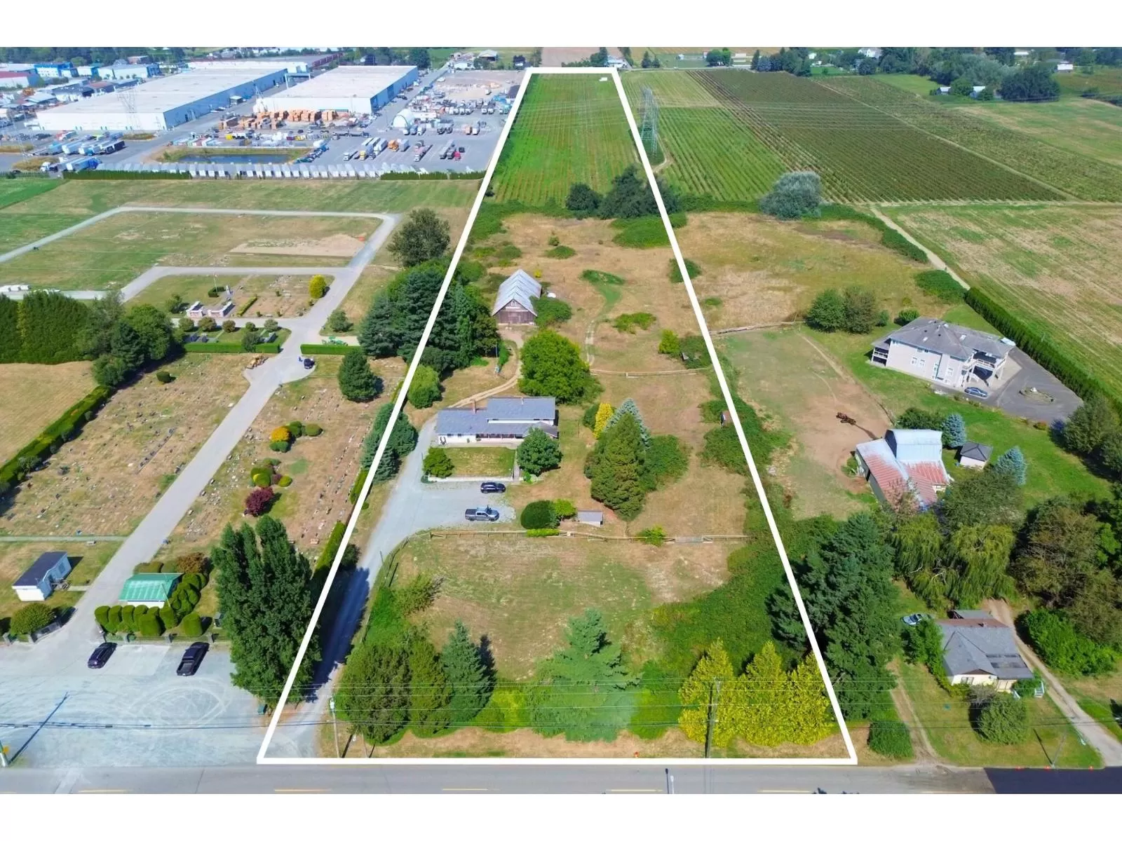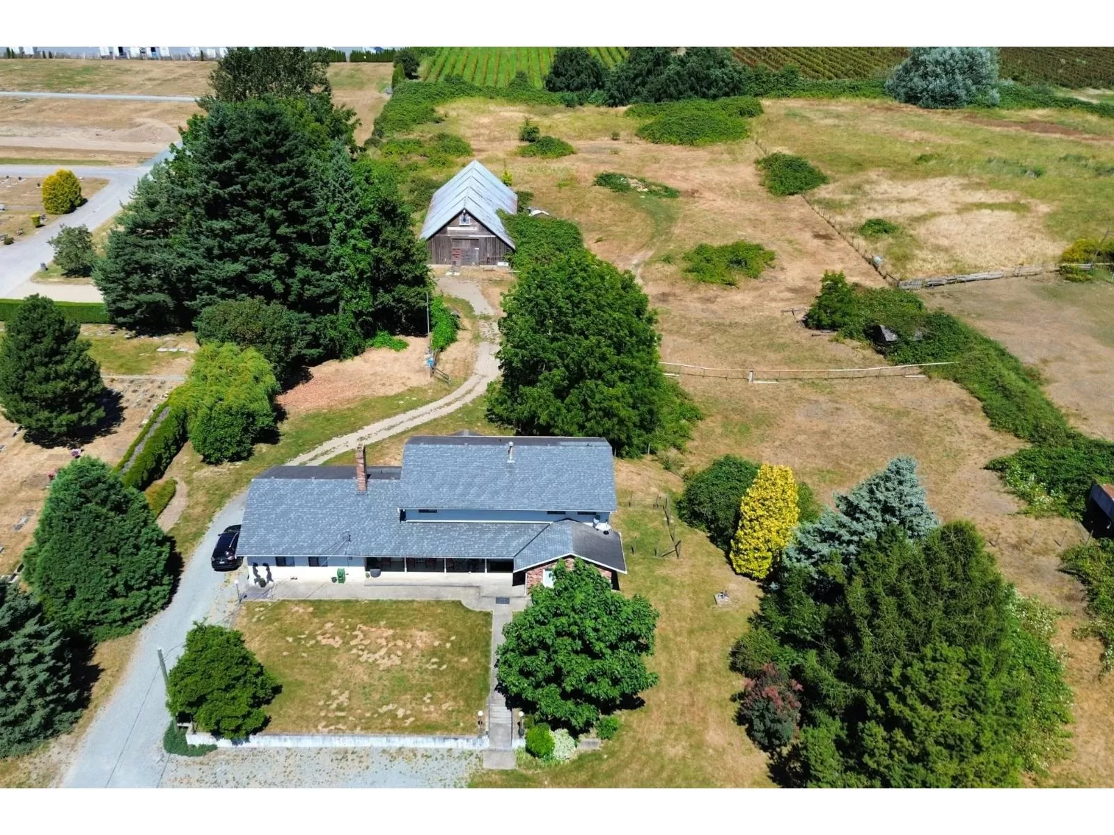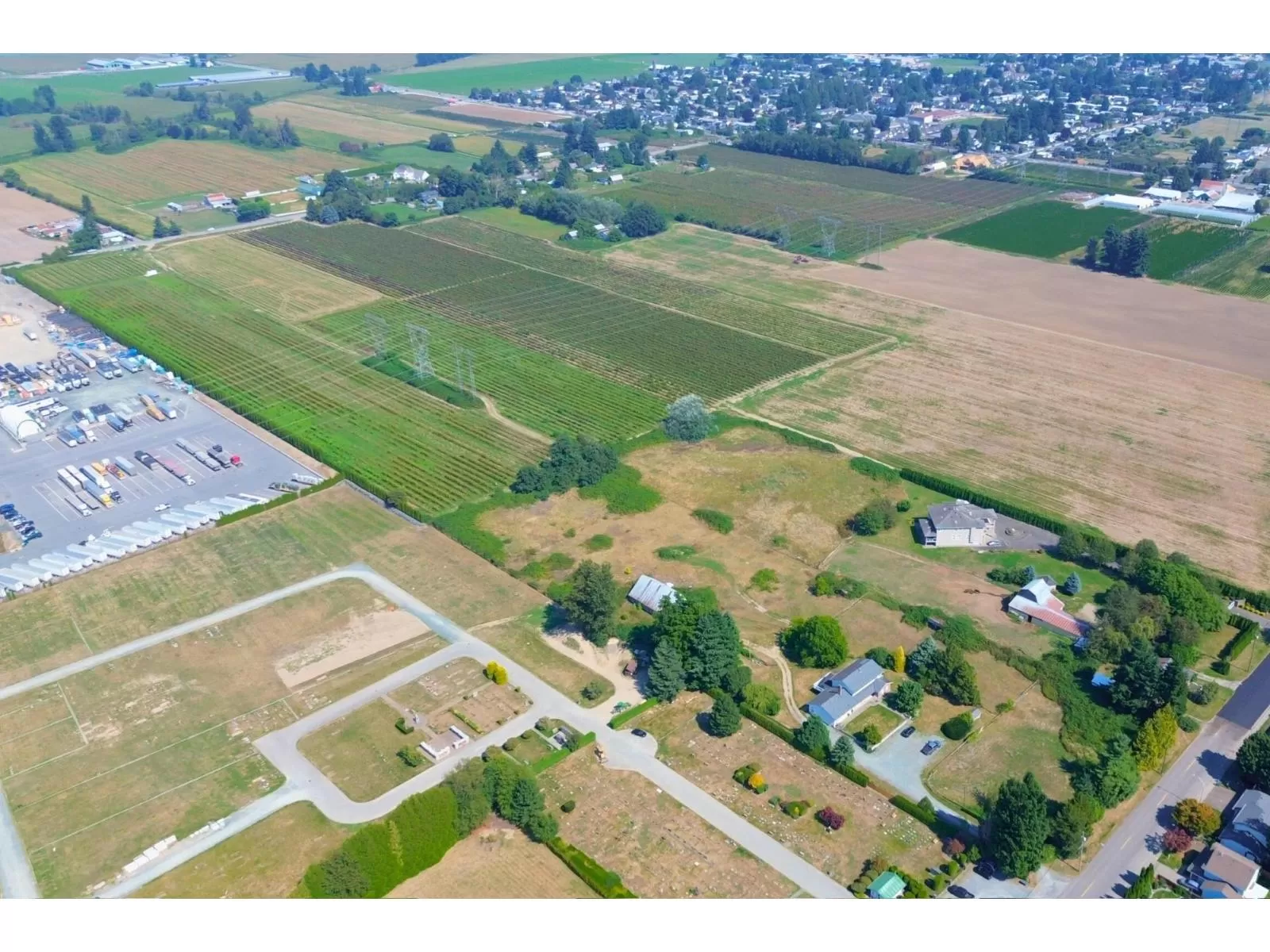 14.64 acres with dual road frontage and a large well-built custom home. Dual frontage offers separate access for agricultural use along the busy road side, while you get to live peacefully on the quiet side. Services available on both ends. House is well kept w/ a great floorplan and unfinished basement w/ separate access for suite potential. Many updates including new flooring & fresh paint through majority of the house, brand new furnace, fridge, & washer. Primary suite on main, with 3 bedrooms upstairs - each with their own half bath ensuite! New roof in 2020. Secluded and peaceful thanks to mature trees surrounding the property. Outside find a 40x80' barn and multiple pastures for your animals. Northern 10 acres are leased to farmer and currently planted w/ raspberries. Great long term investment due to neighbouring industrial properties - don't miss out! (id:27476)