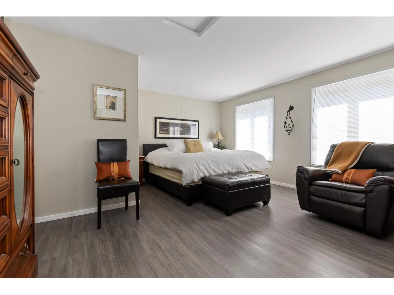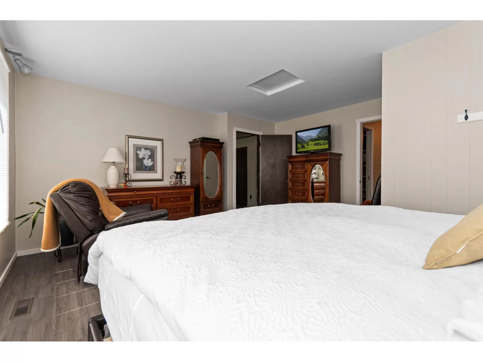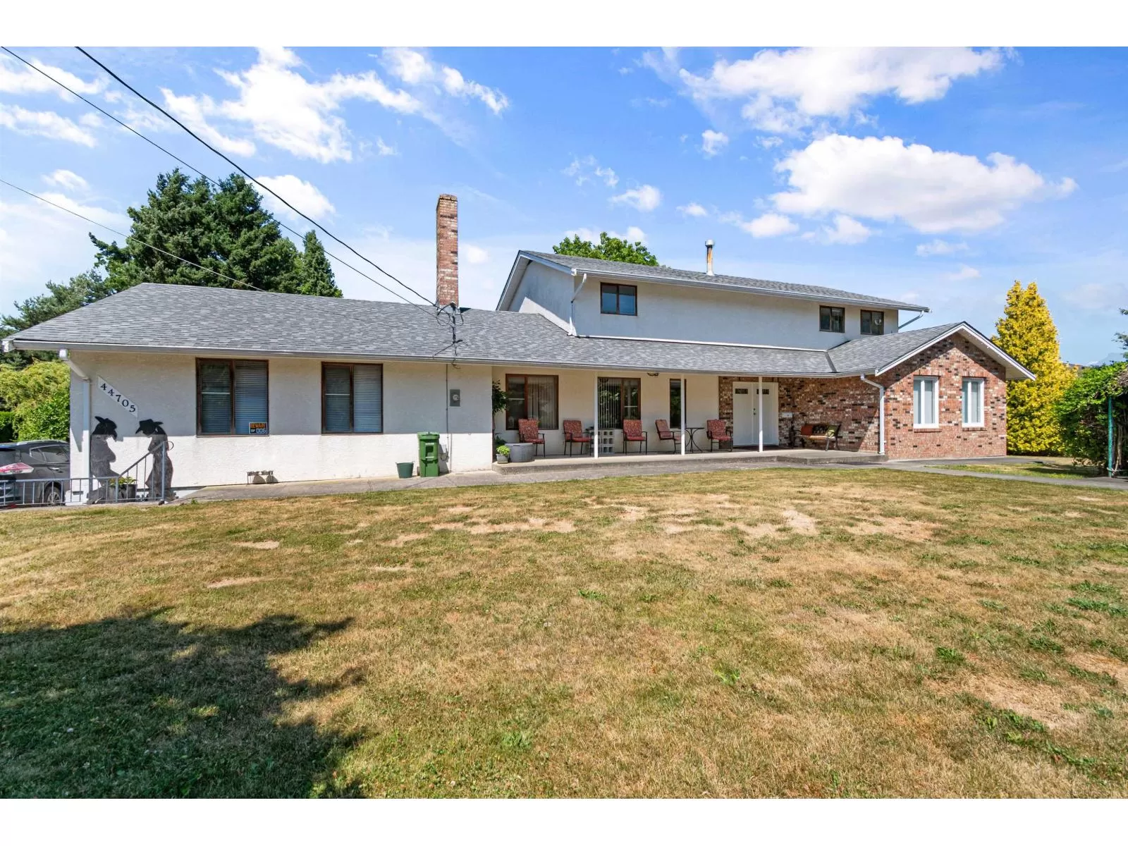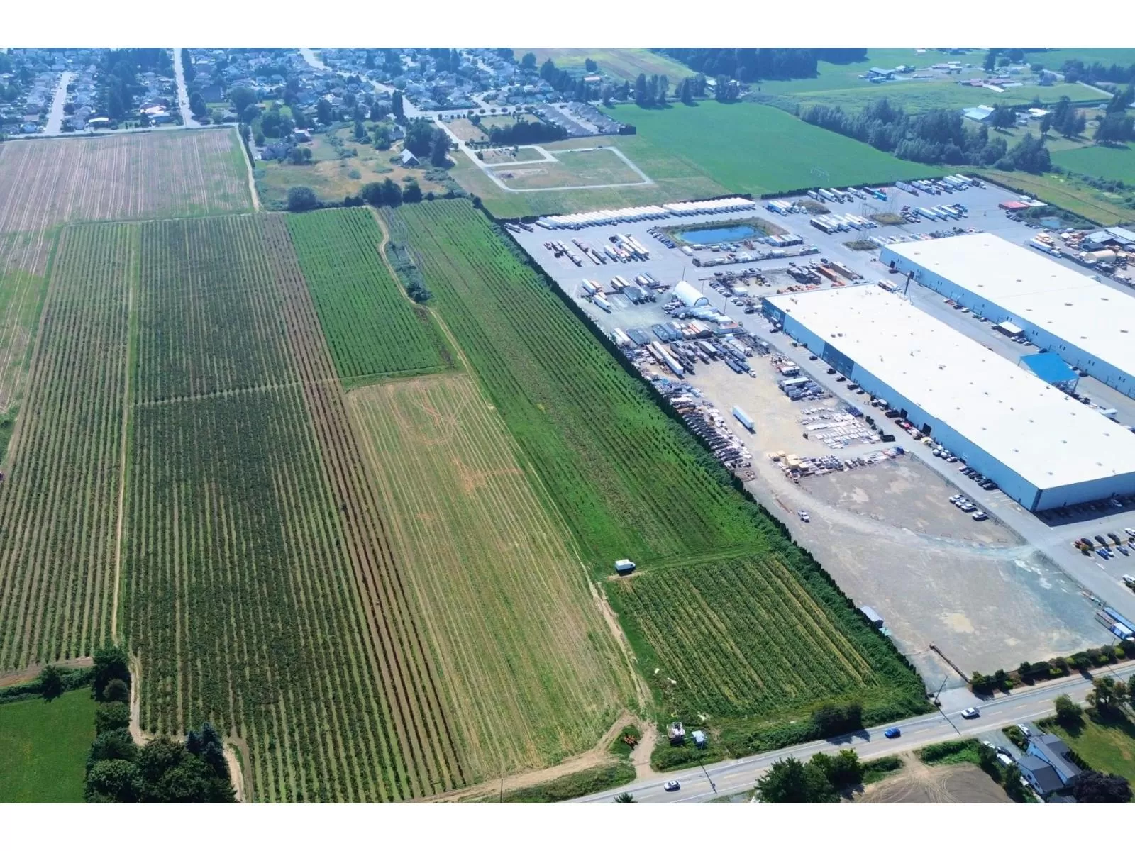 14.64 acres with dual road frontage and a large well-built custom home. Dual frontage offers separate access for agricultural use along the busy road side, while you get to live peacefully on the quiet side. Services available on both ends. House is well kept w/ a great floorplan and unfinished basement w/ separate access for suite potential. Many updates including new flooring & fresh paint through majority of the house, brand new furnace, fridge, & washer. Primary suite on main, with 3 bedrooms upstairs - each with their own half bath ensuite! New roof in 2020. Secluded and peaceful thanks to mature trees surrounding the property. Outside find a 40x80' barn and multiple pastures for your animals. Northern 10 acres are leased to farmer and currently planted w/ raspberries. Great long term investment due to neighbouring industrial properties - don't miss out! (id:27476)