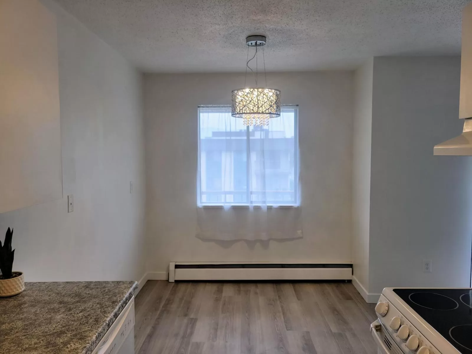 This is THE ONE!!! You won't find a better turn-key Investment or First-time Home Buyer property out there! You will LOVE the flow of the unique layout from the moment you walk into this TOP-FLOOR, CORNER UNIT Penthouse! Features 2 Large bedrooms, HUGE Living rm & Dining space, a nice-sized Patio w/ Mountain Views, & a bonus big Storage room for ALL your treasures (or junk, ha!). Almost everything is NEW, including: Floors, Baseboards, Paint, Stunning Lighting Fixtures, & More. Located in the most PRIME & CENTRAL location w/ transit RIGHT outside, & walking distance to the swanky District 1881, the Hospital, Schools, Recreation, Parks, & MORE! Comes with secure underground parking, Rentals ARE allowed, & no Age Restrictions. Clean & move-in ready, just waiting to meet its' new owners! (id:27476)