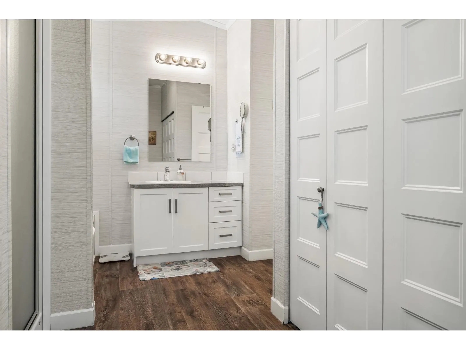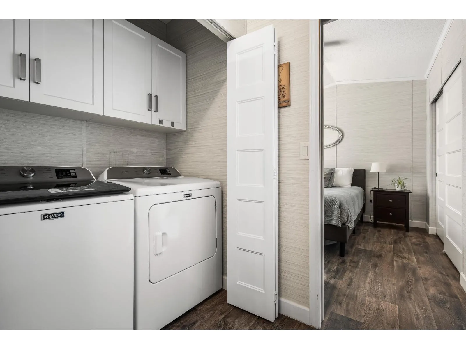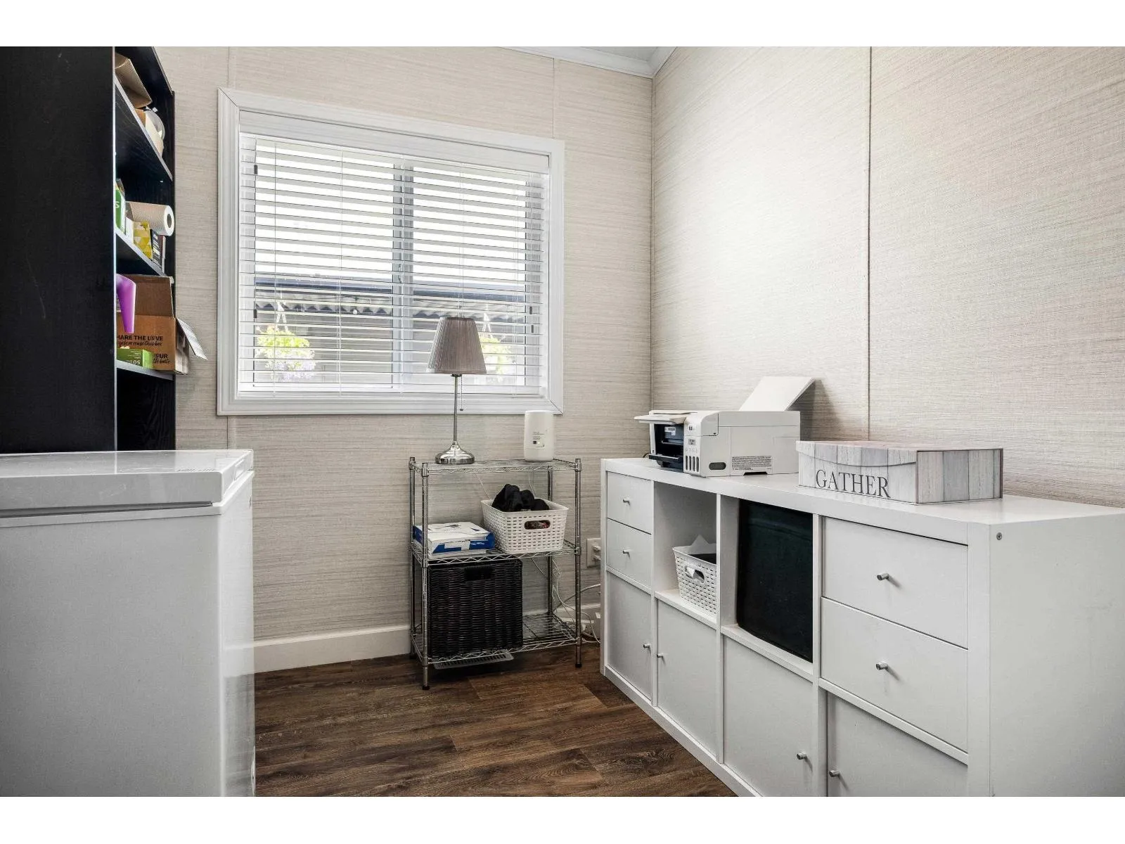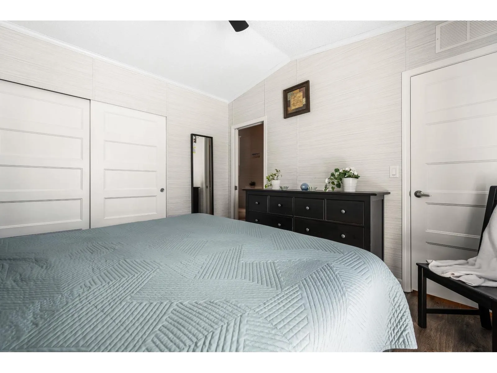 BEAUTIFUL home, shows 10/10! Greeted with a LARGE COVERED deck inviting you for all year entertaining. Inside, you will be invited by a stunning white kitchen w/ maple cabinetry, S/S appliances, GAS stove, NEW dishwasher, OVERSIZED w/d; BACKSPLASH, lam flooring, A/C, PHANTOM screen. The 2 bed, 1 full bath w/ SOAKER TUB is perfect for relaxing in; laundry rm is strategically located hidden in the bathrm. The vaulted ceiling creates a spacious & airy home; natural light coming in from all windows. A perfect place to call home while you never miss out on entertaining your guests w/ the OPEN CONCEPT. Outside, you have a SHED to store all your extra items. Small dog, no cats, landscaping done, affordable pad fee $550/month, beautiful 55+ park, furnace recently serviced. (id:27476)