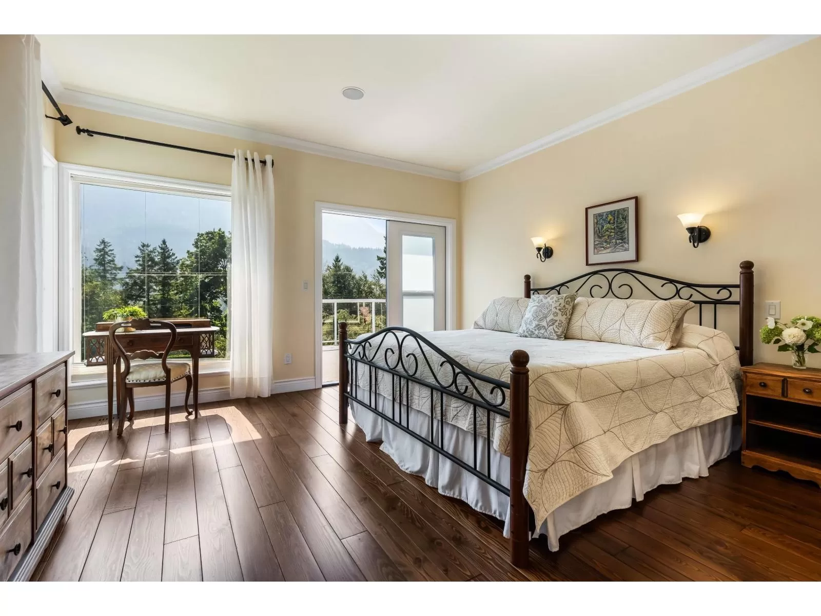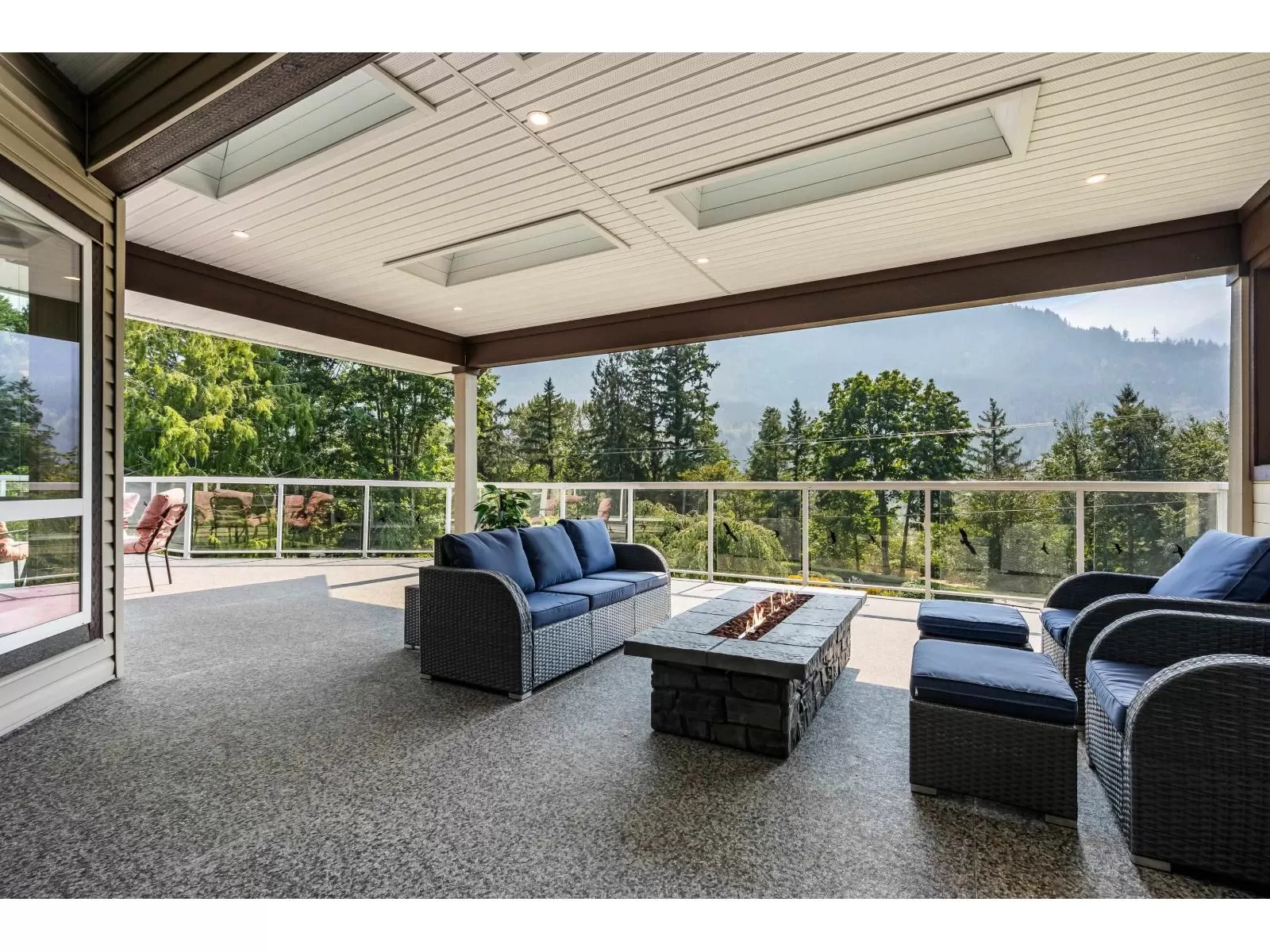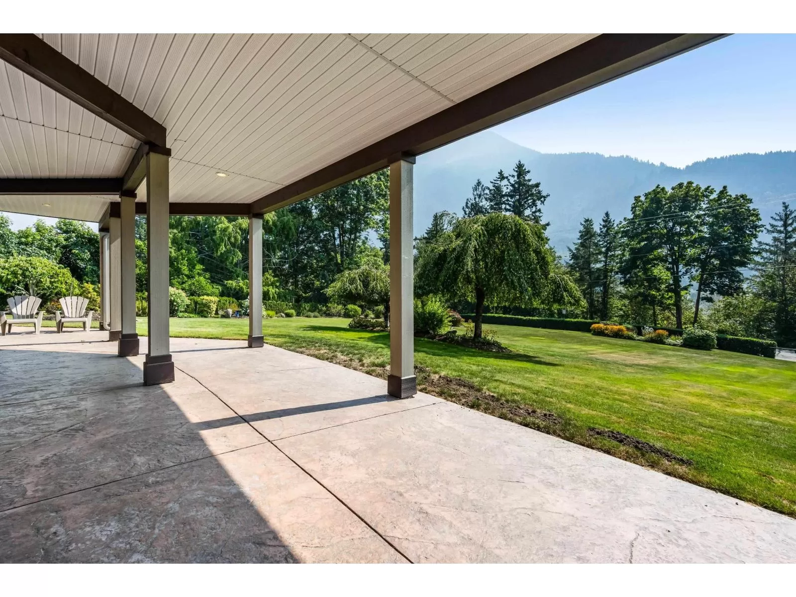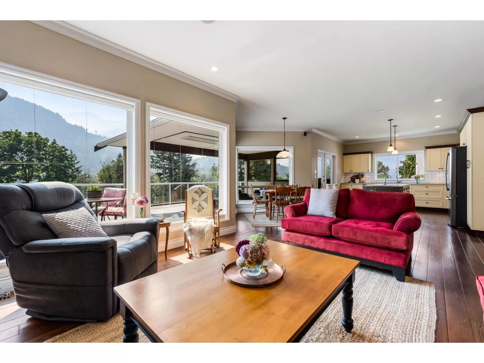 WILLIAMSBURG!.46-acre lot w/ custom RANCHER w/ WALKOUT BSMT that is the ultimate CAR LOVER'S DREAM. The main level boasts a 42' RV garage with 13' ceilings plus an attached double garage. Below, a double tandem garage with mechanics pit and hoist that is accessible off Edwards Rd"- offers unmatched functionality. Inside, discover rich hardwood floors, a chef's kitchen with two-tone cabinetry, upgraded quartz counters, and an expansive covered patio with breathtaking Chilliwack River Valley views. The bright master suite features patio access, a full ensuite, and walk-in closet. Built with no expense spared, this home blends refined living with the ultimate garage space. Geothermal HEAT/AC (2023 furnace), bi speakers, 200 amp service- you name it. Exquisite home & a serene peaceful setting! * PREC - Personal Real Estate Corporation (id:27476)