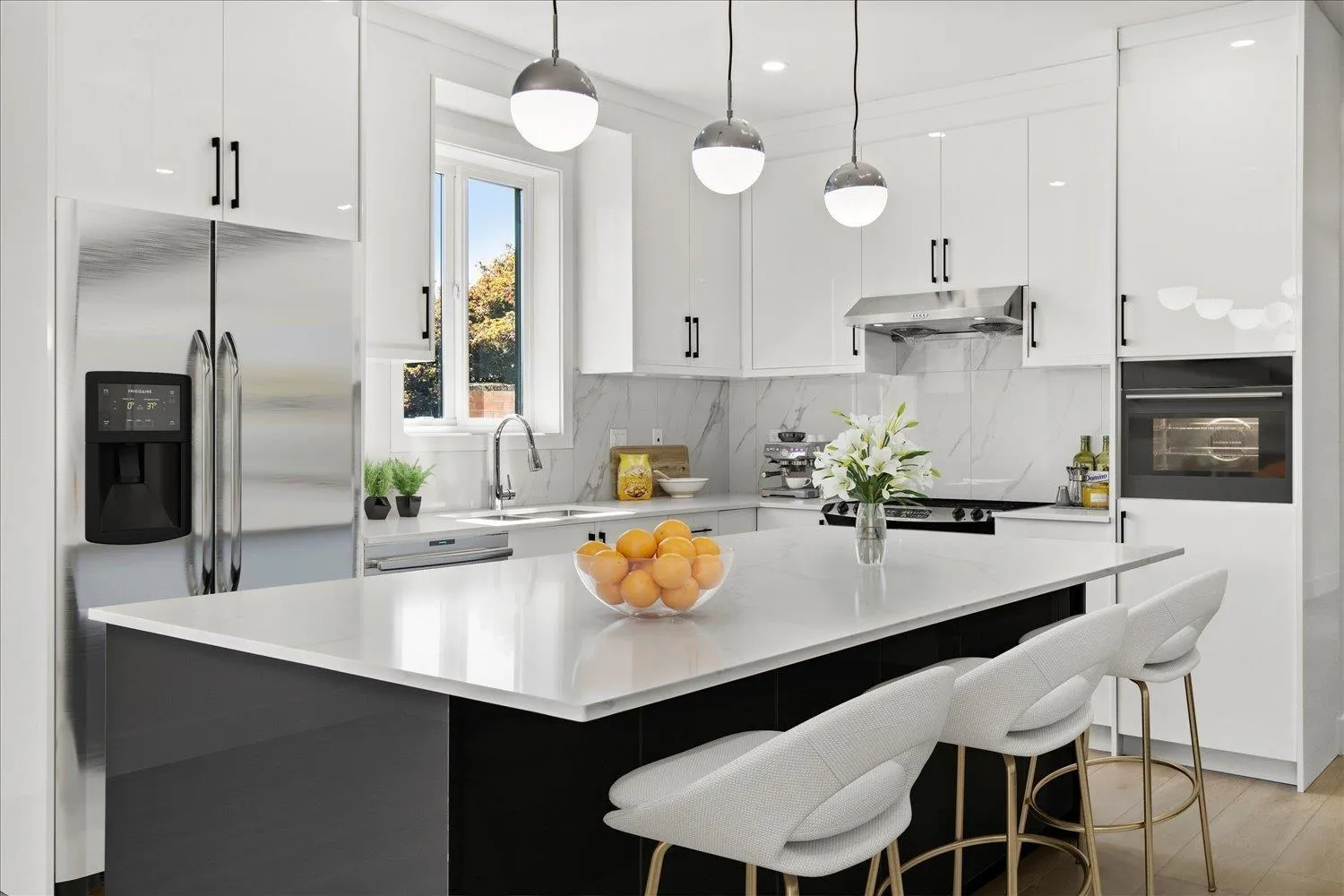 BEST PRICED new construction on the market! This brand-new 2024 build offers over 2,400 sq ft of modern living space, featuring 5 bedrooms and 3 full bathrooms. The upper level boasts an open-concept layout with a gourmet kitchen, quartz countertops, stainless steel appliances, a spacious living and dining area, a vaulted-ceiling primary bedroom with walk-in closet and 3-piece ensuite, plus two additional bedrooms and a fully equipped 4-piece main bathroom.The ground floor offers exceptional flexibility with a large rec room and wet bar"-perfect for entertaining"-plus a separate-entry 2-bedroom suite complete with its own full bathroom, ideal for extended family or rental income. A double-car garage, large driveway, and rear lane access provide parking for up to 6 vehicles. * PREC - Personal Real Estate Corporation (id:27476)