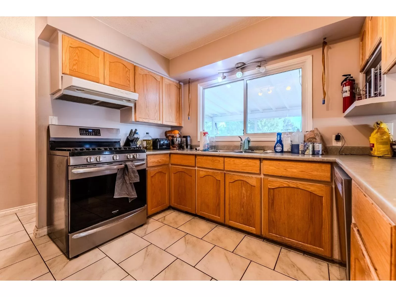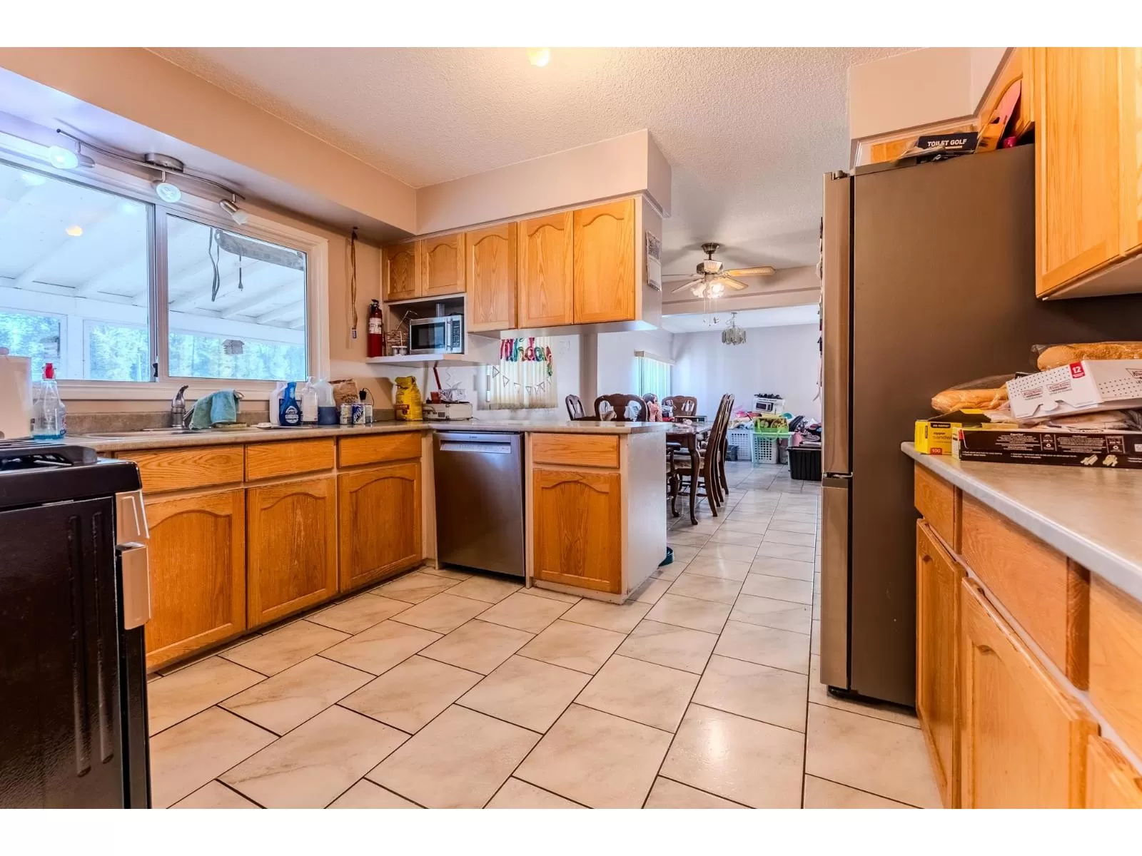Please excuse the busy household"-this home is full of life! Look past the day-to-day clutter and you'll see the true potential and value offered here. SPACIOUS 6 BED / 3 BATH HOME on a SOUTH-FACING 10,488 sq ft lot! This property offers plenty of space inside and out, with great potential for families or investors. The main level features 3 bedrooms, 2 bathrooms, a large kitchen with adjoining dining area, and an enclosed patio to enjoy year-round. The basement includes 3 bedrooms, a 3-piece bath, and vinyl plank flooring. Metal roof (2013), air conditioning, and ample parking add value. The fenced yard has fruit trees, a greenhouse, and room to create your outdoor vision. In-law suite can easily be added for the extra rental income. * PREC - Personal Real Estate Corporation (id:27476)