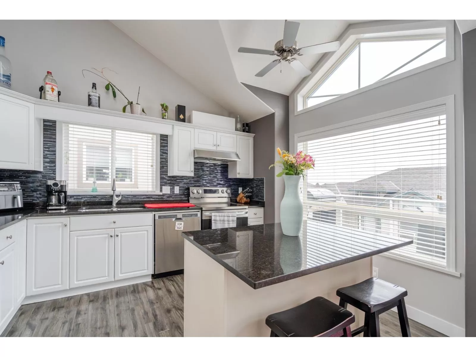 Wake up to breathtaking sunrises over Mt. Cheam from your private deck in Maple Hills "- a quiet, gated community nestled on the peaceful south side of Chilliwack Mountain. This beautifully designed 3 bed / 3 bath townhome offers over 2,500 sq.ft. of bright, spacious living with tranquil mountain and valley views.As a desirable end-unit, this home enjoys extra privacy, added windows for even more natural light, and enhanced outdoor space. Inside, you'll find soaring vaulted ceilings, a dramatic loft-style landing, and oversized windows that flood the main floor with sunshine. The open-concept living and dining area features a cozy double-sided gas fireplace and connects to a large, versatile kitchen "- perfect for entertaining, a reading nook, or a full-sized farmhouse table. (id:27476)