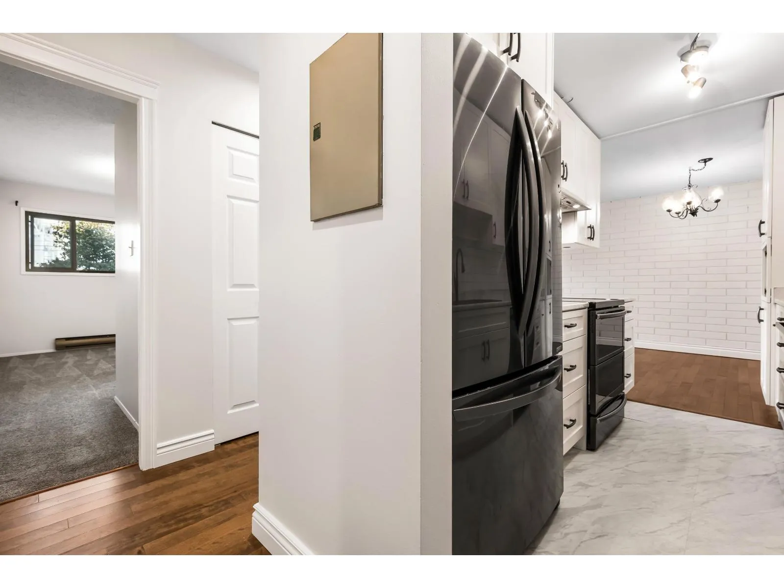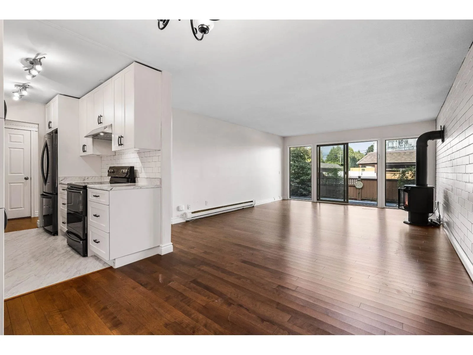 STUNNING RENOVATED 2 BEDROOM and 2 BATHROOM GROUND LEVEL with private entry. Enjoy those morning coffees and afternoon beverages with mountain views in your PRIVATE 400 SQ FT FENCED YARD/PATIO- amazing for pets and entertaining. Step inside to MODERN LIVING w/ a beautiful kitchen featuring NEWER SOFT CLOSE WHITE SHAKER CABINETS, sleek black appliances, and tiled backsplash. Lovely hardwood flooring, fresh paint, UPDATED GAS FIREPLACE for efficient heat, and IN SUITE LAUNDRY. 2 large bdrms including the primary suite w/ 2 pc ensuite and easy access to the patio! Covered parking for 1 vehicle, large storage locker in carport, & plenty of additional guest parking. TWO pets allowed, 18' at the shoulder. This incredible home is VACANT and ready for occupancy. Nothing to do but MOVE ON IN! * PREC - Personal Real Estate Corporation (id:27476)