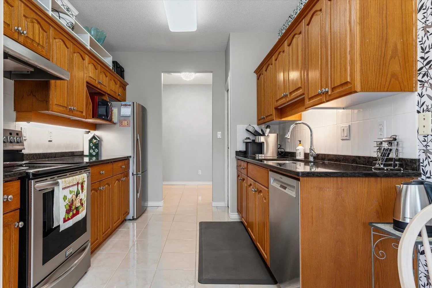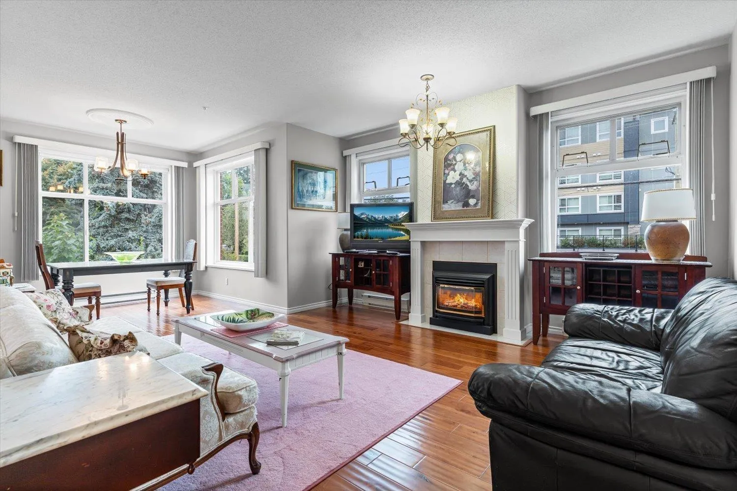 Welcome to The Devonshire! This beautifully updated 2-bed, 2-bath corner condo offers over 1,250 sq. ft. of stylish and comfortable living. Inside you'll find quartz countertops, hardwood and tile flooring, fresh lighting, new sinks, faucets, and toilets, plus stainless steel appliances including a premium Fisher & Paykel fridge. The spacious oak kitchen opens to a bright living area with 9' ceilings, a cozy gas fireplace, and access to your private balcony"-perfect for morning coffee or evening relaxation. The Devonshire is a well-maintained building offering secure parking, storage, a fitness room, guest suite, and more. Ideally located in central Chilliwack, you're just steps from shopping, restaurants, parks, and the vibrant District 1881. A rare opportunity to own a large, move-in ready condo in one of the city's most desirable communities"-perfect for downsizers, professionals, or anyone seeking a blend of comfort, style, and convenience! (id:27476)