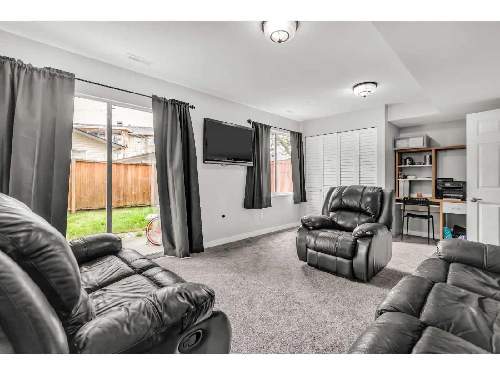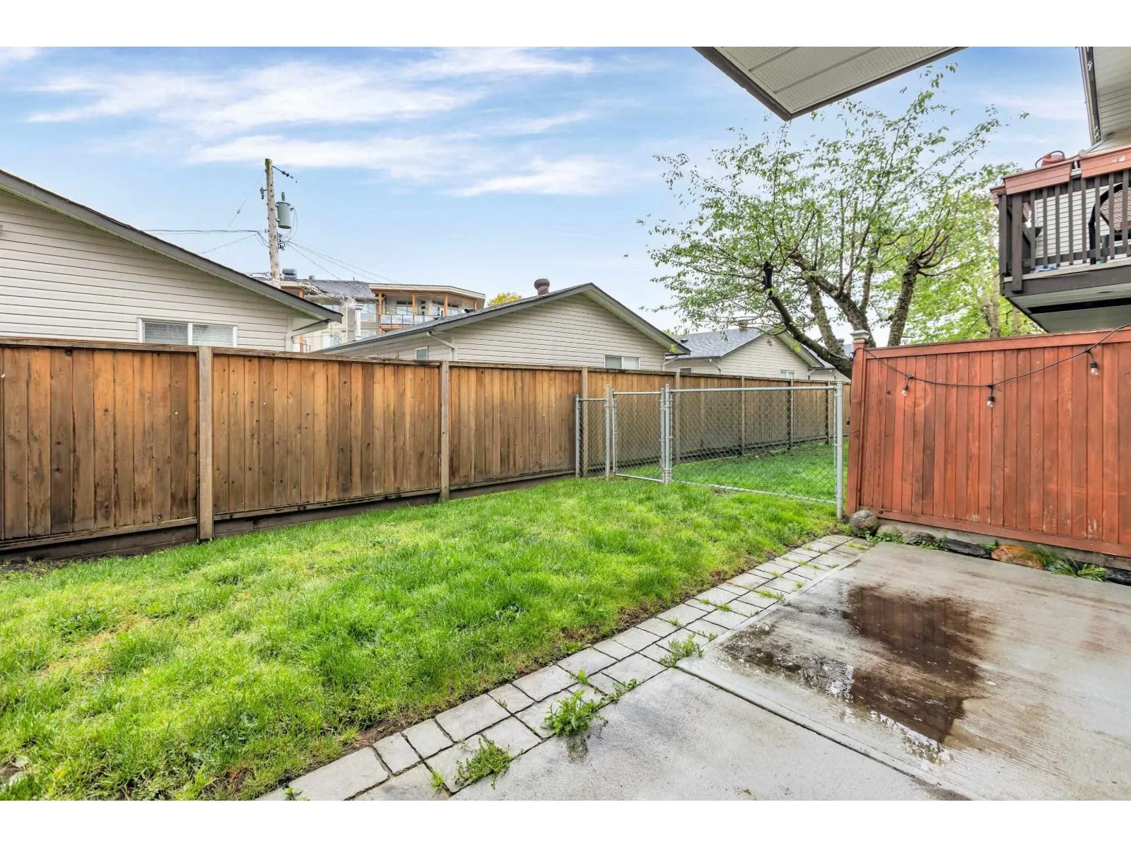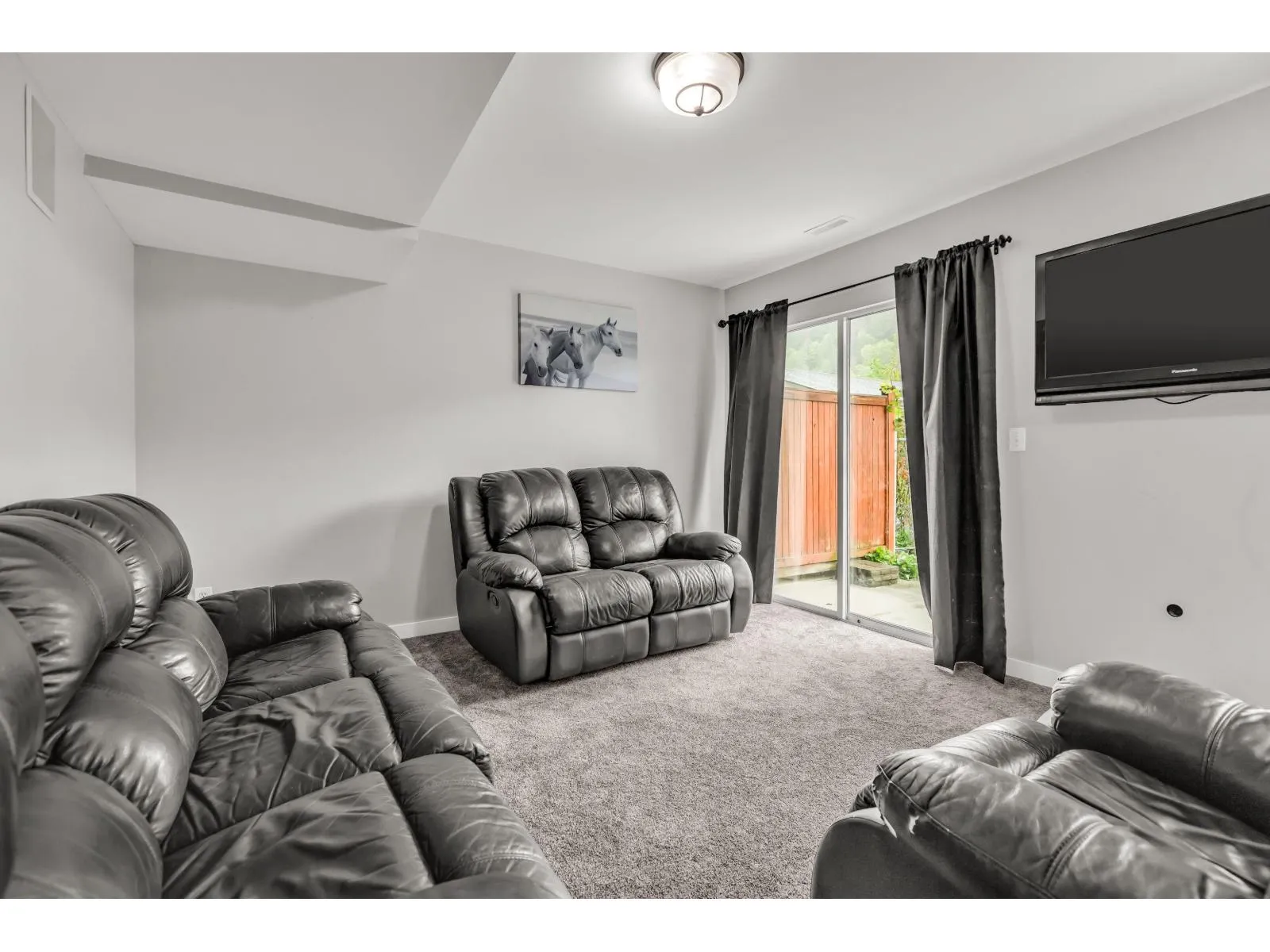 Welcome to Riverwynde Townhomes in Sardis! This bright 3-level home offers a south-facing yard and loads of natural light. The main floor features an open living/dining/family area with kitchen and access to a sunny rear deck. Upstairs you'll find 3 spacious bedrooms and 2 full baths, including a comfortable primary suite. The finished basement offers a large rec room with patio doors to the private yard. Brand new hot water tank. New Washer and Dryer. Newly updated front stairs, railing and balcony. Located in a family and pet friendly complex, close to schools, shopping, and transit"-this home has it all! (id:27476)