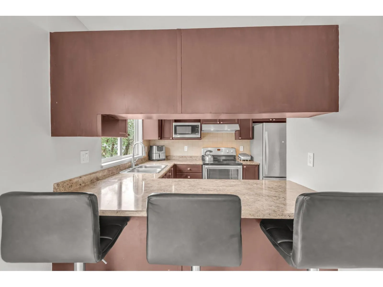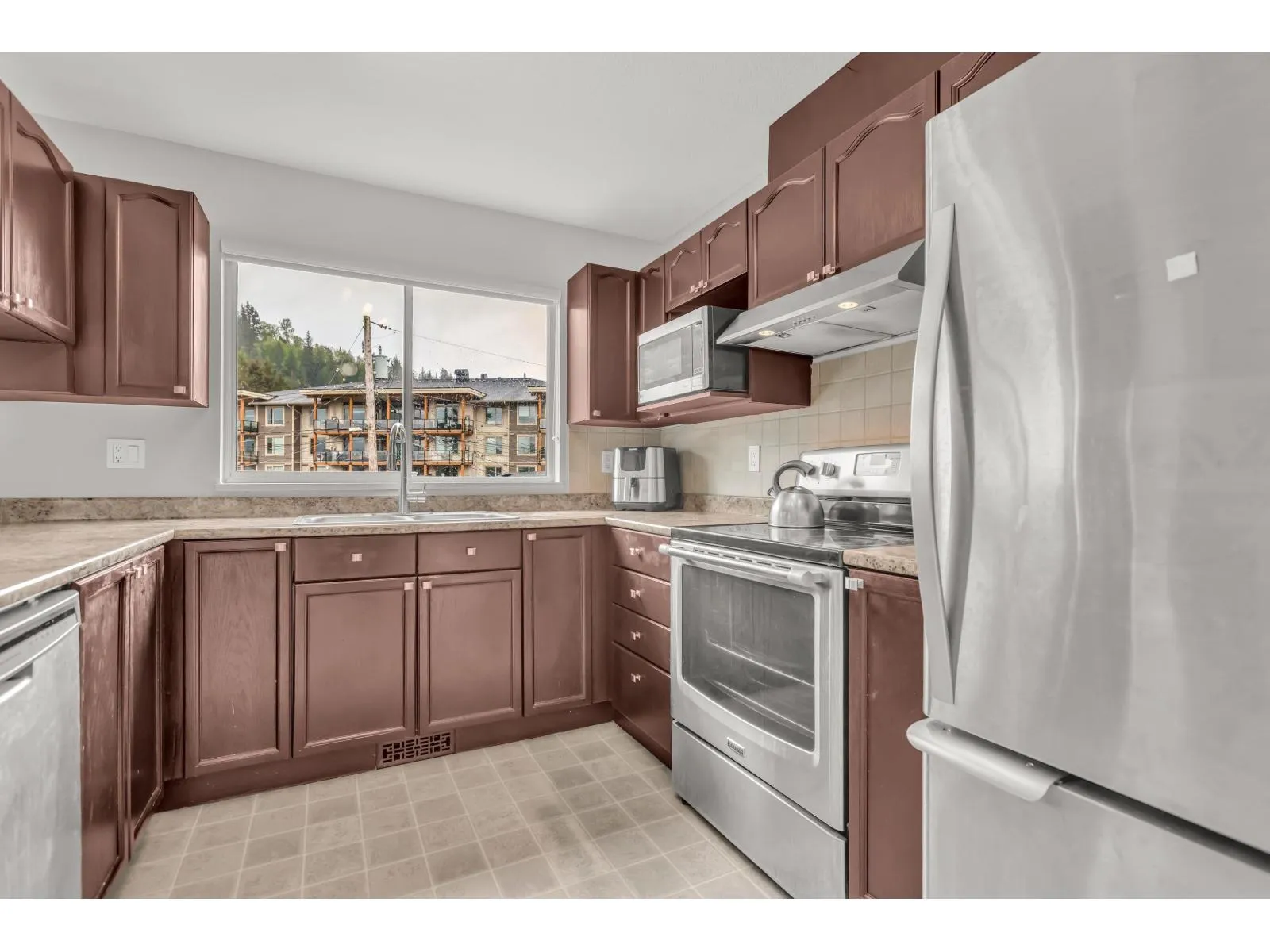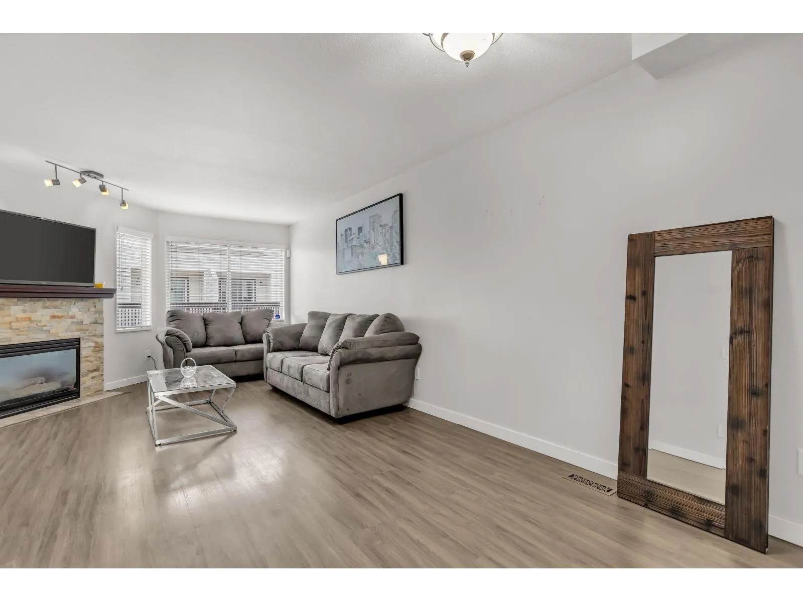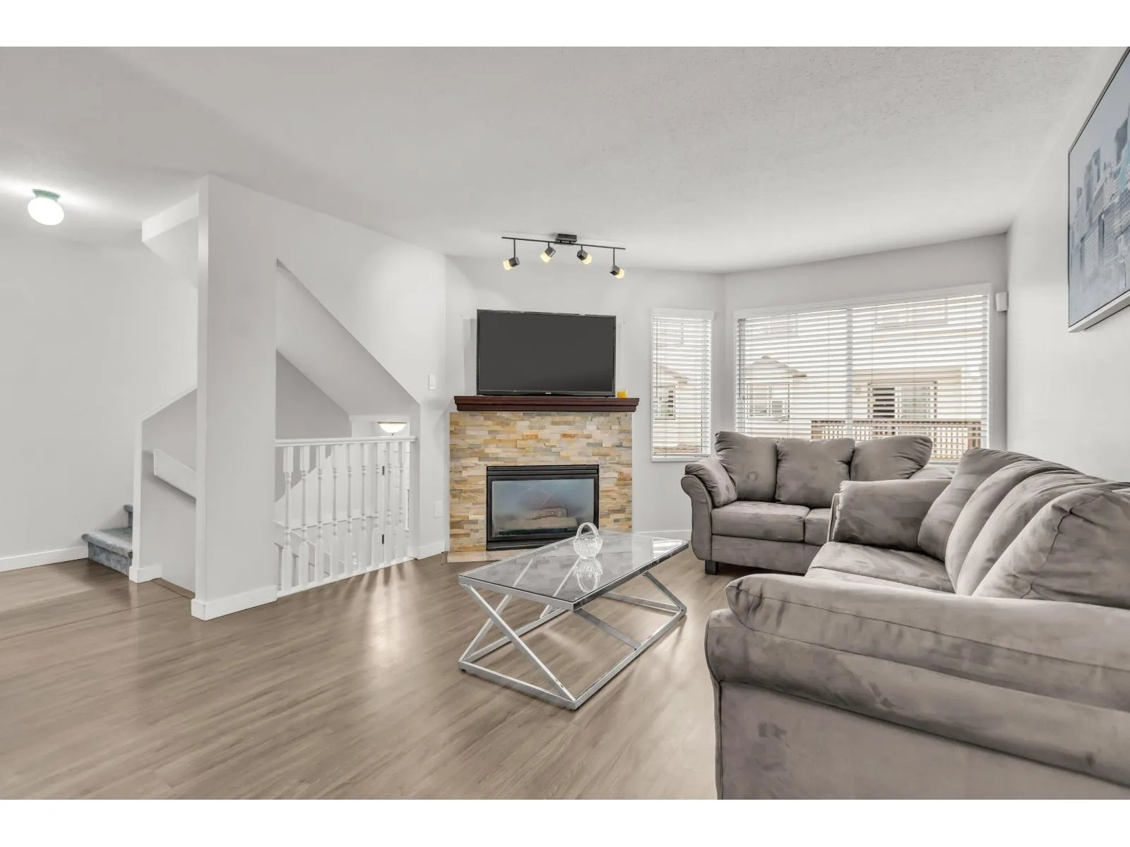 Welcome to Riverwynde Townhomes in Sardis! This bright 3-level home offers a south-facing yard and loads of natural light. The main floor features an open living/dining/family area with kitchen and access to a sunny rear deck. Upstairs you'll find 3 spacious bedrooms and 2 full baths, including a comfortable primary suite. The finished basement offers a large rec room with patio doors to the private yard. Brand new hot water tank. New Washer and Dryer. Newly updated front stairs, railing and balcony. Located in a family and pet friendly complex, close to schools, shopping, and transit"-this home has it all! (id:27476)