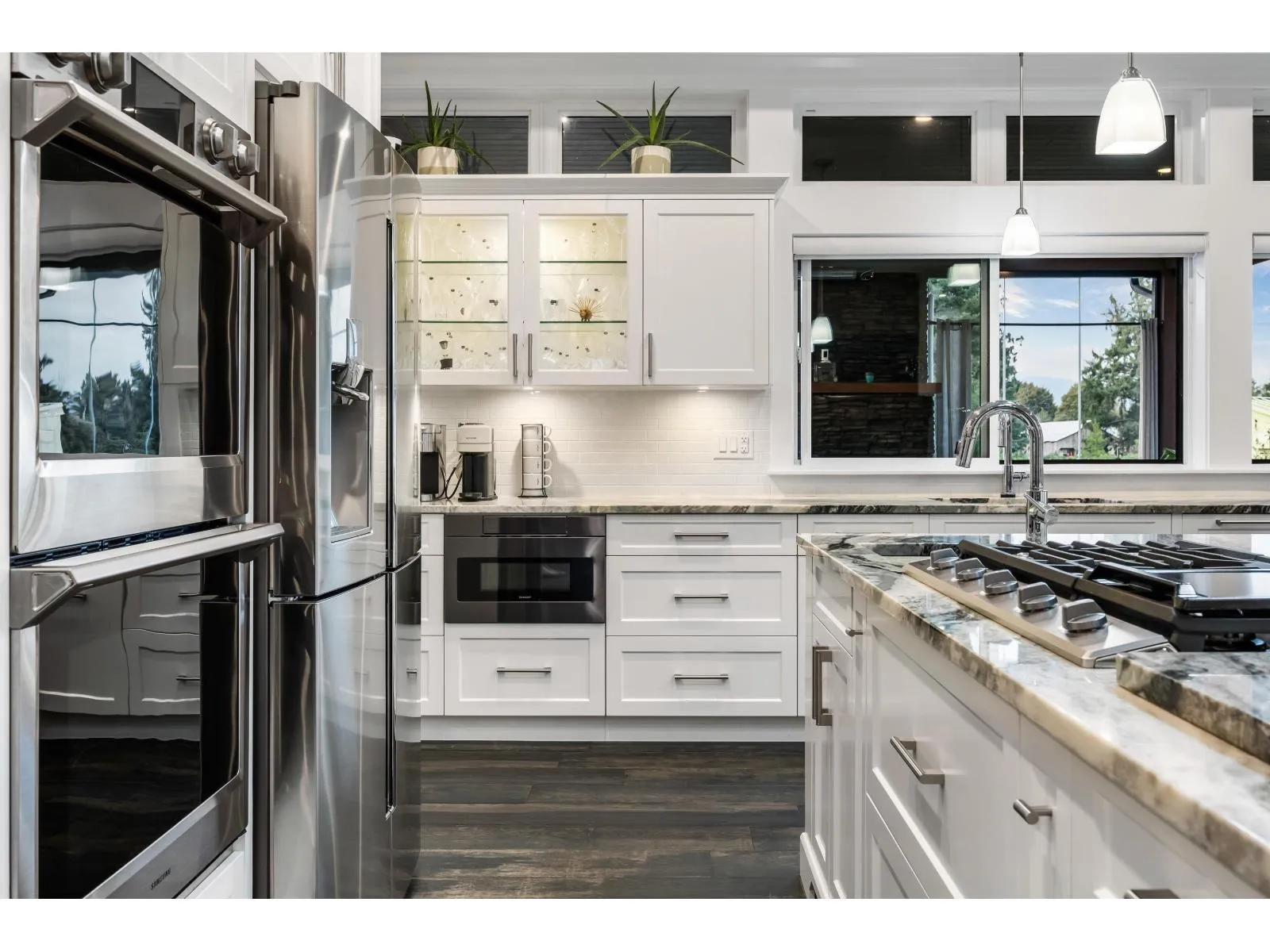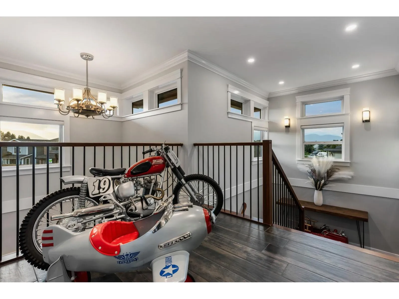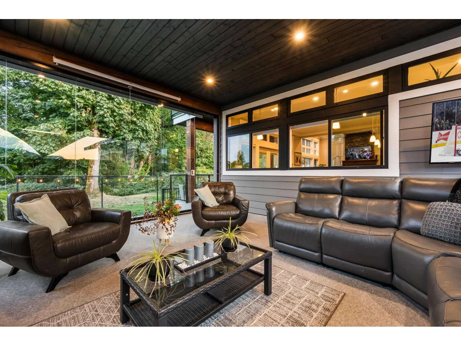 This executive custom home backs onto Kinkora Golf Course and features a chef's kitchen with high-end appliances, an oversized island, and a great room with soaring floor-to-ceiling windows that flood the space with natural light. Off the kitchen, a private enclosed patio with fireplace and hot tub creates the perfect setting for year-round entertaining. Upstairs offers four spacious bedrooms, including a luxurious primary suite with a spa-inspired ensuite, steam shower, and soaker tub, while the lower level includes a bright two-bedroom suite for in-laws or rental income. Additional highlights include a fully detached one-bedroom coach house, a double-wide lot, and a car enthusiast's dream garage, all set against unobstructed views of the golf course with no neighbours behind"-making this a rare estate-style property in one of Chilliwack's most sought-after locations. (id:27476)