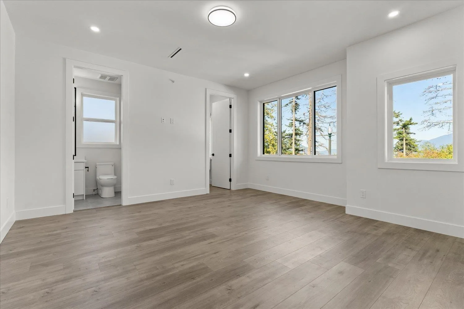 Welcome to this stunning Sardis home with amazing views of the valley! The grand 20' foyer opens to a bright family room and chef's kitchen with quartz counters, high-end finishes, and a walk-in pantry. Main floor includes a mudroom plus a primary bedroom with ensuite and walk-in closet. Upstairs features 3 bedrooms, each with its own ensuite and walk-in closet. The primary retreat offers a private balcony, large walk-in closet, and spa-inspired ensuite. Comfort is ensured year-round with radiant heat and air conditioning. Enjoy a spacious backyard and deck for entertaining. Lower level includes a media room and a legal 2-bedroom suite, perfect for family or mortgage helper. A perfect blend of luxury and functionality! * PREC - Personal Real Estate Corporation (id:27476)