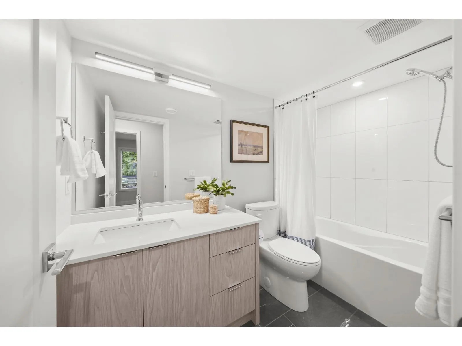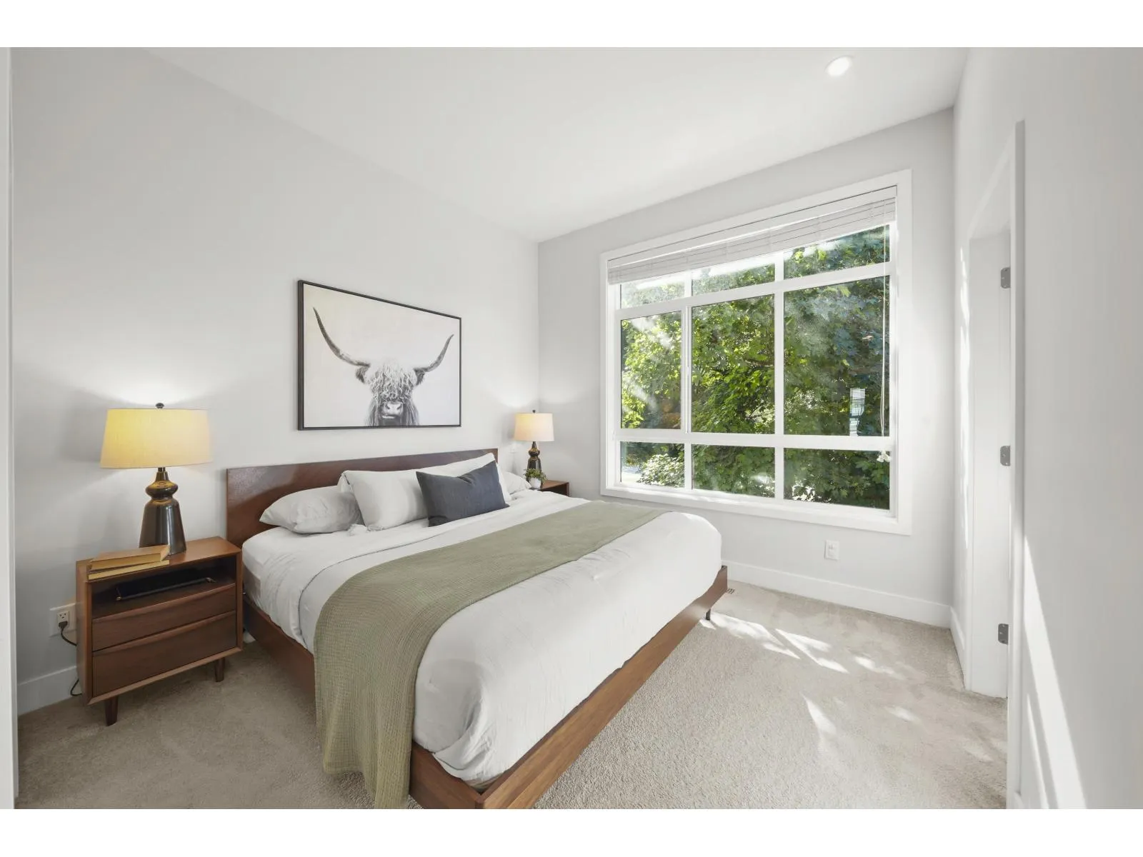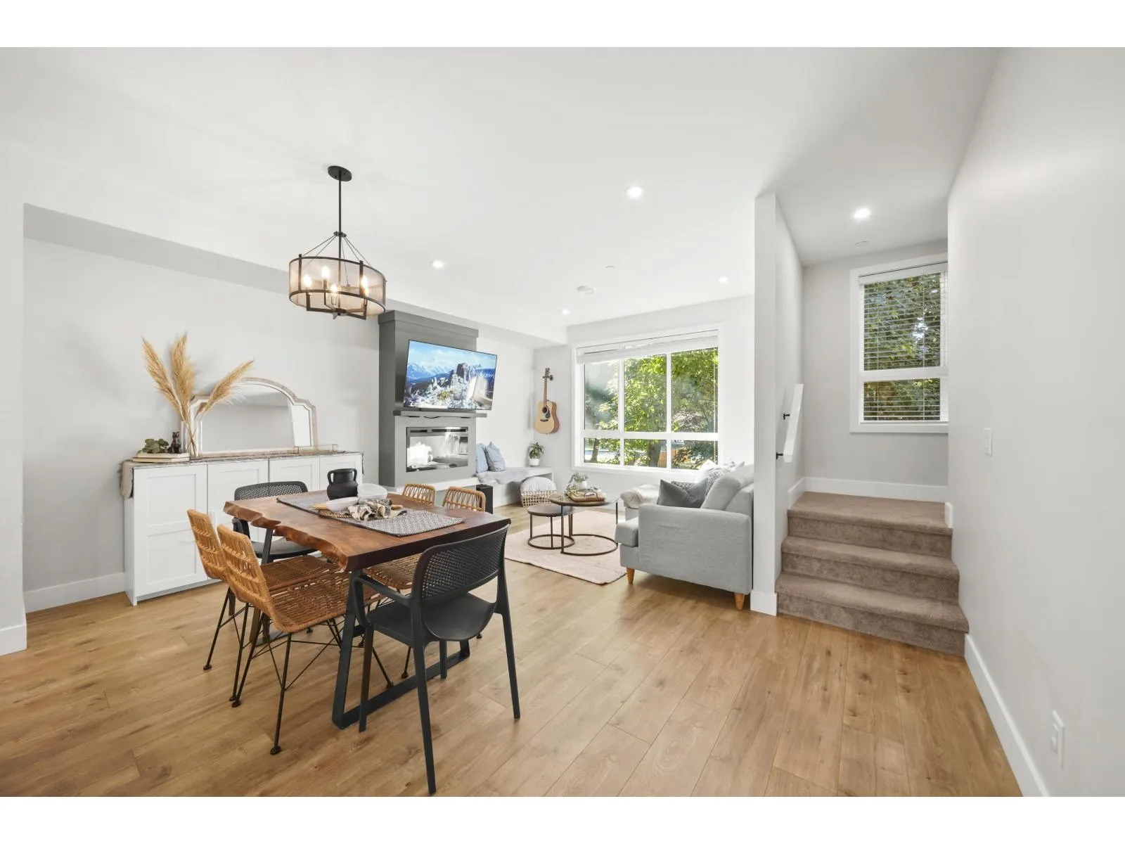 Welcome to Acadia at Garrison Campus! This 4 bed, 4 bath townhouse offers modern finishes and a thoughtful layout. The main floor features a beautiful kitchen with access to a covered patio w/gas hookup for year-round BBQs and a bright living room overlooking Dieppe Park. Upstairs you'll find the primary bedroom with ensuite + 2 bedrooms and a full bath. A powder room is on the main, while the lower level includes a bedroom & a full bath off the garage"-ideal for a teen, nanny, exchange student, or office. Complete with central AC, EV charger, and walking distance to shops, Vedder Park & Rotary Trail, UFV, schools & more! Book your private viewing today! (id:27476)