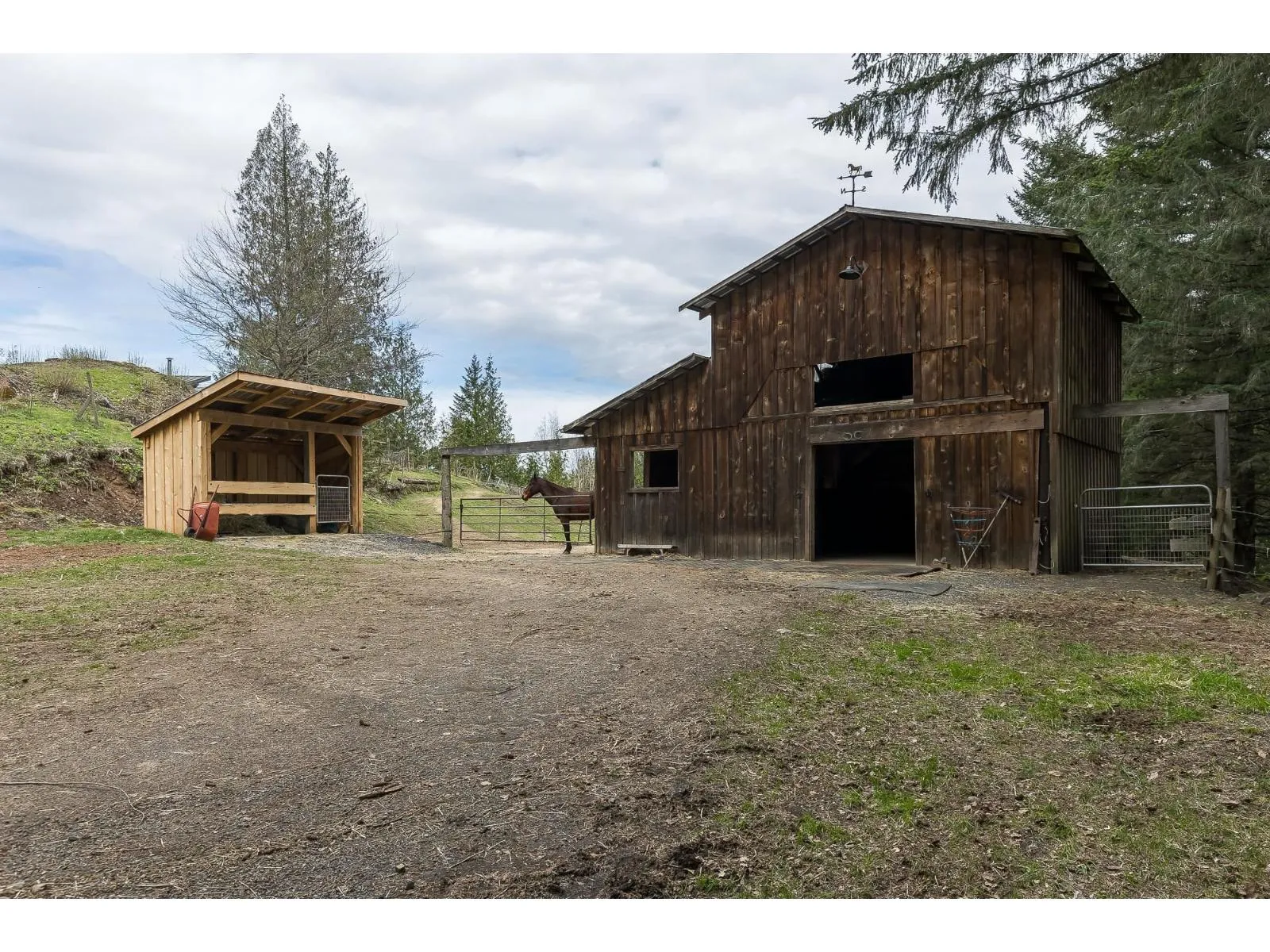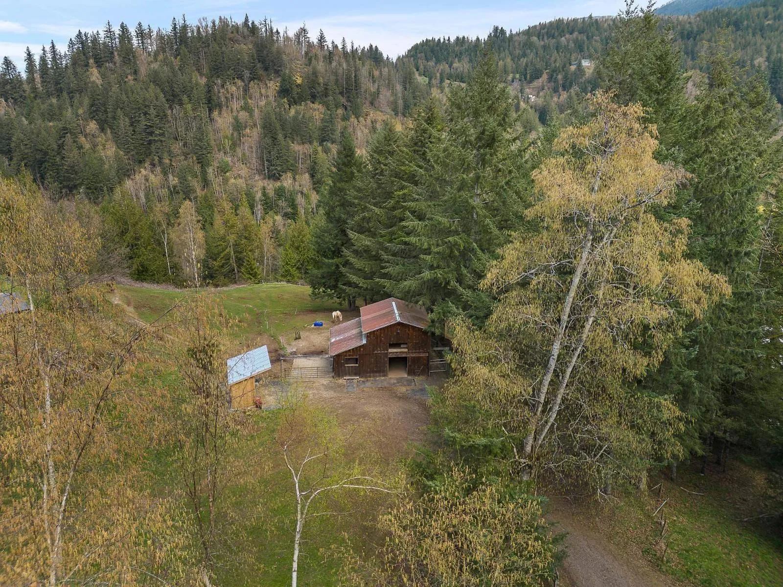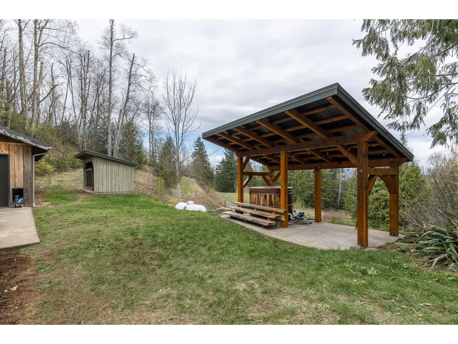 Ideal multi-generational opportunity. The perfect serene setting for this lovely 1779 sqft 3 bedrooms, 2 bath, rancher with 940 sqft garage and gorgeous covered front deck with natural wood posts and beams that match the covered BBQ & pizza oven hut and the hot tub structure in the backyard. Inside you will find wide plank flooring throughout, large open kitchen & dining room with gas fireplace, maple cabinets, pantry and island. 31.38 acres comes with 3 stall horse barn, riding ring, ATV or horse riding trails throughout the property, a greenhouse for the horticulturist in the family, a 20' x 20' cabin for the outdoor camping experience and the perimeter is fully fenced. Fabulous views of Elk Mountain. New hot water tank 2025. Septic cleaned 2025 with good bill of health. * PREC - Personal Real Estate Corporation (id:27476)