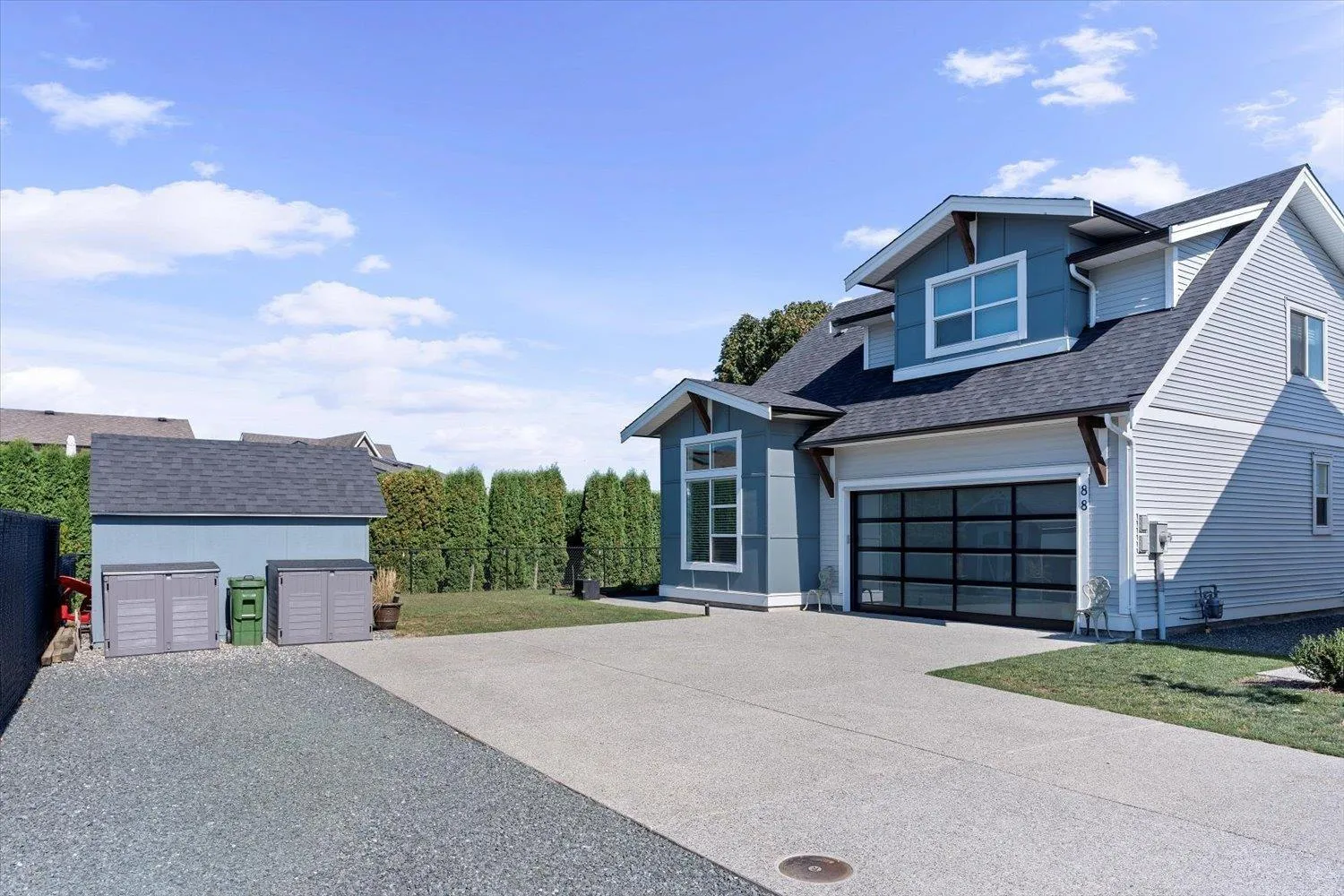 Welcome to Elysian Village! This spacious 3-bedroom rancher with loft is set on one of the largest corner lots in the community. The thoughtfully designed floor plan offers a primary bedroom and den on the main level, plus two additional bedrooms and a generous open loft upstairs. Enjoy high-end finishes throughout, including quartz countertops, a chef's kitchen with gas range, and built-in cabinets in the laundry room. Relax in your fully fenced yard featuring a covered patio, natural gas BBQ hookup, and hot tub"-all with unobstructed views of Mt. Cheam. Additional highlights include air conditioning, a full 5' crawl space for storage, a double garage, and driveway parking for up to eight vehicles. This home combines luxury, comfort, and functionality in a prime setting. * PREC - Personal Real Estate Corporation (id:27476)