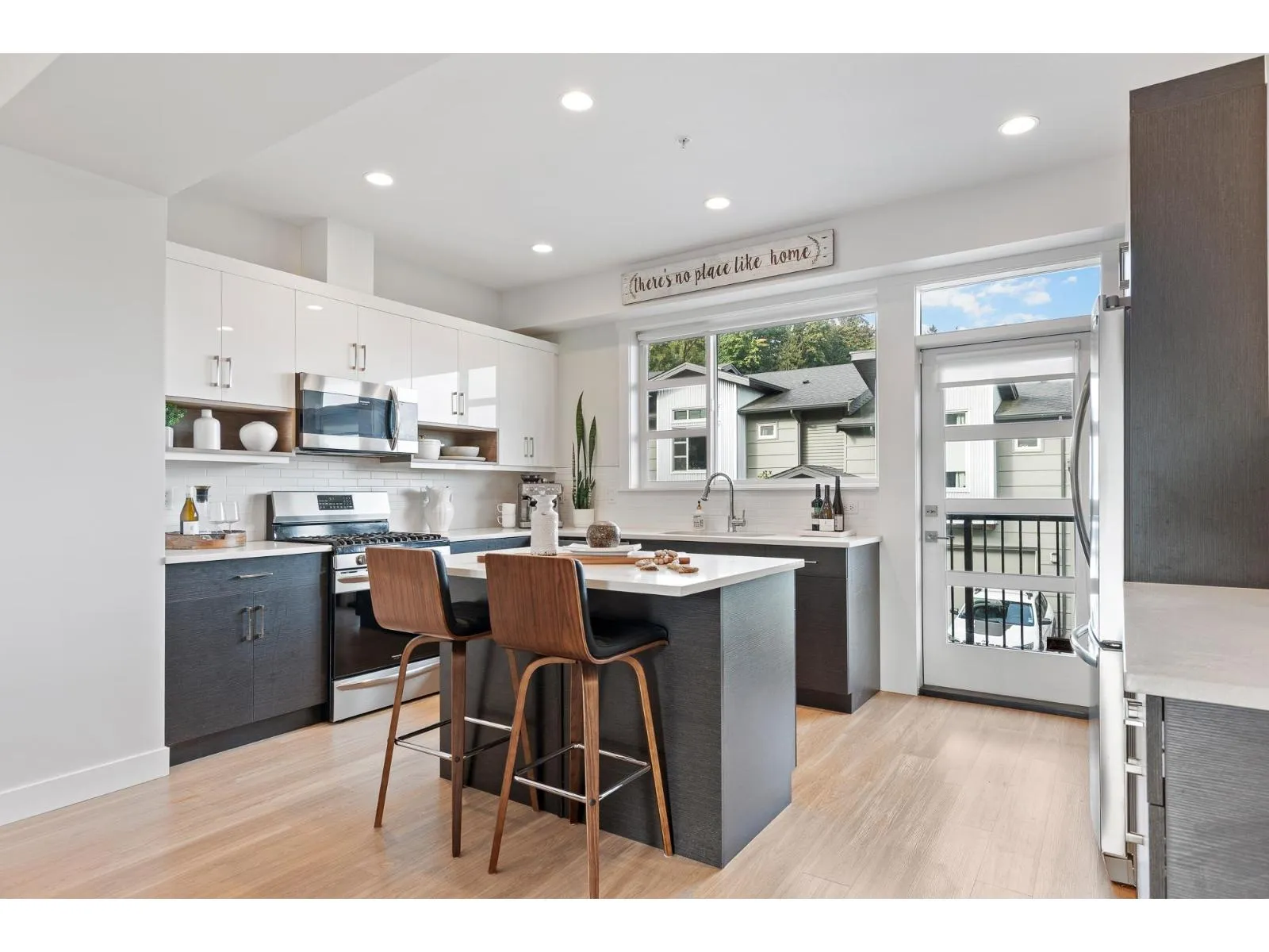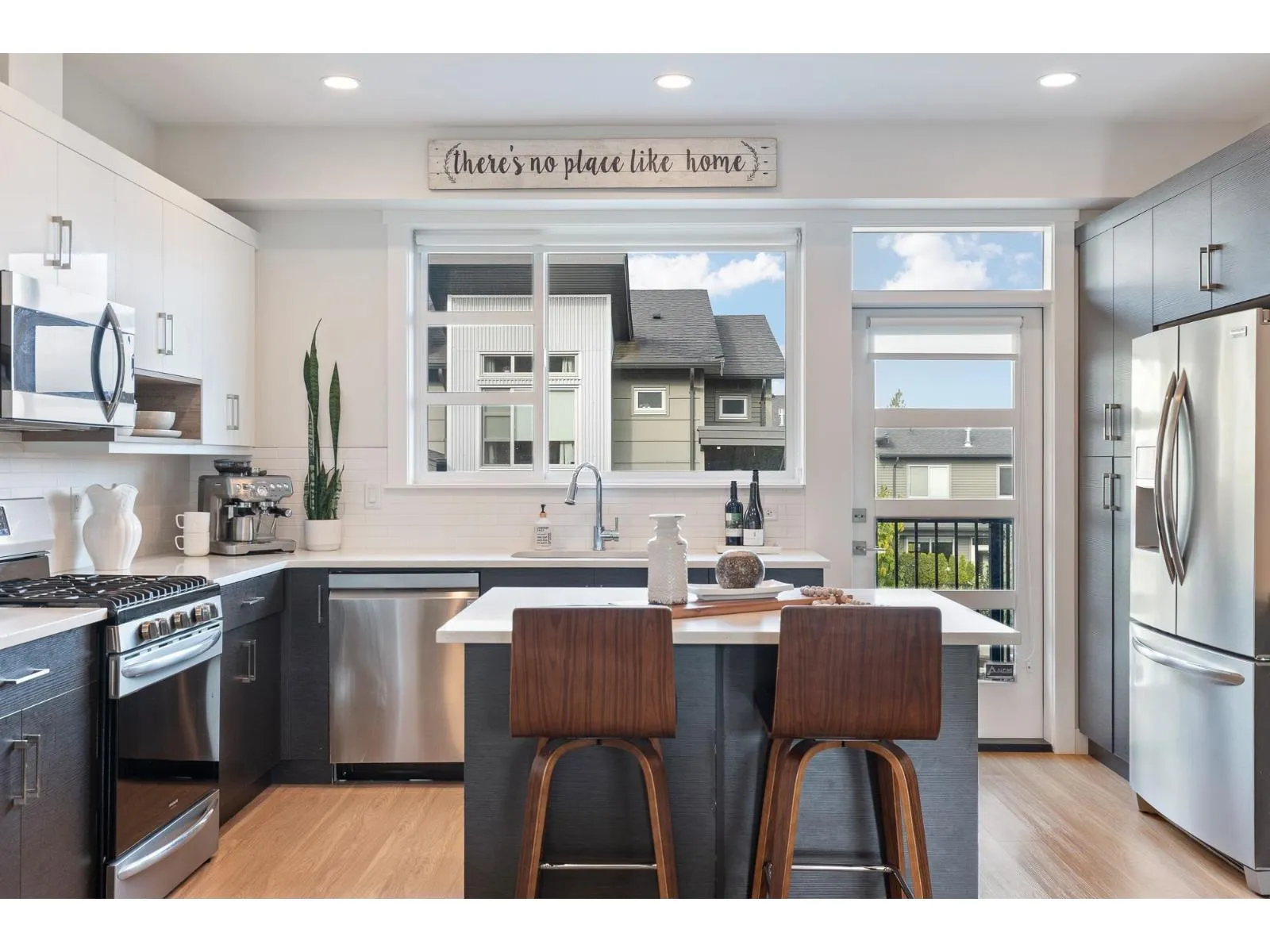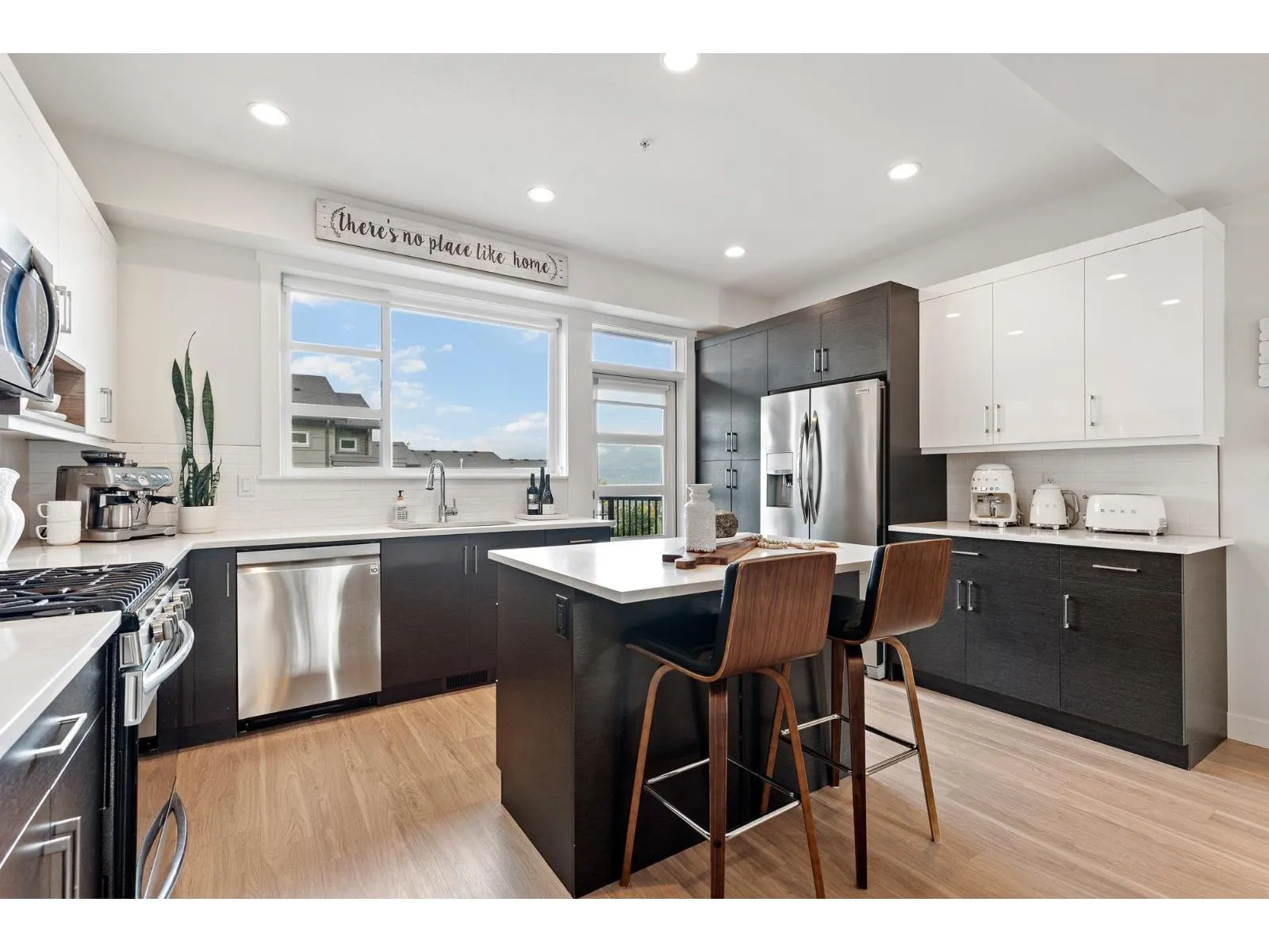 STUNNING END UNIT townhome in the sought-after Reflections at Cedar Sky! This BRIGHT 3 bed, 3 bath home w/DBL garage & EV plug offers MODERN living close to nature! This FABULOUS townhouse includes air conditioning, gas stove, SS appliances, two-tone cabinets, quartz counters, & a generous island - PERFECT for entertaining! The SPACIOUS primary suite boasts a walk-in closet & spa-like ensuite w/dual sinks AND oversized shower! Enjoy breathtaking MOUNTAIN VIEWS from the front deck, a finished rec room in the basement, & a private fenced yard backing onto the serene greenspace. Centrally located while still maintaining the peacefulness that comes w/living in nature. Shows GREAT - Don't miss out!! * PREC - Personal Real Estate Corporation (id:27476)