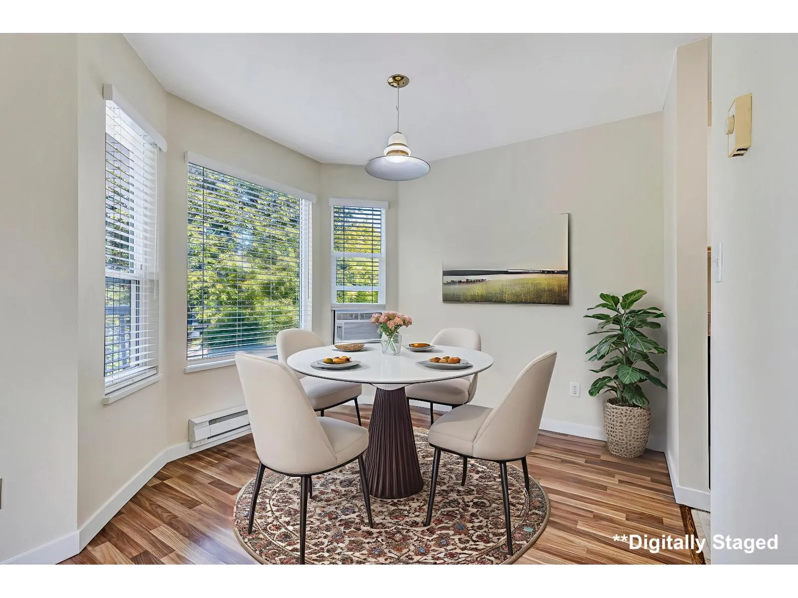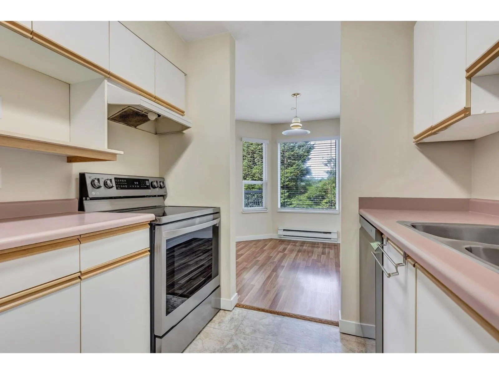 Bright 2Bed 2Bath CORNER unit w/ 1,034 SqFt facing SW for beautiful natural light in sought after Garrison. This home offers serious bang for your buck: updated S/S appliances, updated flooring/blinds in bedrooms, fresh paint, 2 parking spots, In- Suite laundry and the list goes on. The Functional layout features a cozy breakfast nook with bay windows, open living/dining area, and a private balcony surrounded by greenery and mountain views. Large primary bedroom with 3-pc ensuite, large second bedroom, 4-pc second bathroom, and in-suite LAUNDRY ROOM. Fantastic location walking distance to schools, shopping, parks, and transit. A 5 minute drive to Chilliwack's famous rotary trail, world class fishing, and UFV. Tucked away in a well-maintained building with no age restrictions. MOVE-IN READY (id:27476)