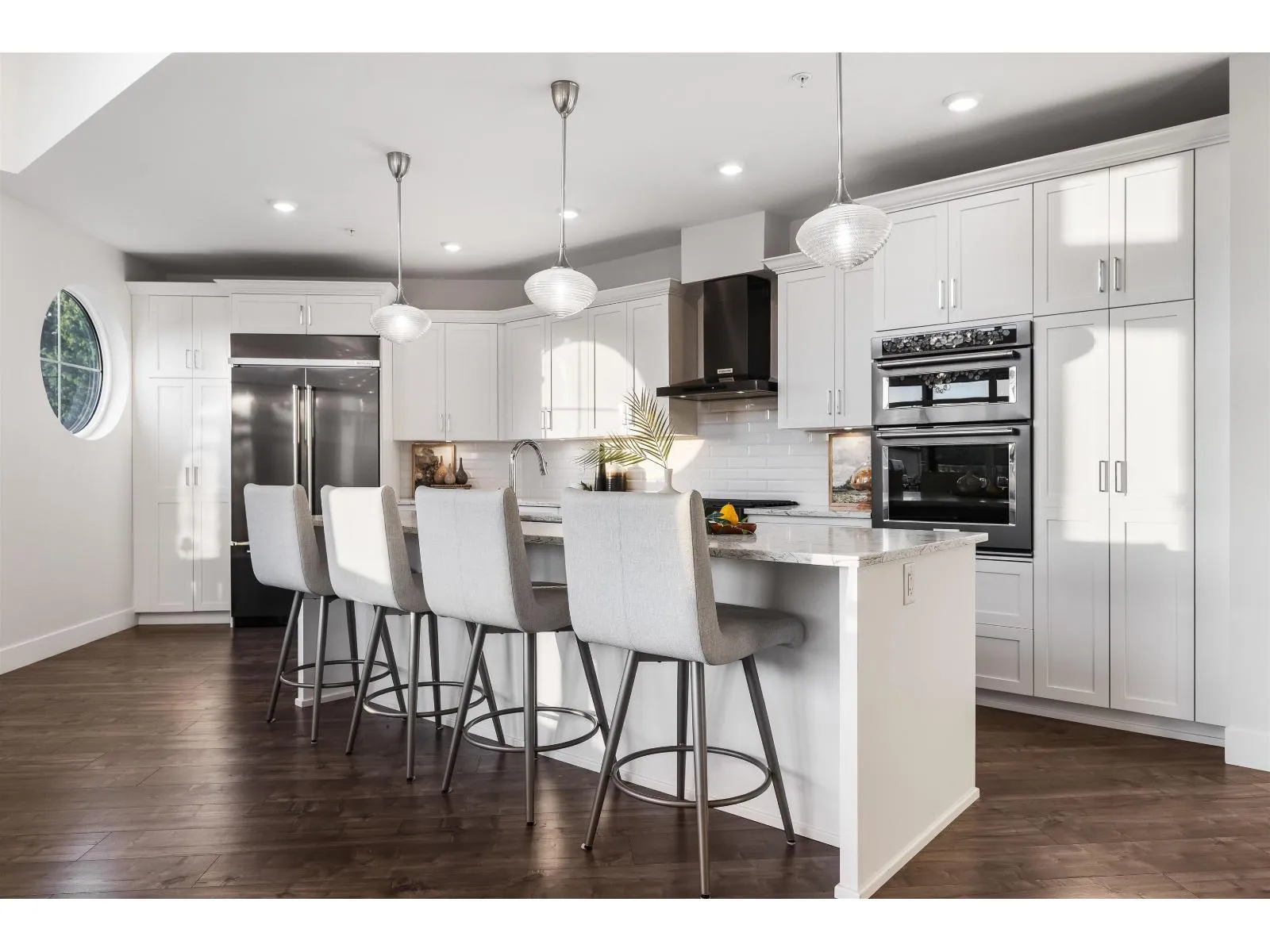 "THE" PENTHOUSE @ The Boardwalk. THE most desirable. THE largest. THE most updates. THE BEST OF THE BEST! Sitting at 2877sq (+ 1000 ft of patios) w/ 3 bdrms + den & 4 bathrooms, this is a RANCHER IN THE SKY w/ an incredible ROOFTOP PATIO. Unique layout designed to capture DAYLIGHT, VIEWS, and allow ample living spaces for relaxation & entertainment. CHEFS KITCHEN; oversized island, dual ovens, gas range, wine cooler & an abundance of storage incl w.I. pantry. 14' ceilings in dining area that opens to a patio w/ powered retractable awning. Custom dual station office space, bar w/ 240 btl dual zone wine fridge w/ beverage fridge @ the base of the ROOFTOP PATIO. Hunter Douglas powered blinds, powered rooftop awning, custom cabinets/closets, A/C, stair lift, 2 PARKING + 2 STORAGE LOCKERS. WOW! * PREC - Personal Real Estate Corporation (id:27476)