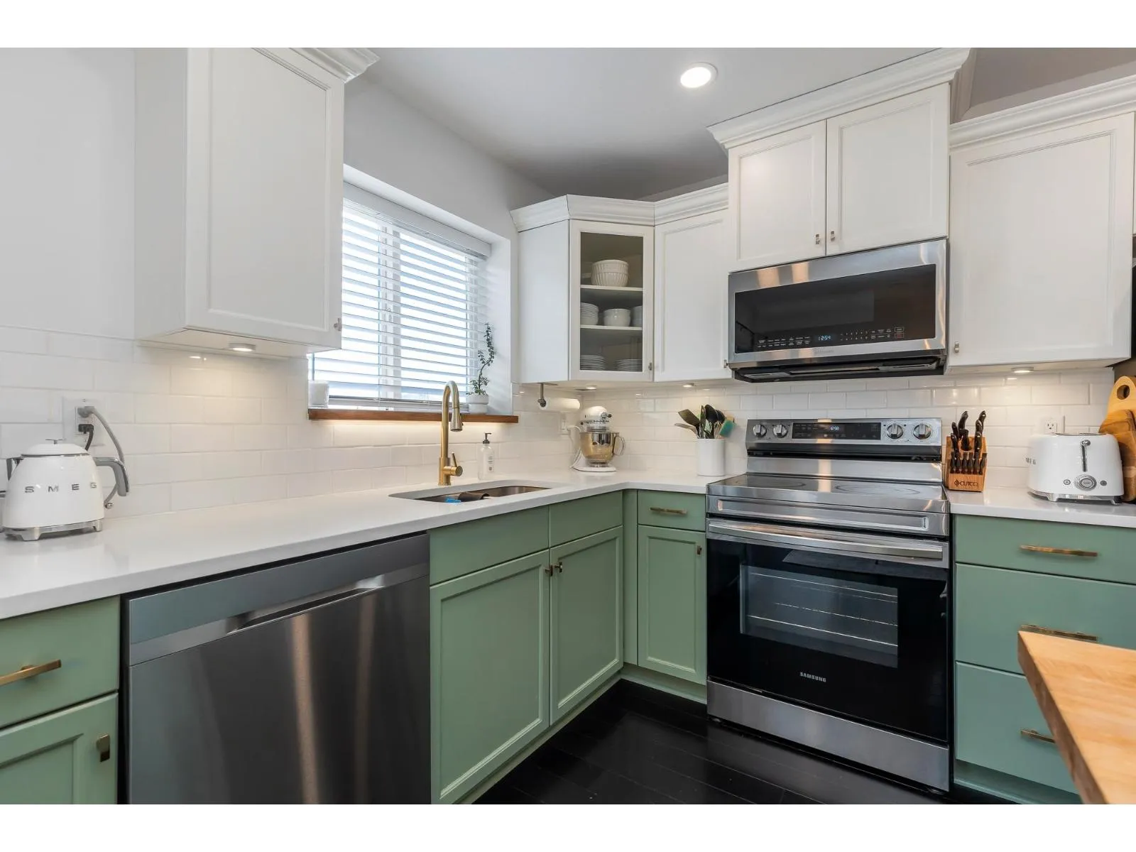 Welcome to Cobblestone Terrace! This spacious 4-bed, 3-bath townhome offers stunning city views and a smart layout with 3 bedrooms and laundry upstairs, including a master suite with walk-in closet and en-suite. The main floor features engineered hardwood, a bright living room, and open kitchen with pantry, built-in microwave, and access to a scenic deck. Downstairs includes a rec room, full bath, and fenced patio. Enjoy air conditioning, a single garage, and full driveway parking"-an exceptional find! (id:27476)