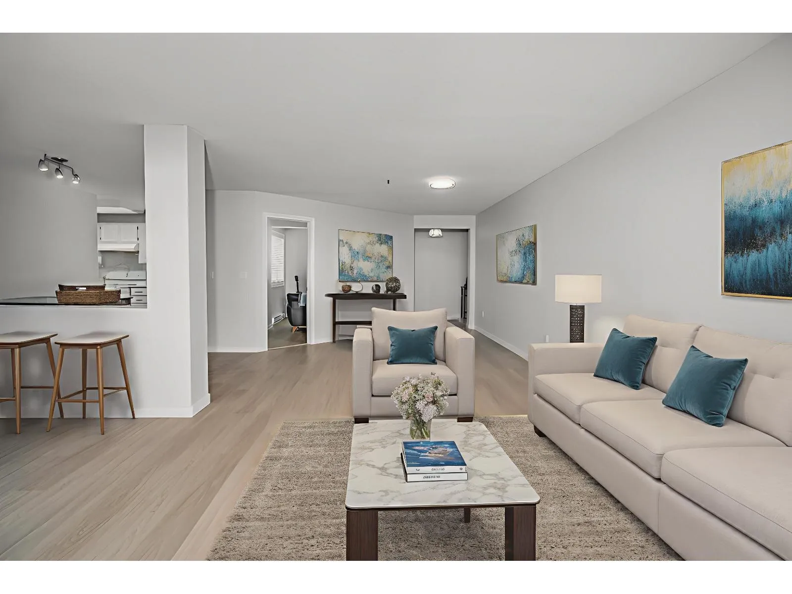 CARRINGTON COURT. Great location to stores, shopping & hospital. This corner unit (1 floor up from ground) is at the back of the building & has lots of windows. Almost fully remodelled in 2025. Two large bedrooms plus a 3rd bedroom or enclosed den with window. Upgrades include a refurbished kitchen with a kitchen sink window, quartz counter tops throughout including in the two restored 3pc & 4pc washrooms. New tile floors in washrooms and new laminate throughout, plus new carpets in the bedrooms. New paint & baseboards. Cozy gas fireplace & a gas line to the sundeck for bbqing. Fireplace basically heats the whole home. Low hydro bills. One parking stall and one storage locker. Community room with kitchen, outdoor common bbq & gathering area plus common workshop. Everything you need! * PREC - Personal Real Estate Corporation (id:27476)