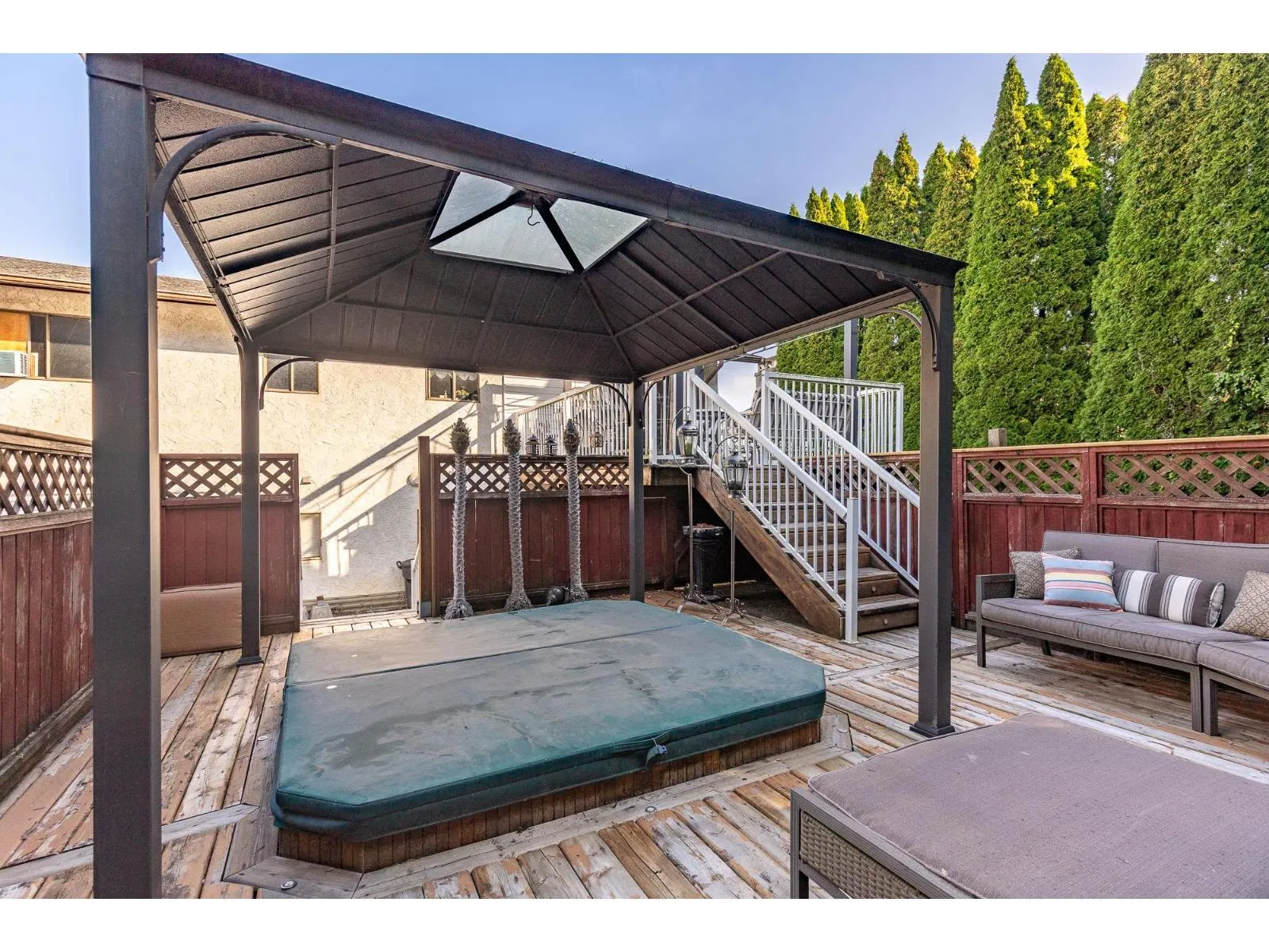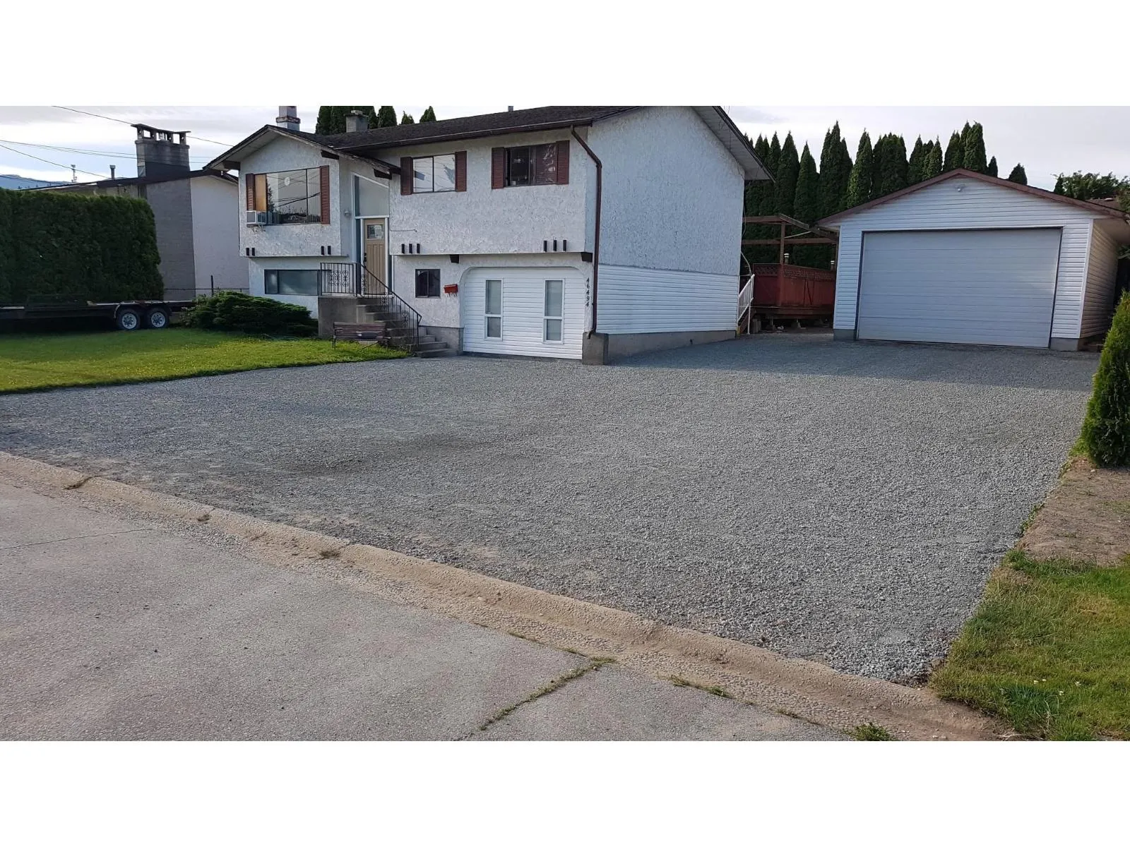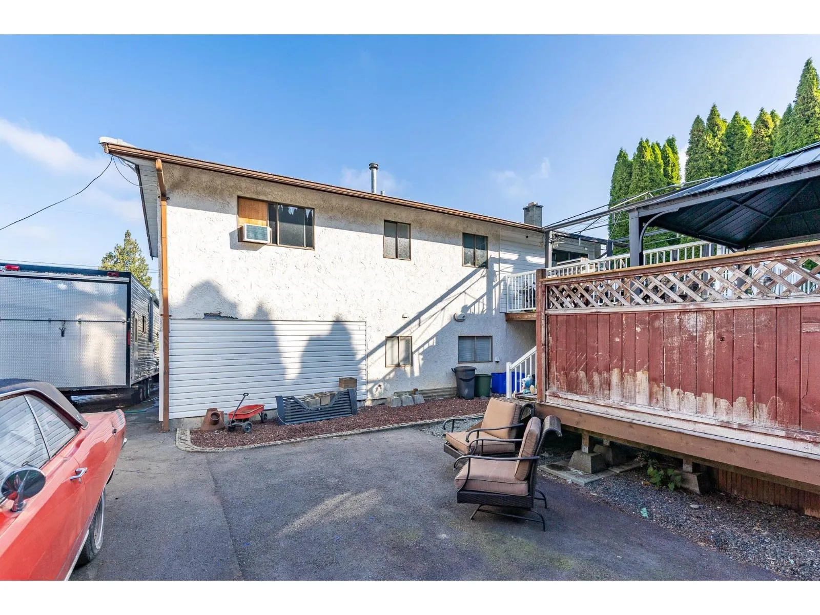 Investment opportunity! This exceptional residence rests on a 8276 sqft lot and showcases a 47.5ft x 68.5ft extended driveway, offering abundant parking for personal vehicles, RVs, and work fleets. A detached 640sqft heated garage with 220amp service, integrated security, and a concealed 20ft C-can provides both function and sophistication. Two private patios, including one with a hot tub, create ideal spaces for entertaining and relaxation. Downstairs is suitable and inside is ready to canvas to your style! Call today to book a showing! (id:27476)